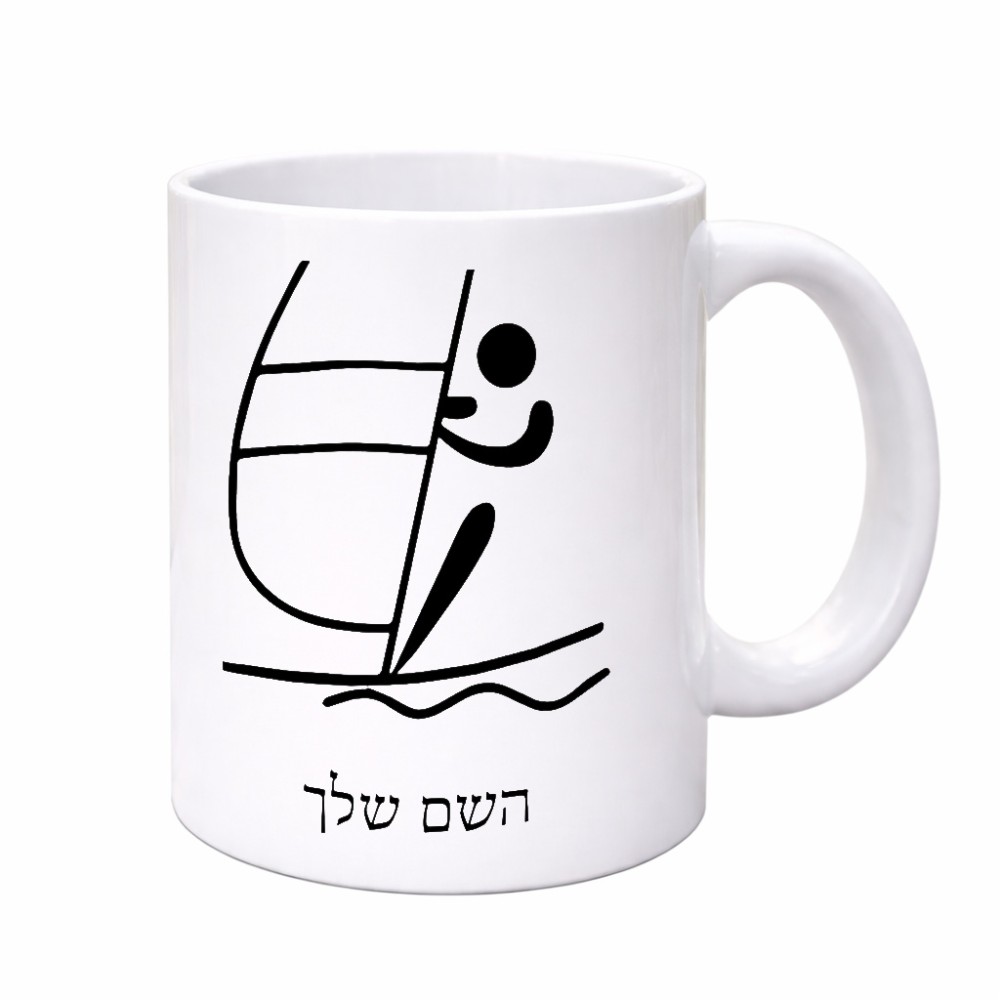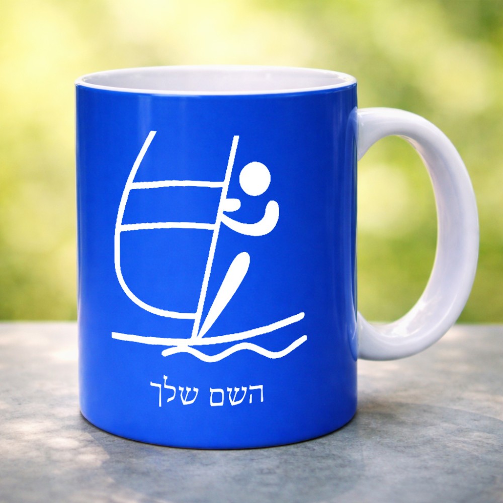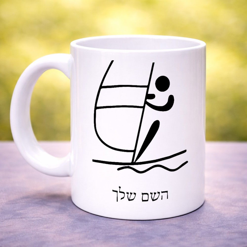 ספל תה \ קפה בעיצוב אישי עם השם שלך בעיצוב שייט אולימפי גודל הספל 325 מ"ל