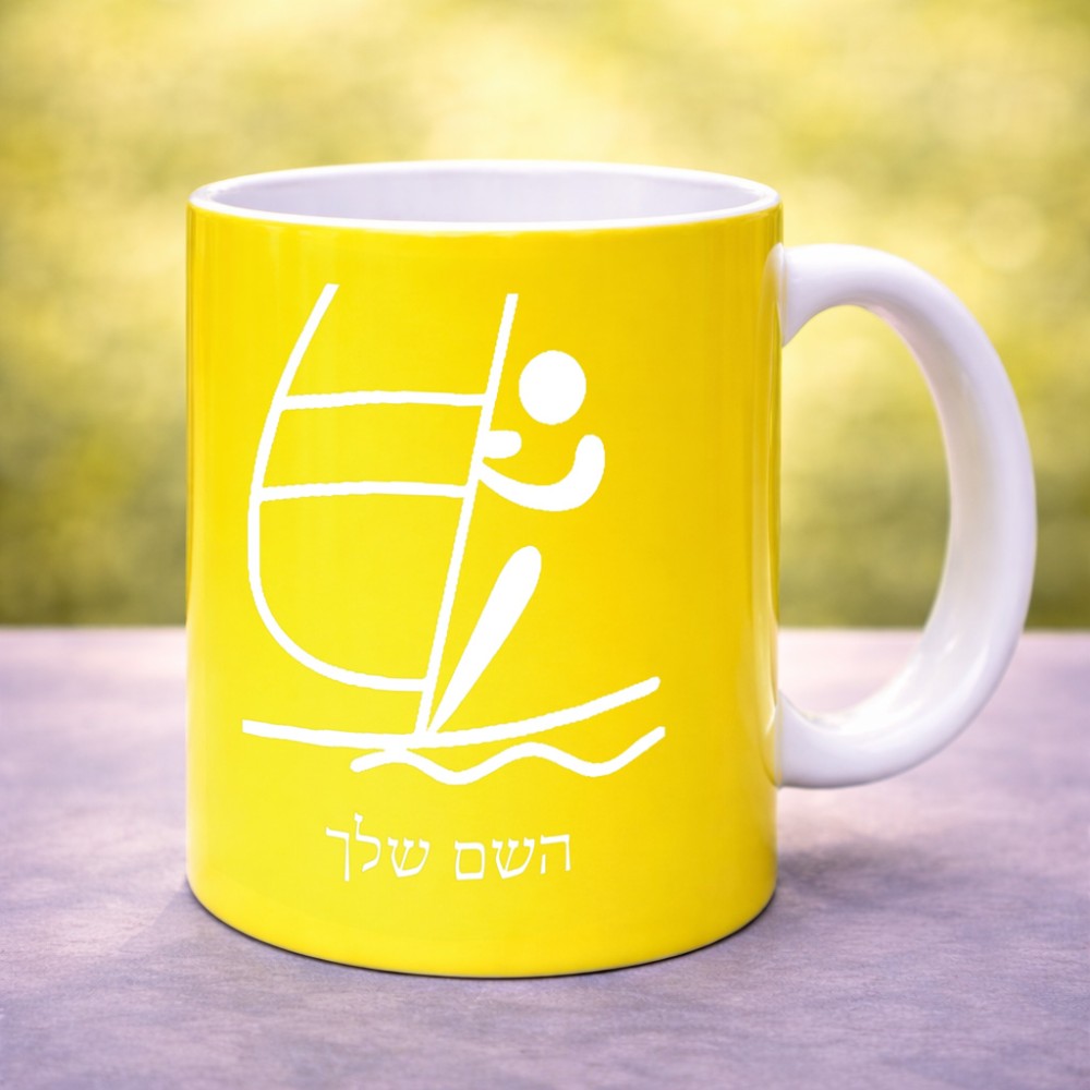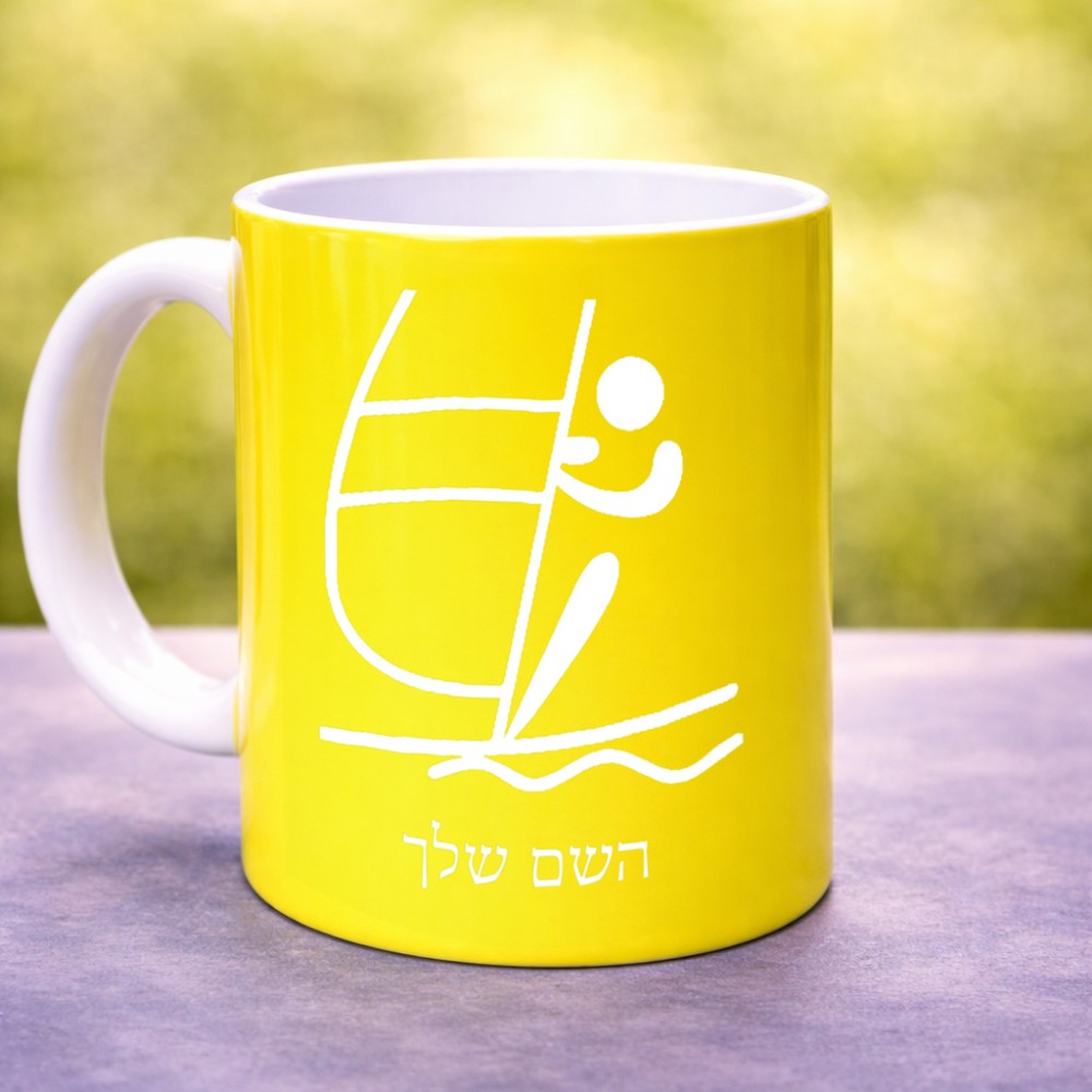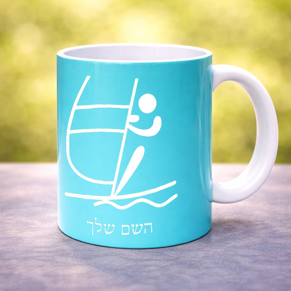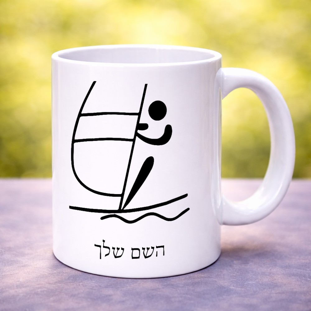 ספל תה \ קפה בעיצוב אישי עם השם שלך בעיצוב שייט אולימפי גודל הספל 325 מ"ל