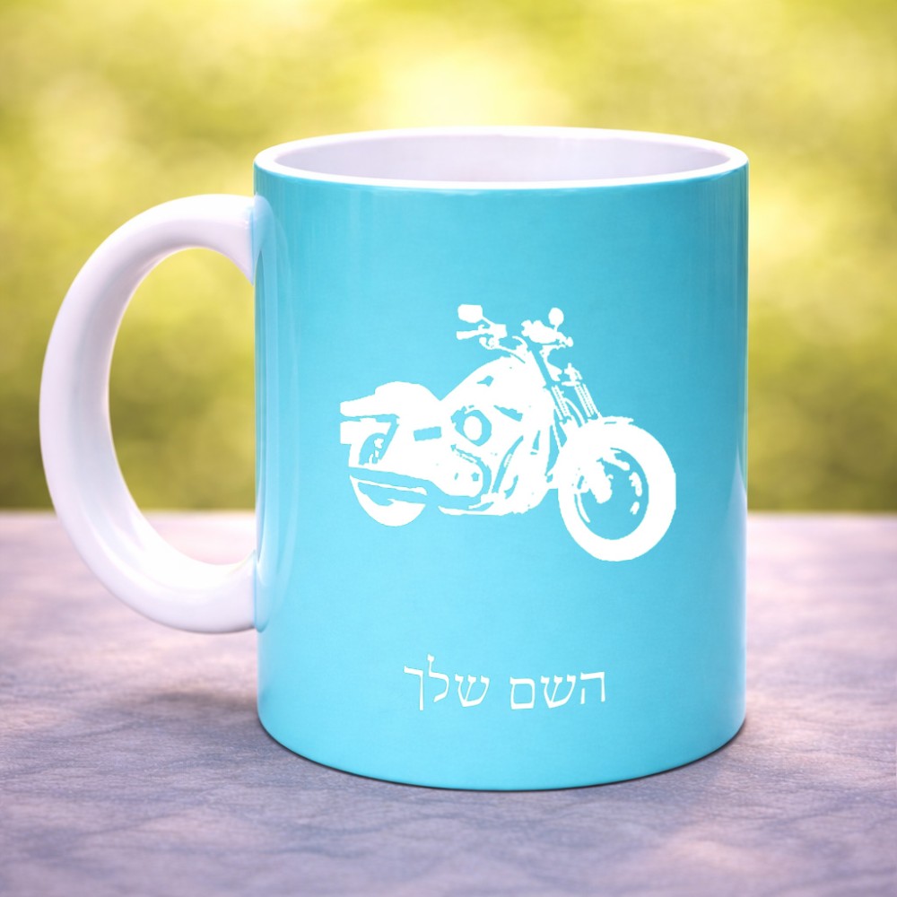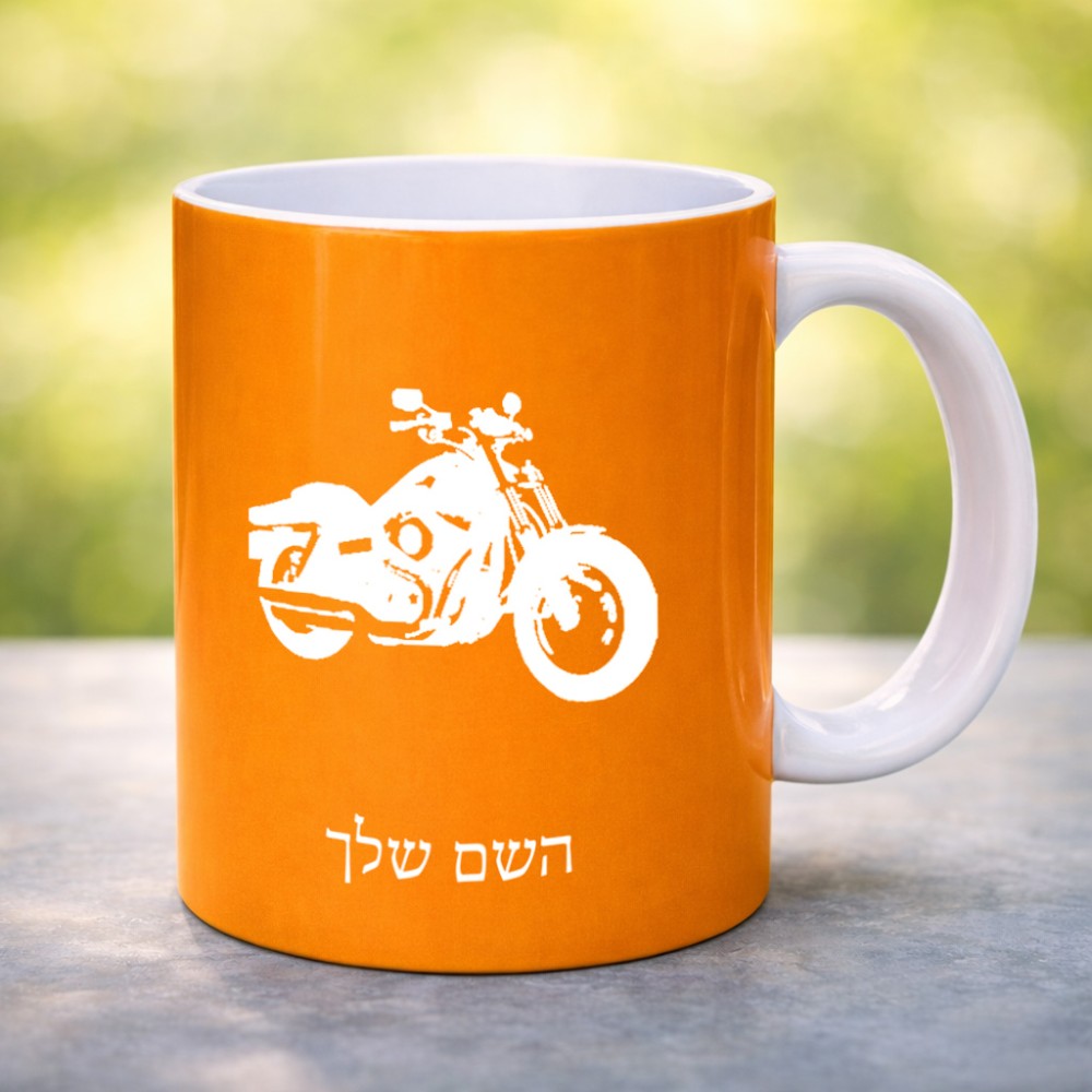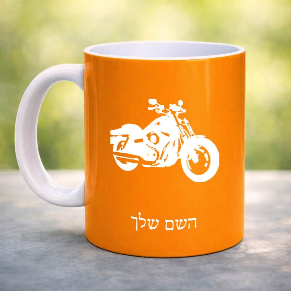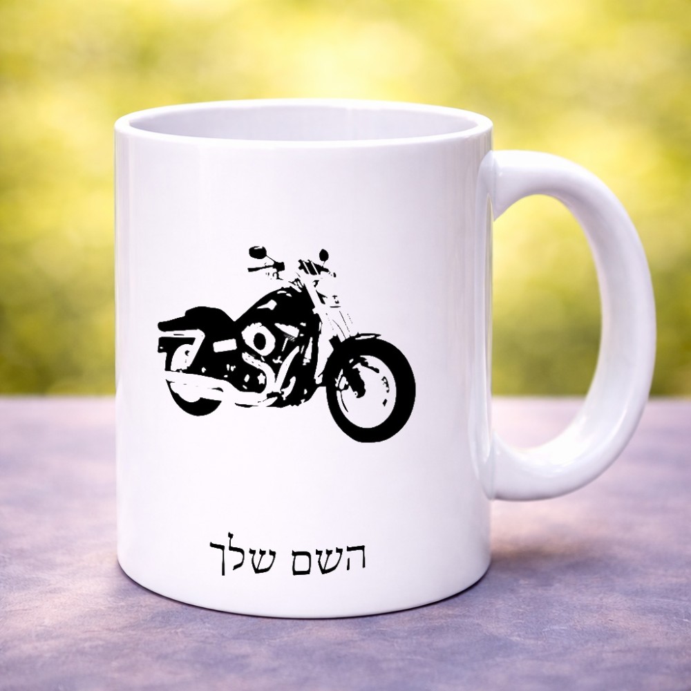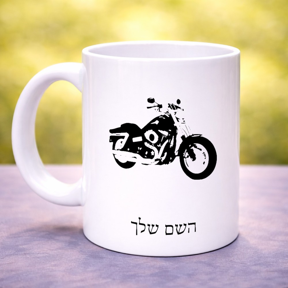 ספל תה \ קפה בעיצוב אישי עם השם שלך בעיצוב הארלי-דיווידסון גדול הספל 325 מ"ל, הספל בעלת ידית לאחיזה יציבה. את השם המבוקש ניתן לציין בהזמנה, אם לא צויין אנחנו ניצור קשר לבירור.
