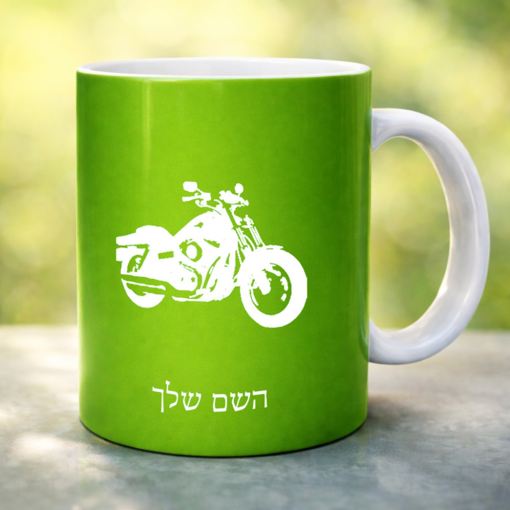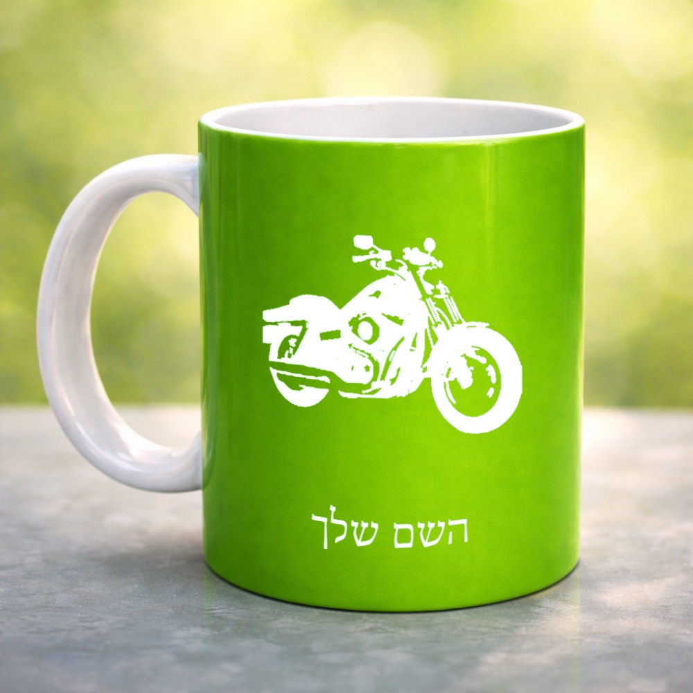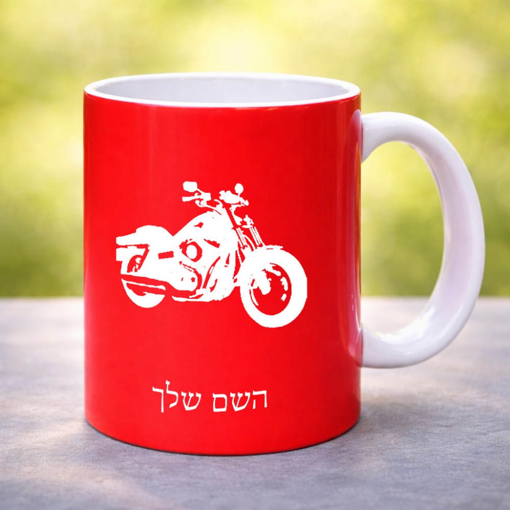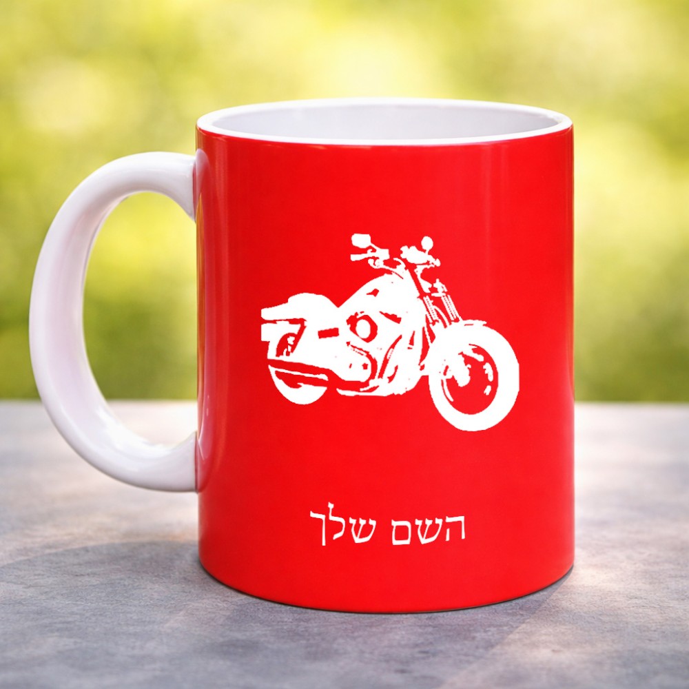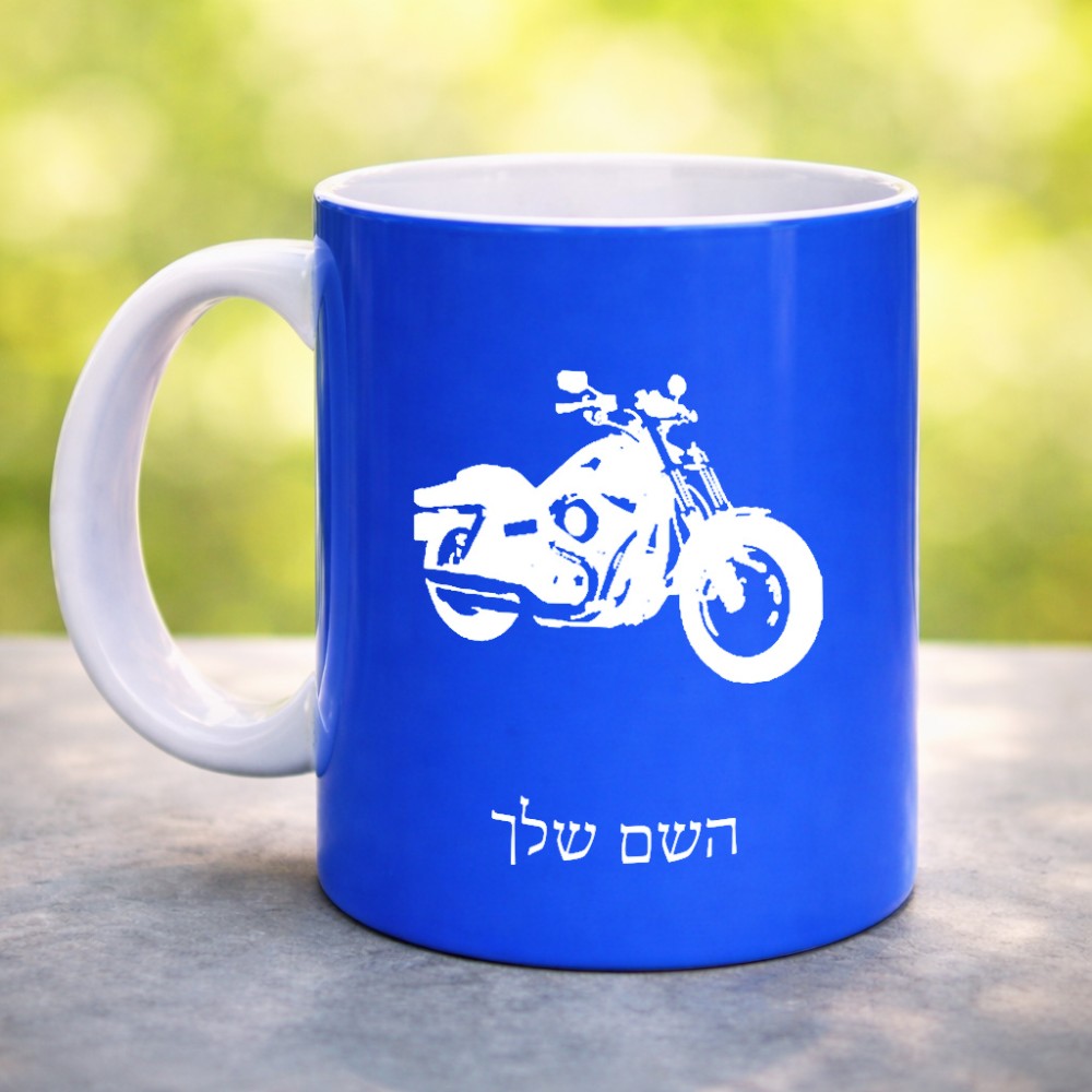 ספל תה \ קפה בעיצוב אישי עם השם שלך בעיצוב הארלי-דיווידסון גדול הספל 325 מ"ל, הספל בעלת ידית לאחיזה יציבה. את השם המבוקש ניתן לציין בהזמנה, אם לא צויין אנחנו ניצור קשר לבירור.