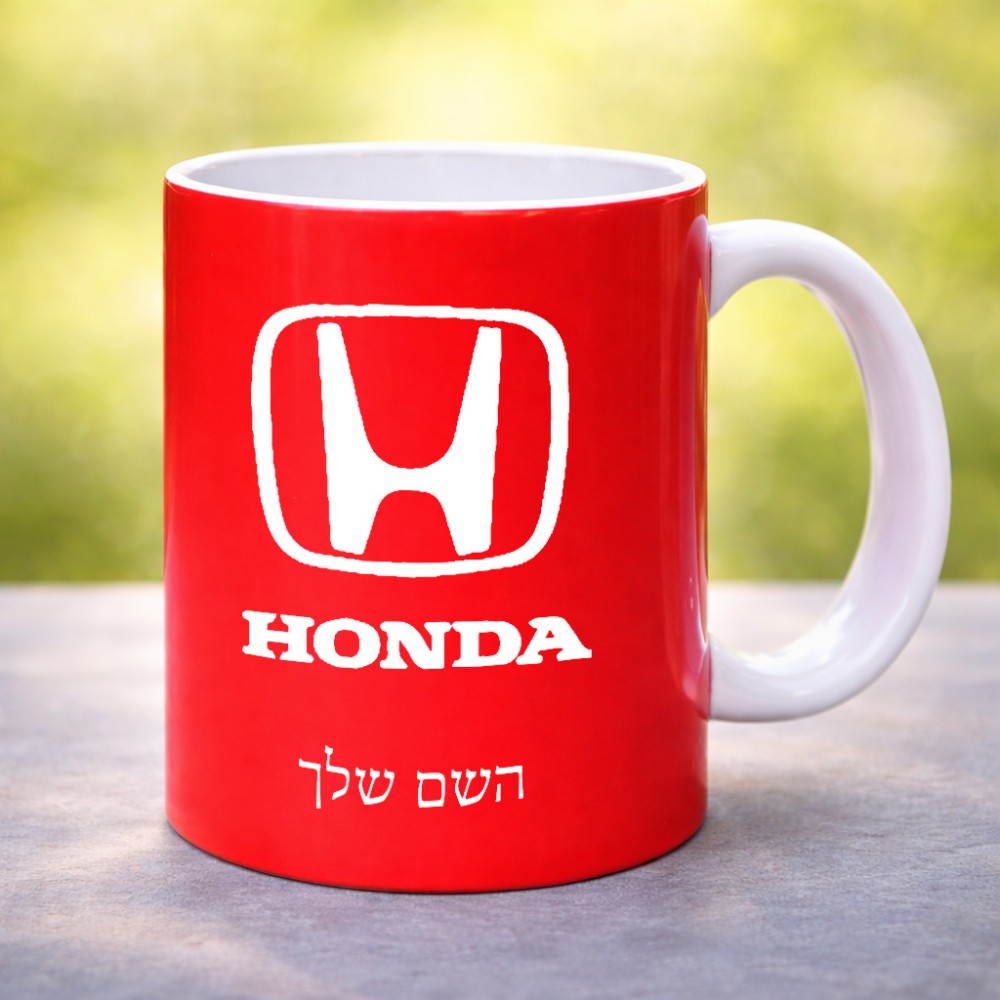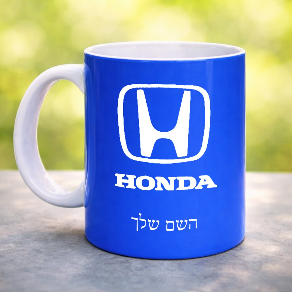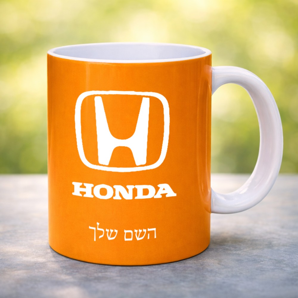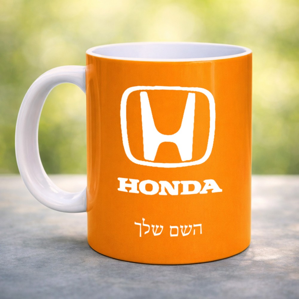 ספל תה \ קפה בעיצוב אישי עם השם שלך בעיצוב הונדה 2 גדול הספל 325 מ"ל, הספל בעלת ידית לאחיזה יציבה. את השם המבוקש ניתן לציין בהזמנה, אם לא צויין אנחנו ניצור קשר לבירור.