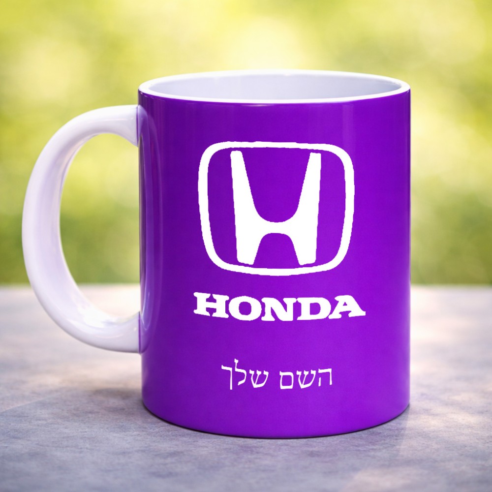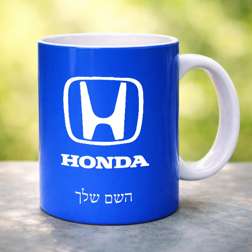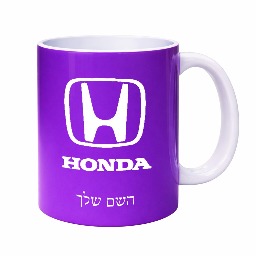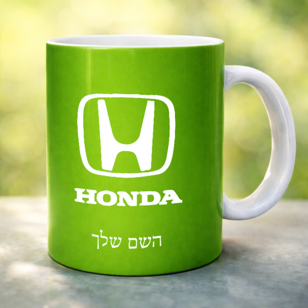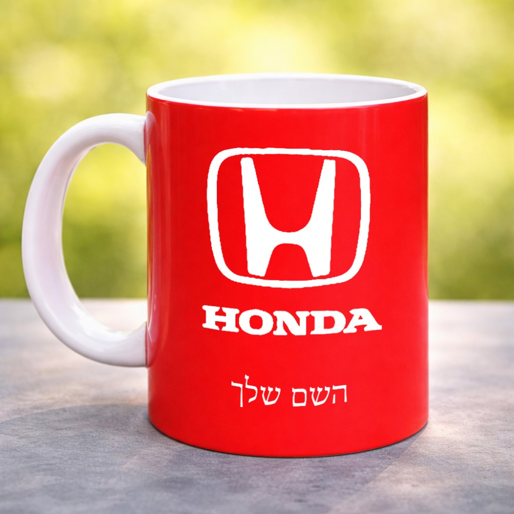 ספל תה \ קפה בעיצוב אישי עם השם שלך בעיצוב הונדה 2 גדול הספל 325 מ"ל, הספל בעלת ידית לאחיזה יציבה. את השם המבוקש ניתן לציין בהזמנה, אם לא צויין אנחנו ניצור קשר לבירור.