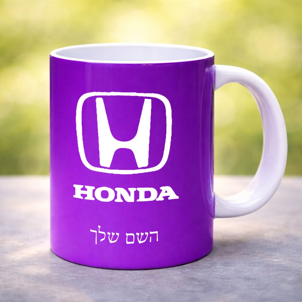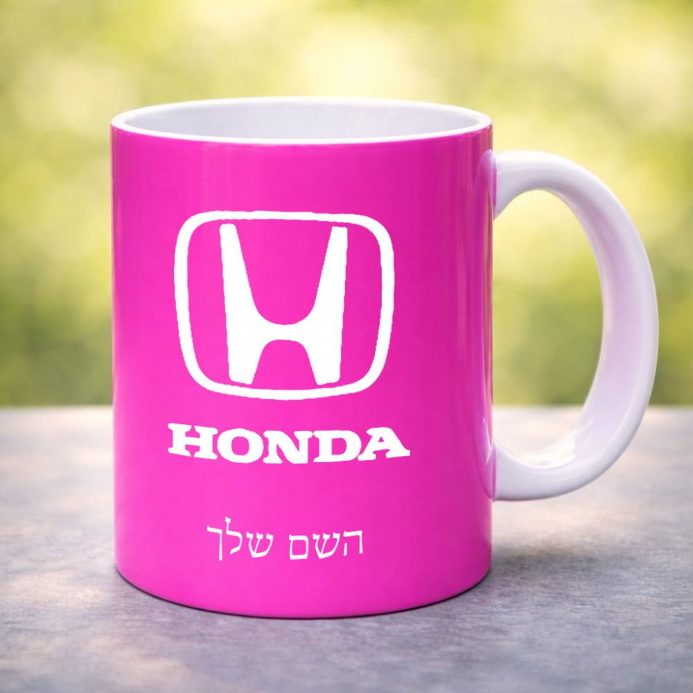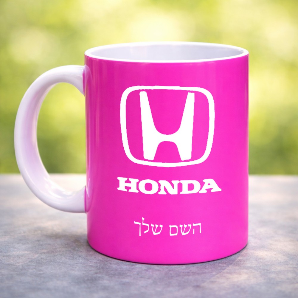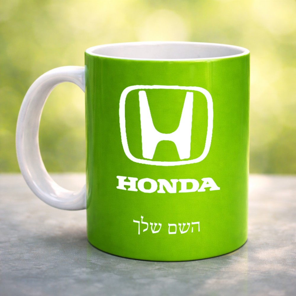 ספל תה \ קפה בעיצוב אישי עם השם שלך בעיצוב הונדה 2 גדול הספל 325 מ"ל, הספל בעלת ידית לאחיזה יציבה. את השם המבוקש ניתן לציין בהזמנה, אם לא צויין אנחנו ניצור קשר לבירור.