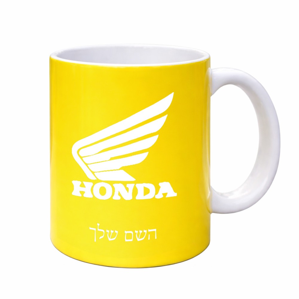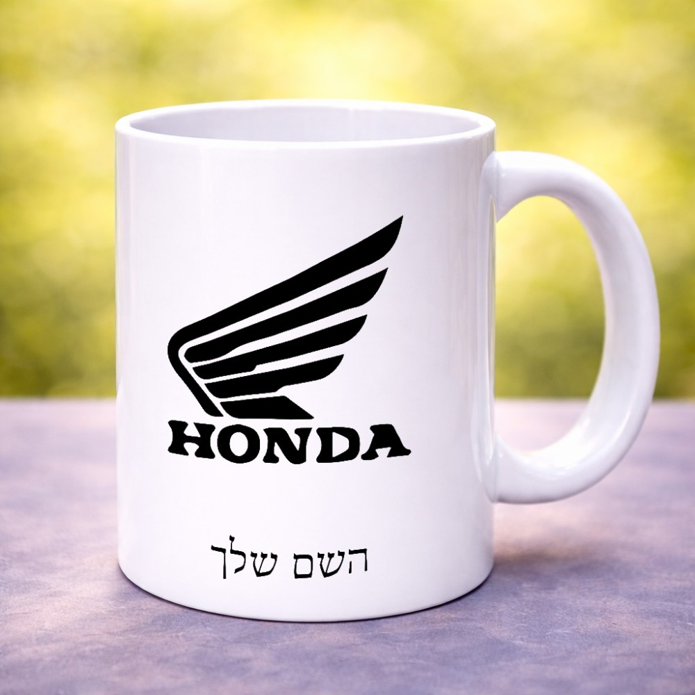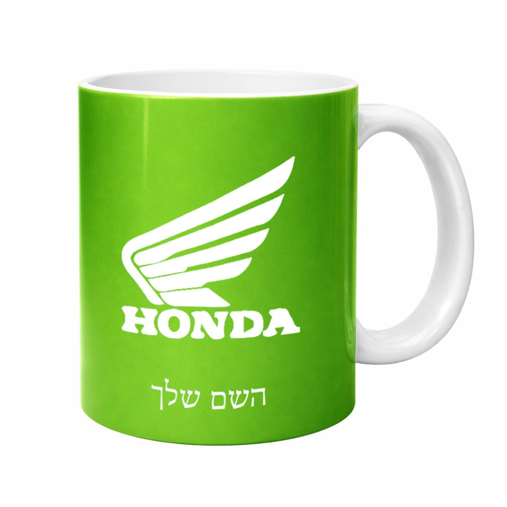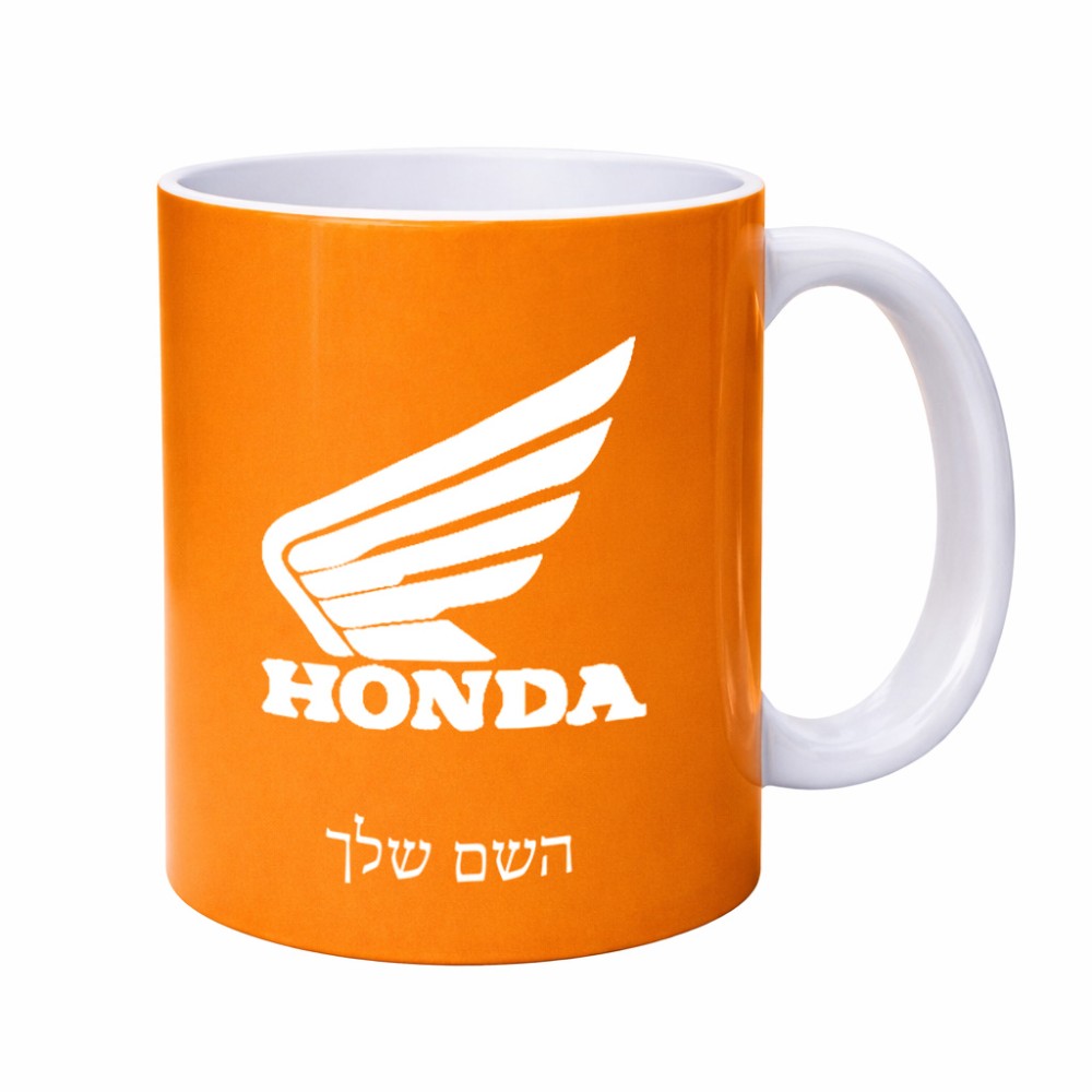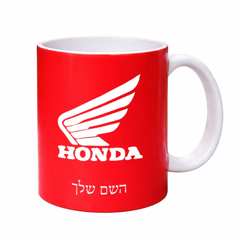 ספל תה \ קפה בעיצוב אישי עם השם שלך בעיצוב הונדה גדול הספל 325 מ"ל, הספל בעלת ידית לאחיזה יציבה. את השם המבוקש ניתן לציין בהזמנה, אם לא צויין אנחנו ניצור קשר לבירור.