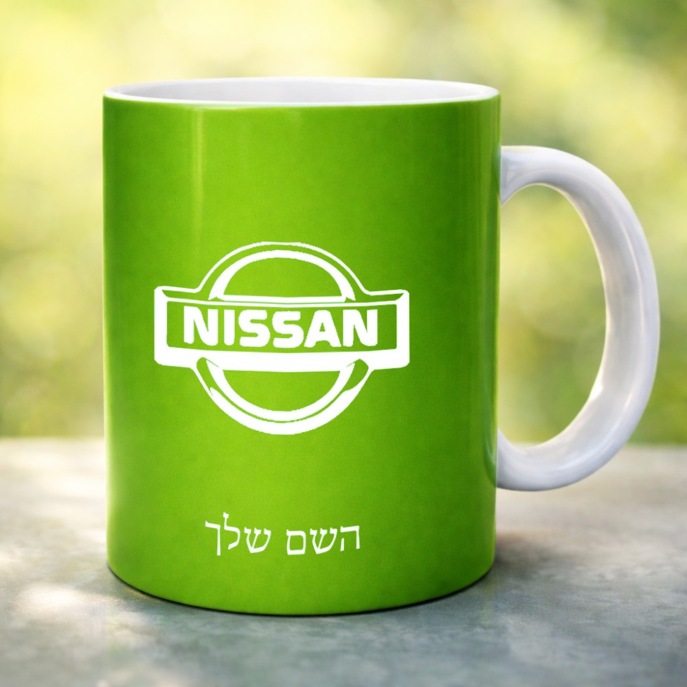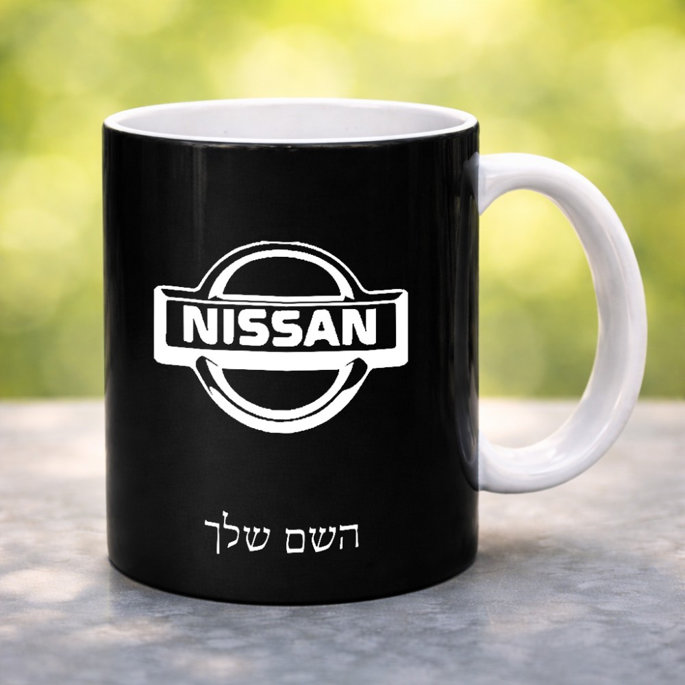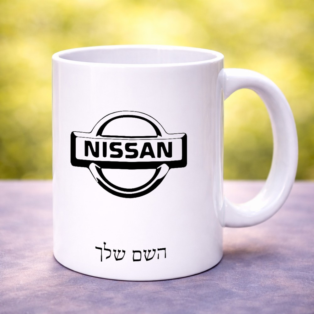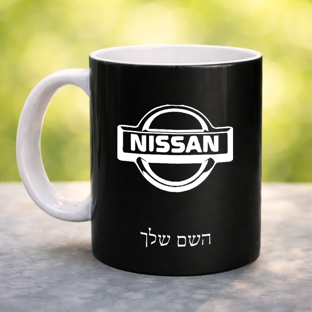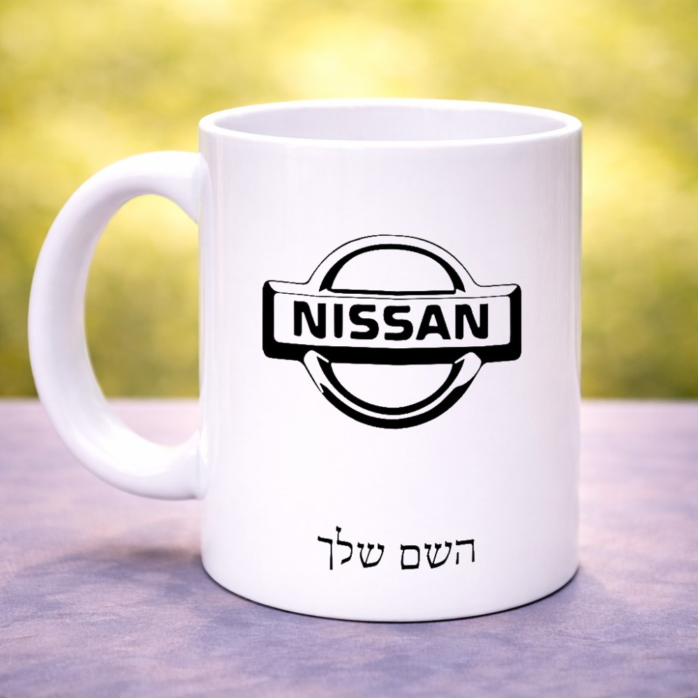 ספל תה \ קפה בעיצוב אישי עם השם שלך בעיצוב ניסאן גודל הספל 325 מ"ל
