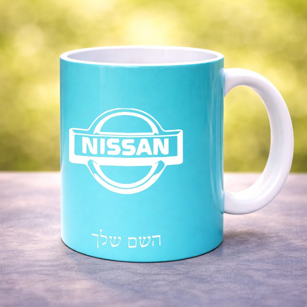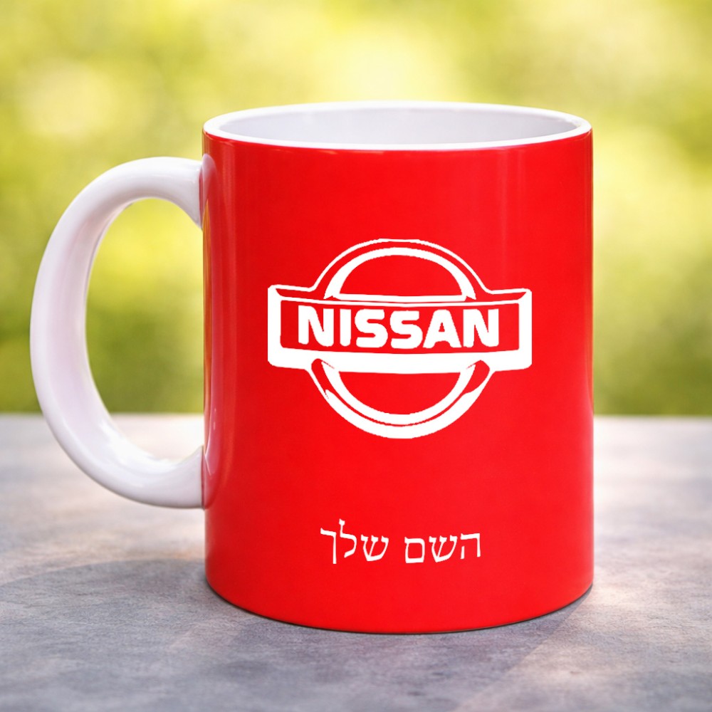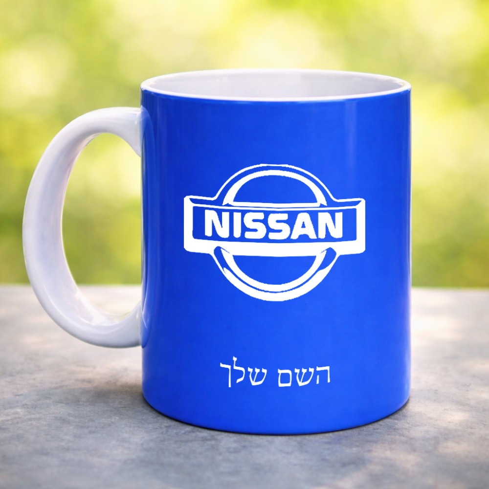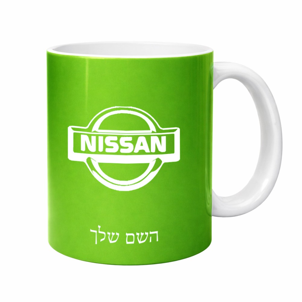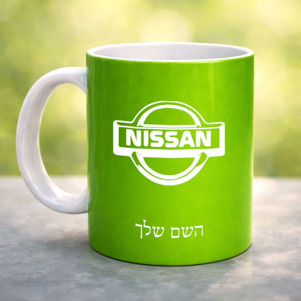 ספל תה \ קפה בעיצוב אישי עם השם שלך בעיצוב ניסאן גודל הספל 325 מ"ל