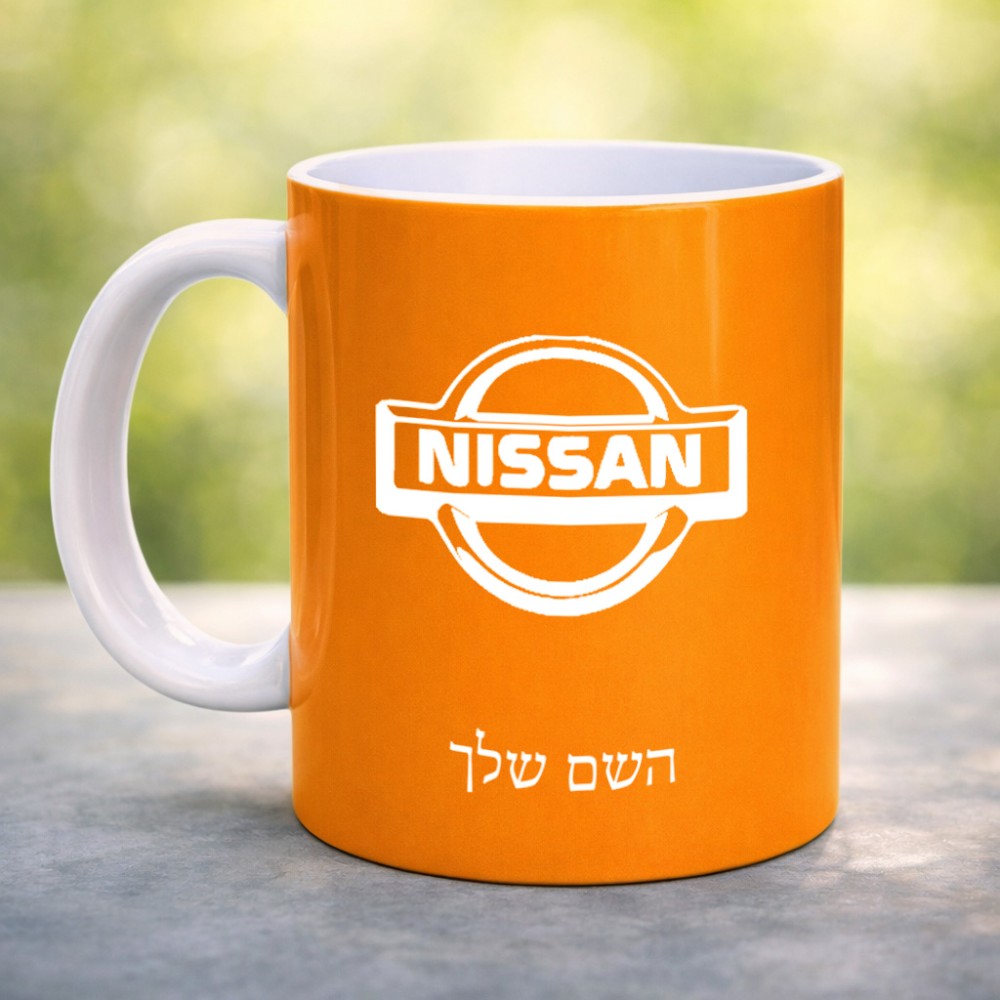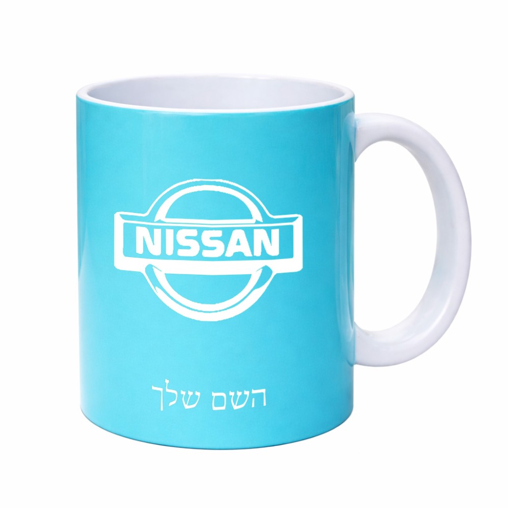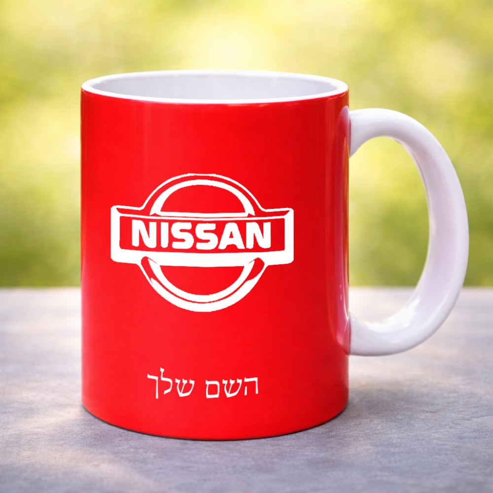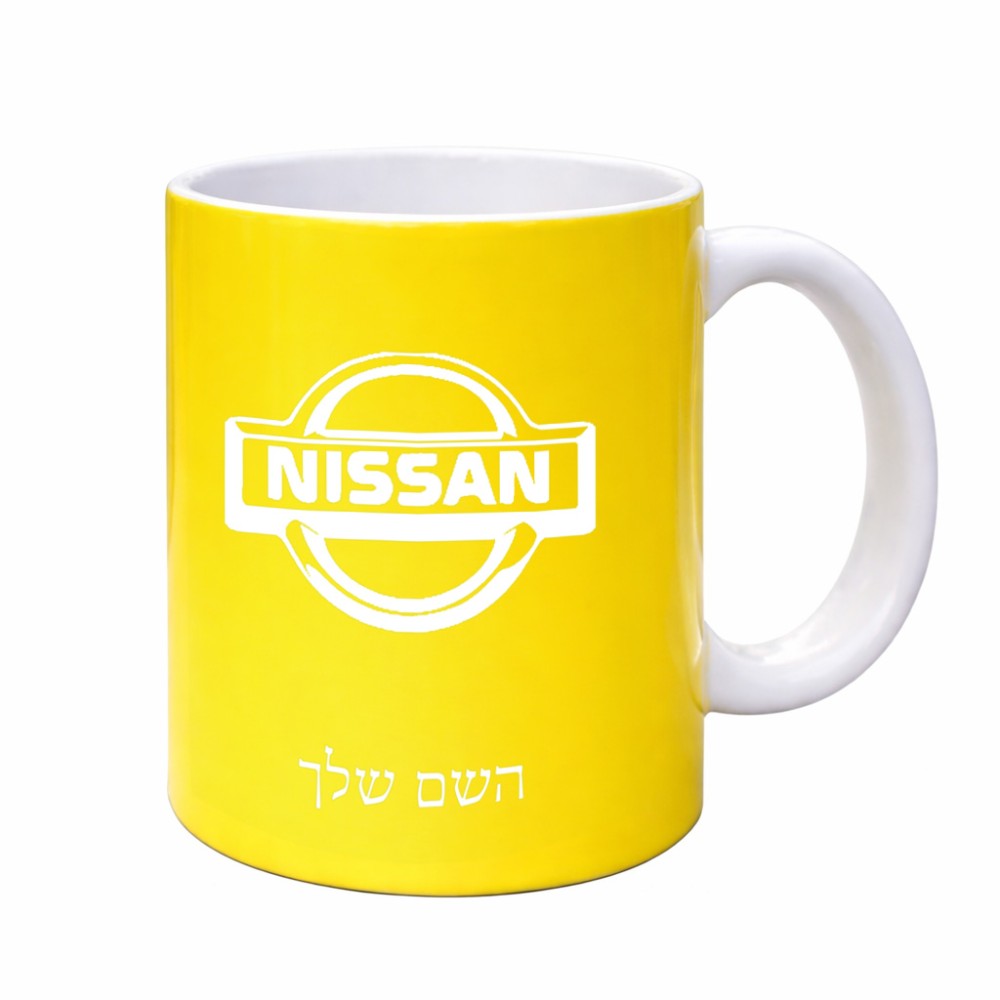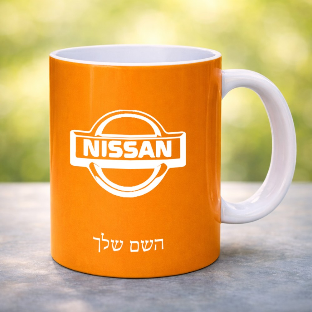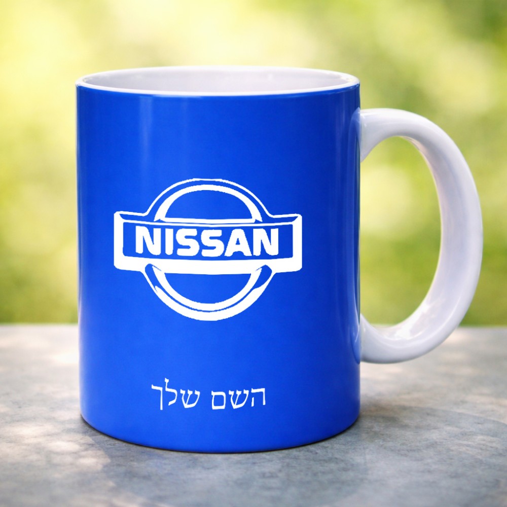 ספל תה \ קפה בעיצוב אישי עם השם שלך בעיצוב ניסאן גודל הספל 325 מ"ל