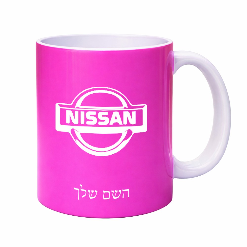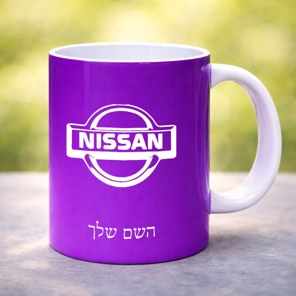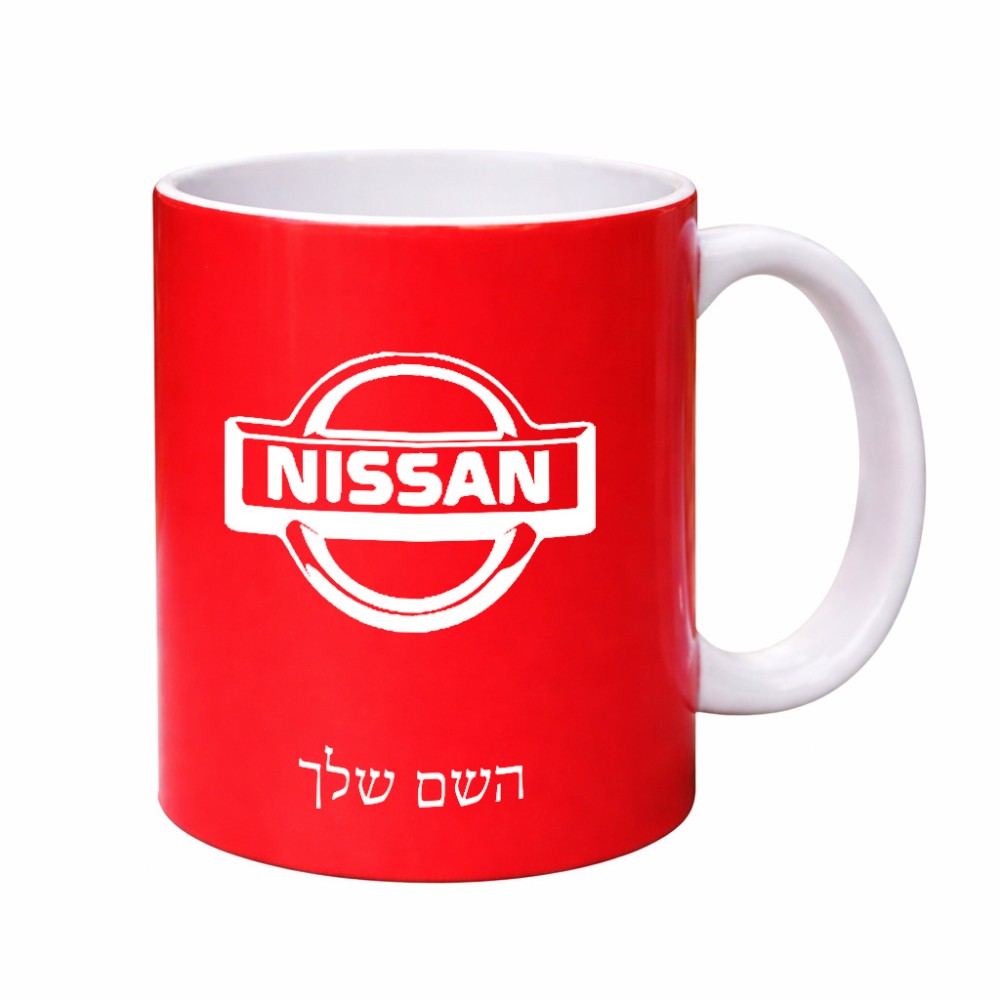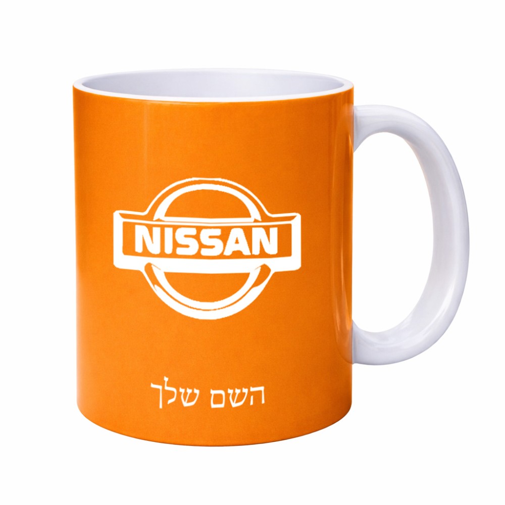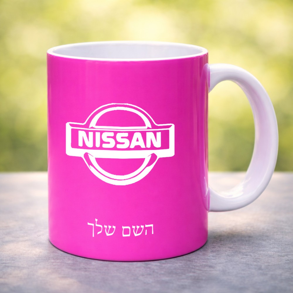 ספל תה \ קפה בעיצוב אישי עם השם שלך בעיצוב ניסאן גודל הספל 325 מ"ל