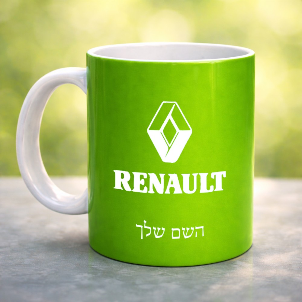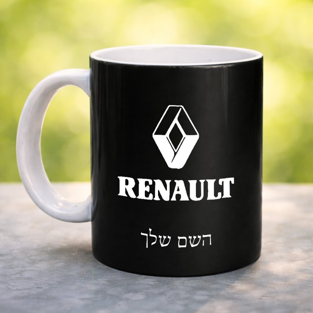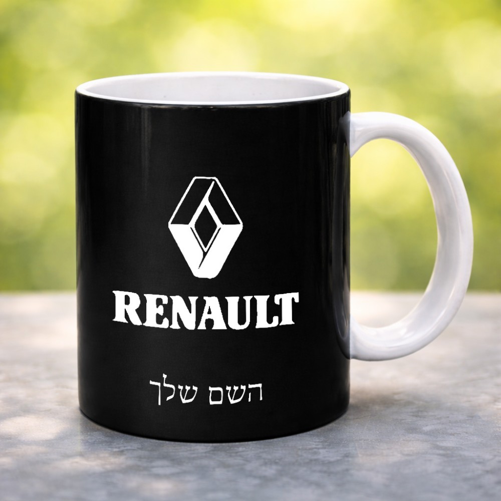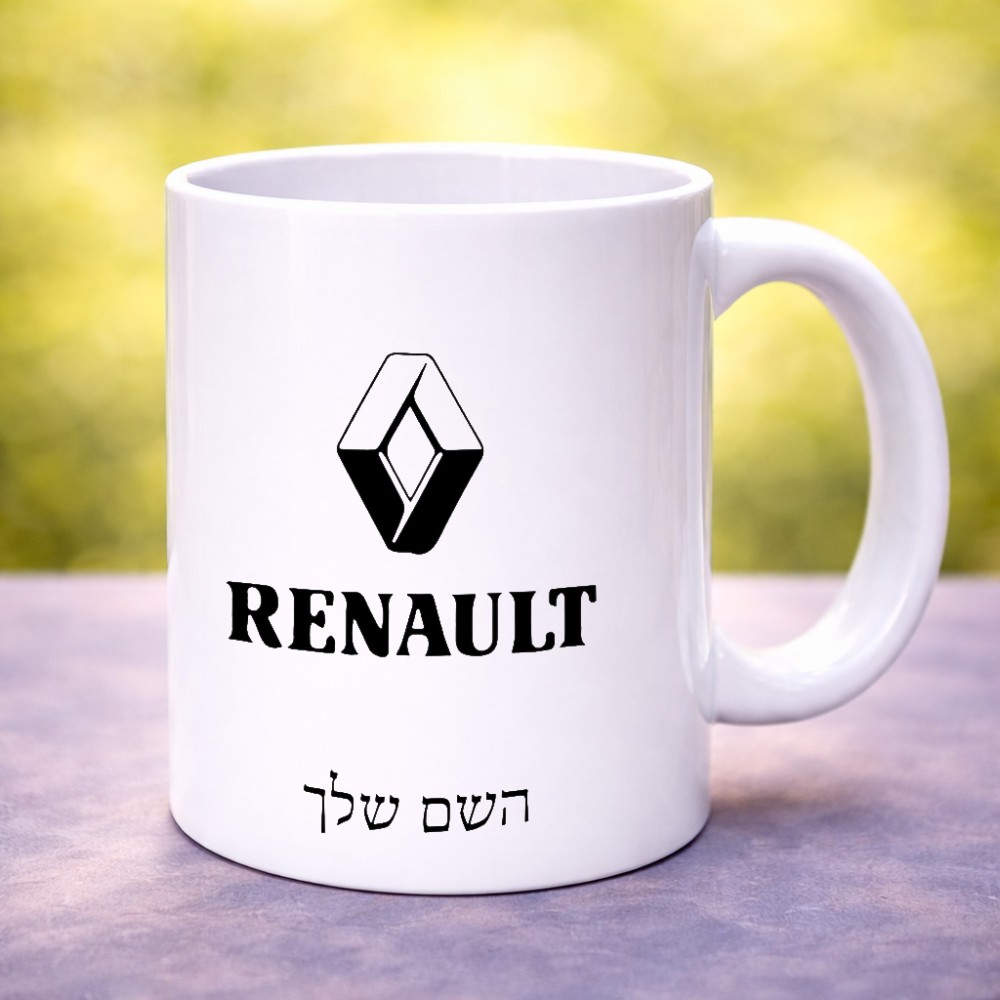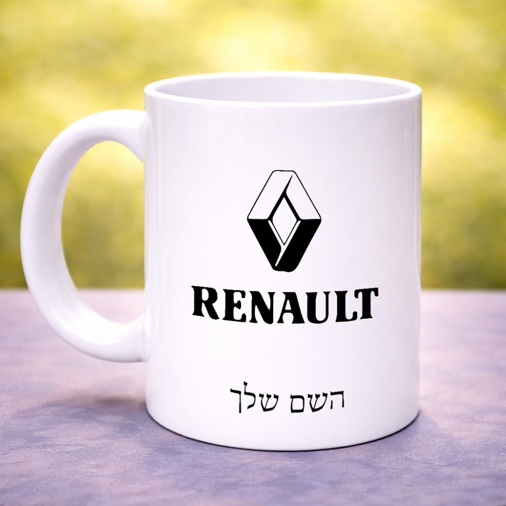 ספל תה \ קפה בעיצוב אישי עם השם שלך בעיצוב רנו גודל הספל 325 מ"ל