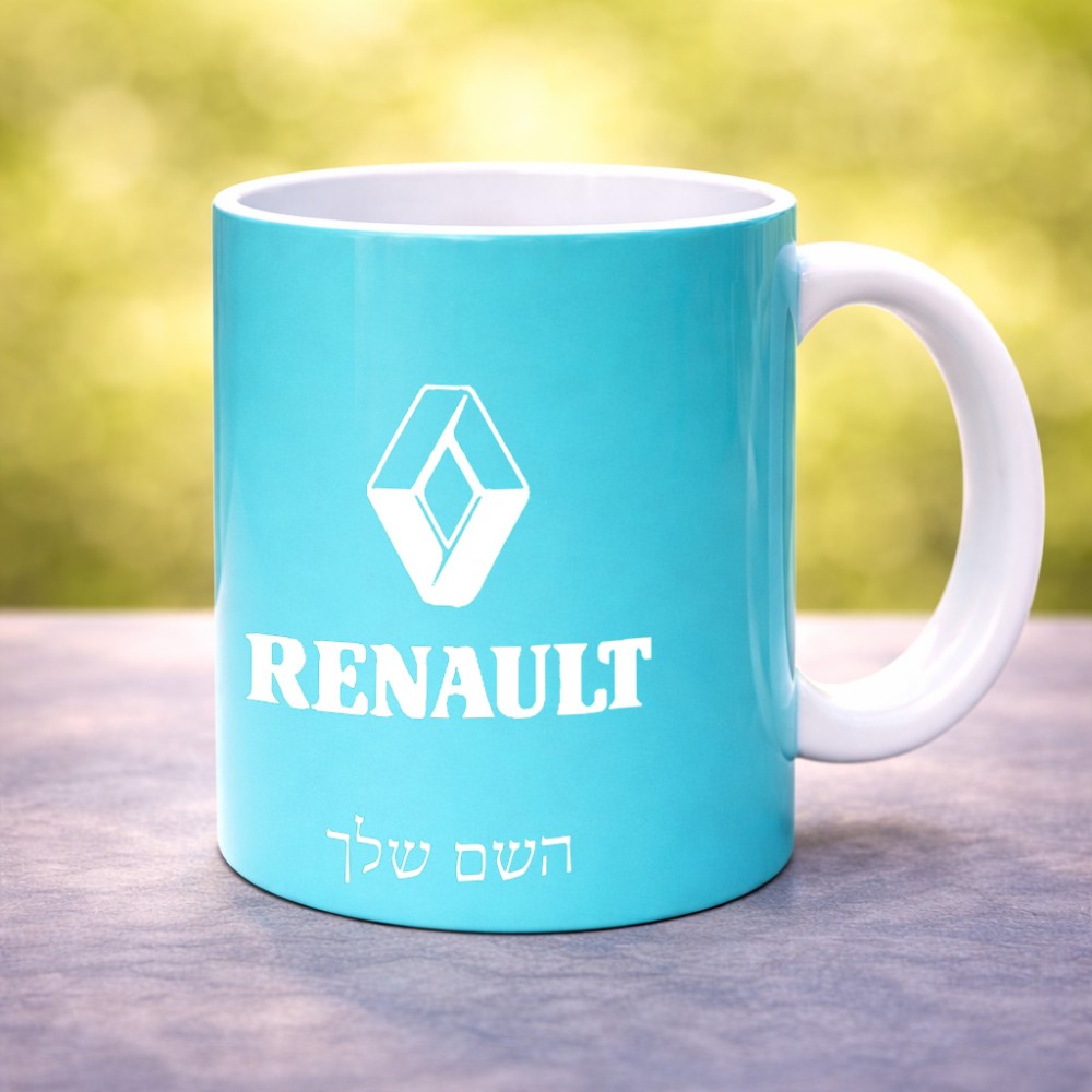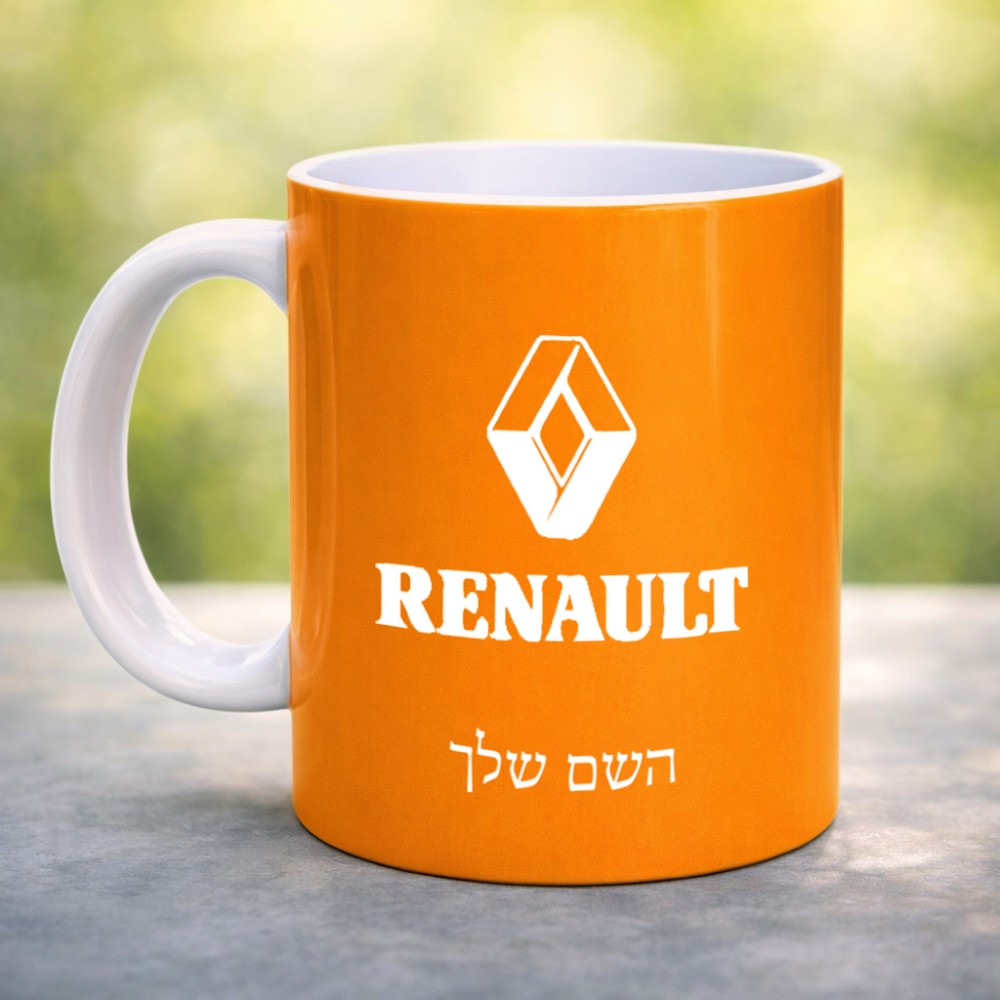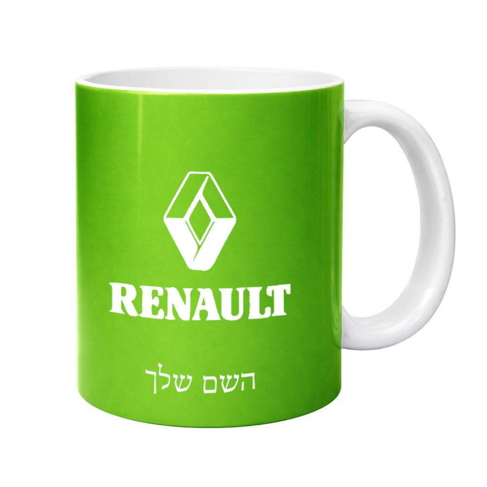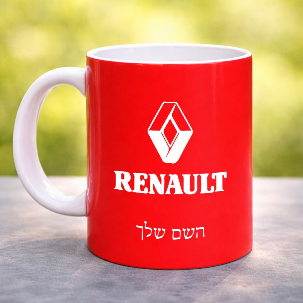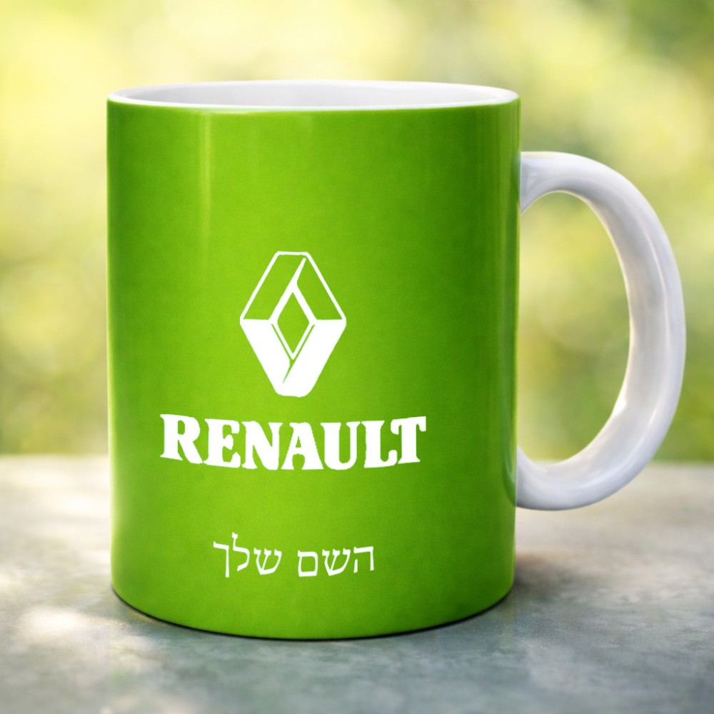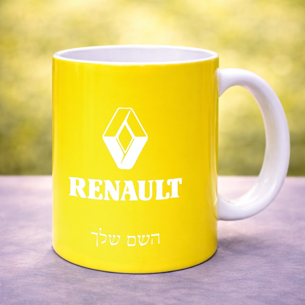 ספל תה \ קפה בעיצוב אישי עם השם שלך בעיצוב רנו גודל הספל 325 מ"ל