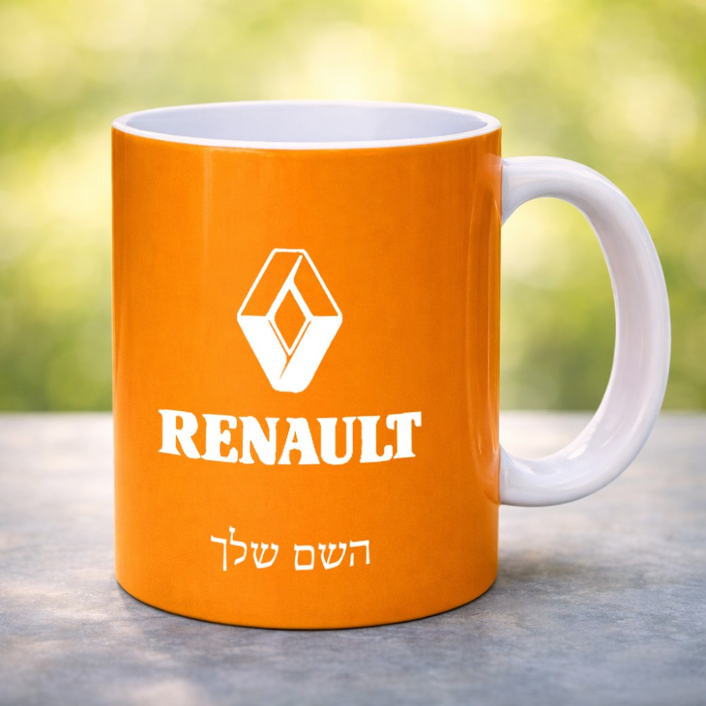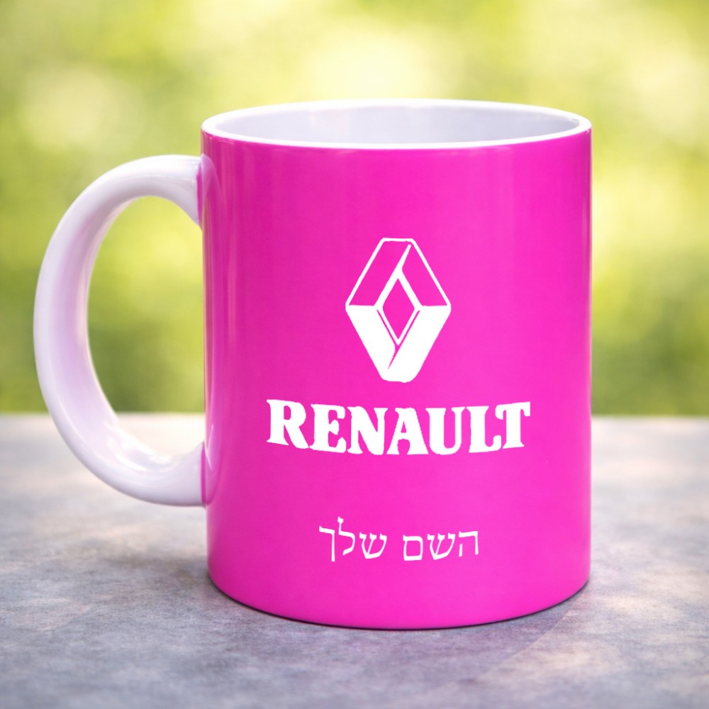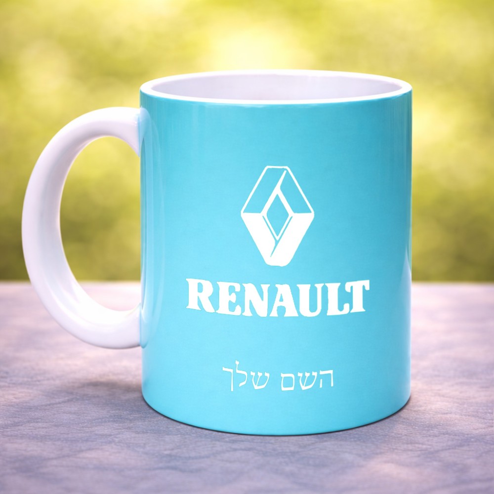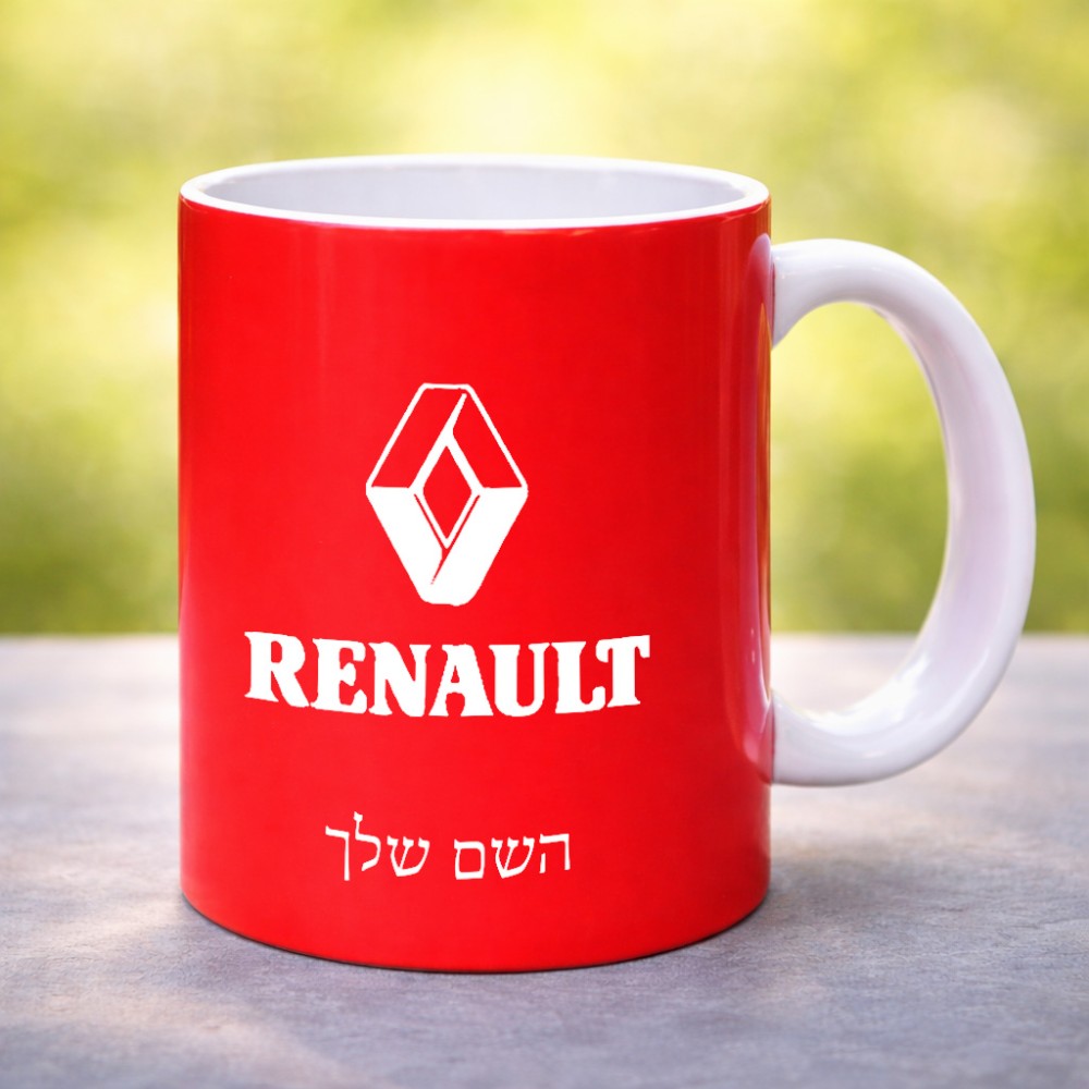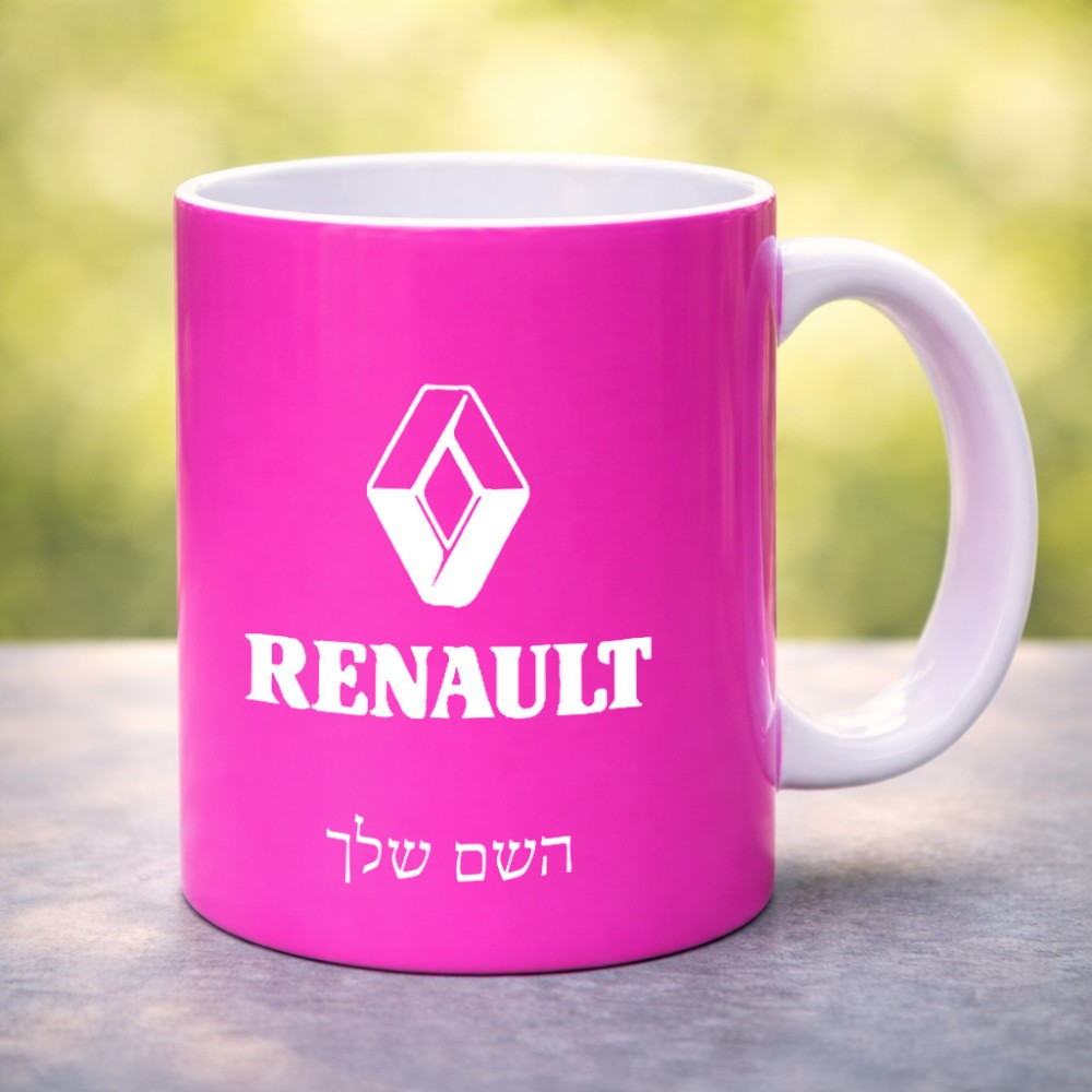 ספל תה \ קפה בעיצוב אישי עם השם שלך בעיצוב רנו גודל הספל 325 מ"ל