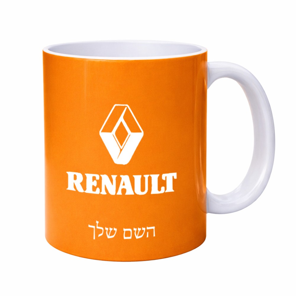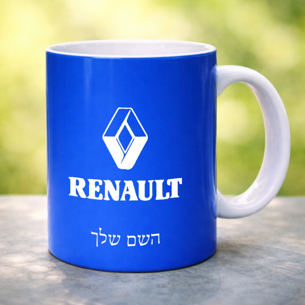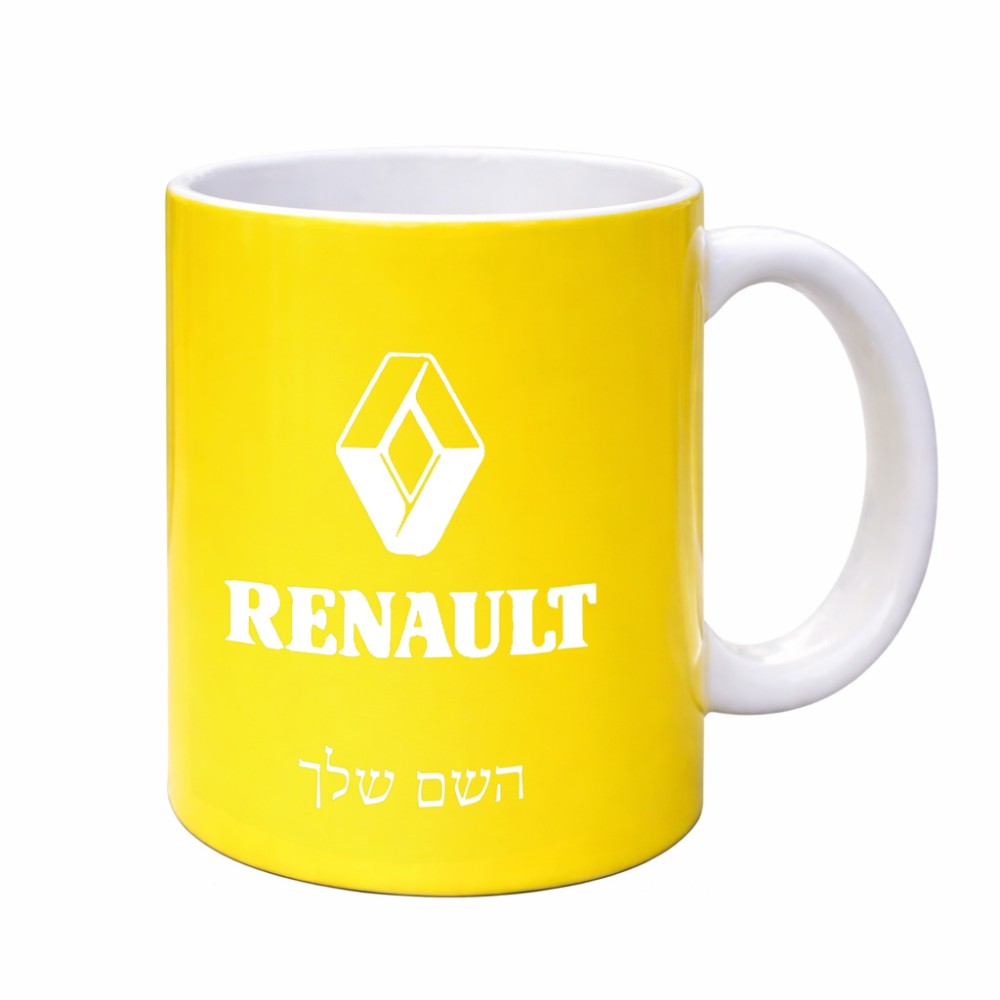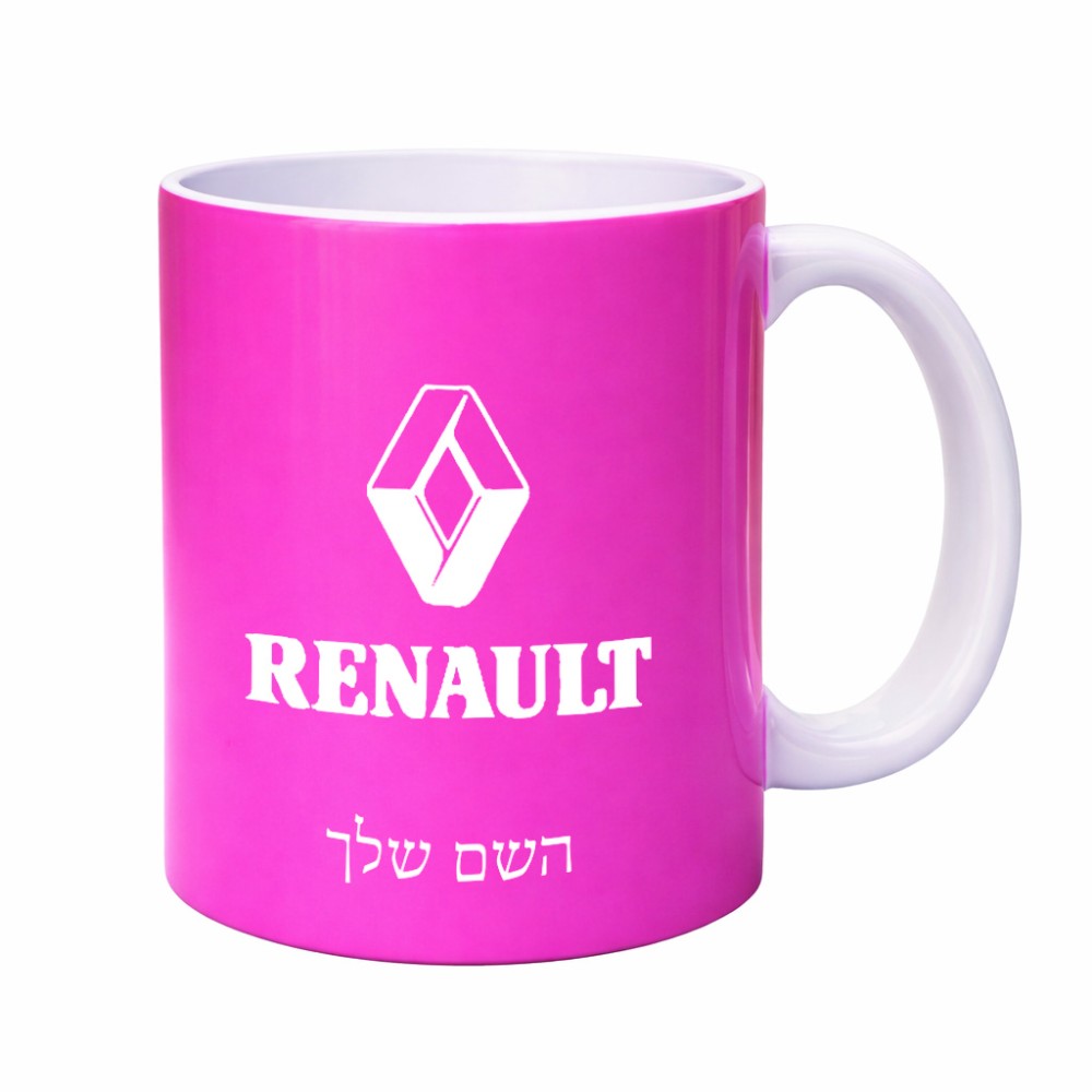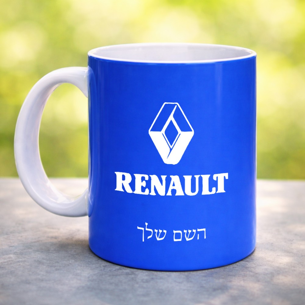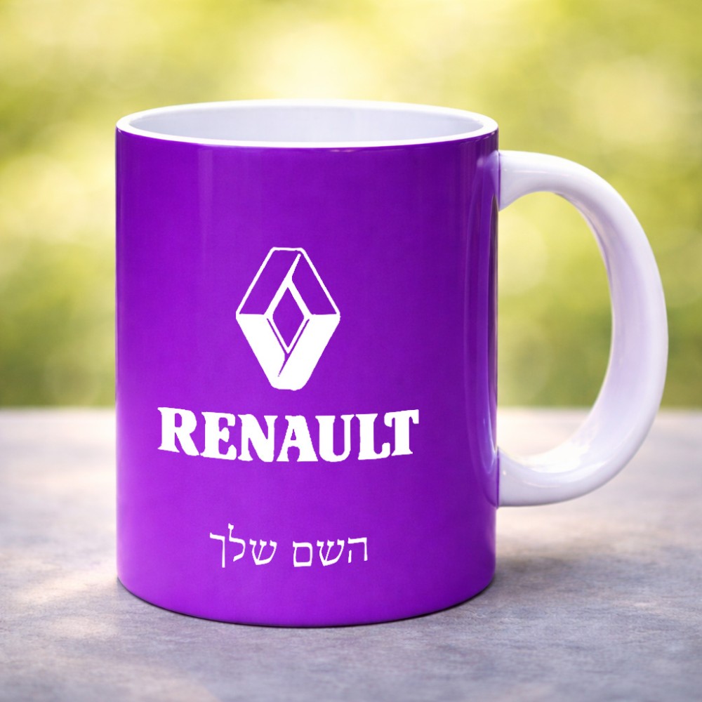 ספל תה \ קפה בעיצוב אישי עם השם שלך בעיצוב רנו גודל הספל 325 מ"ל
