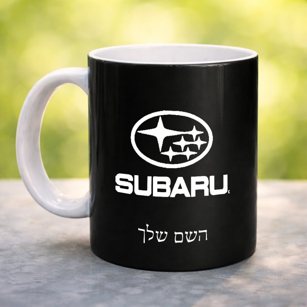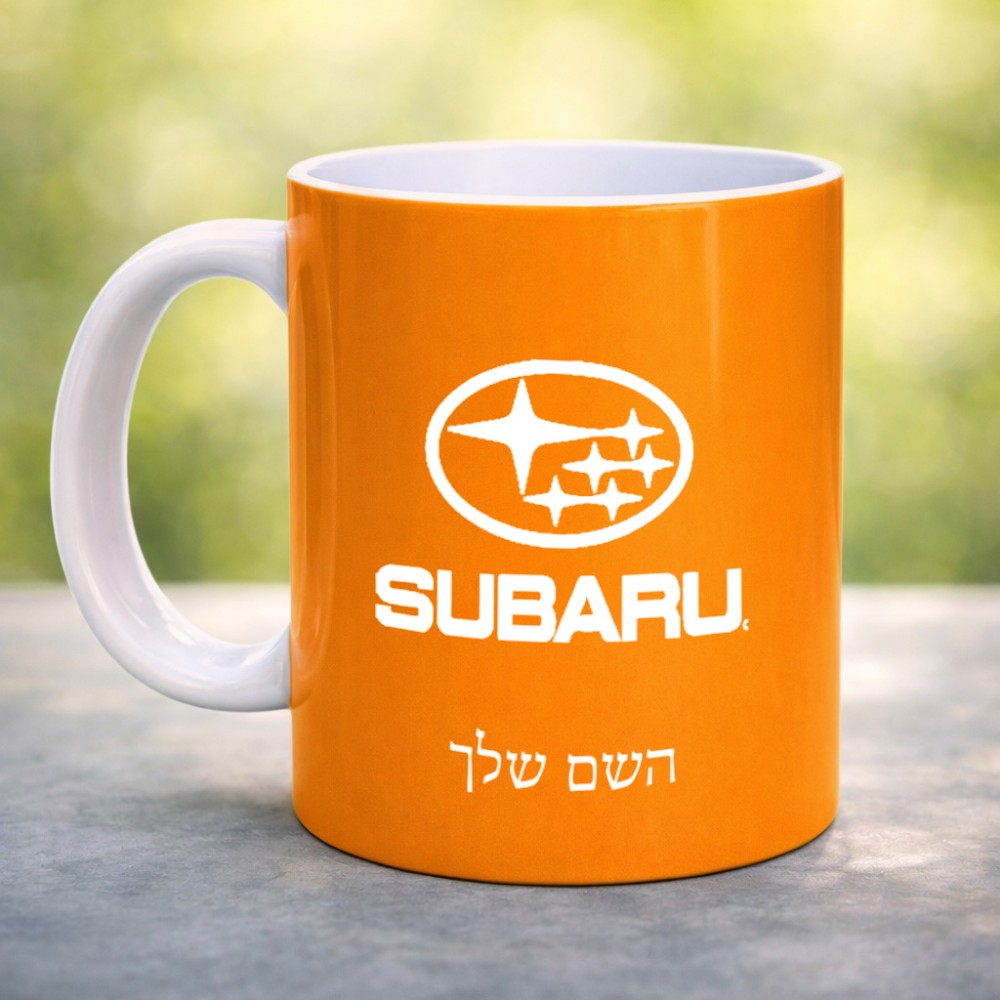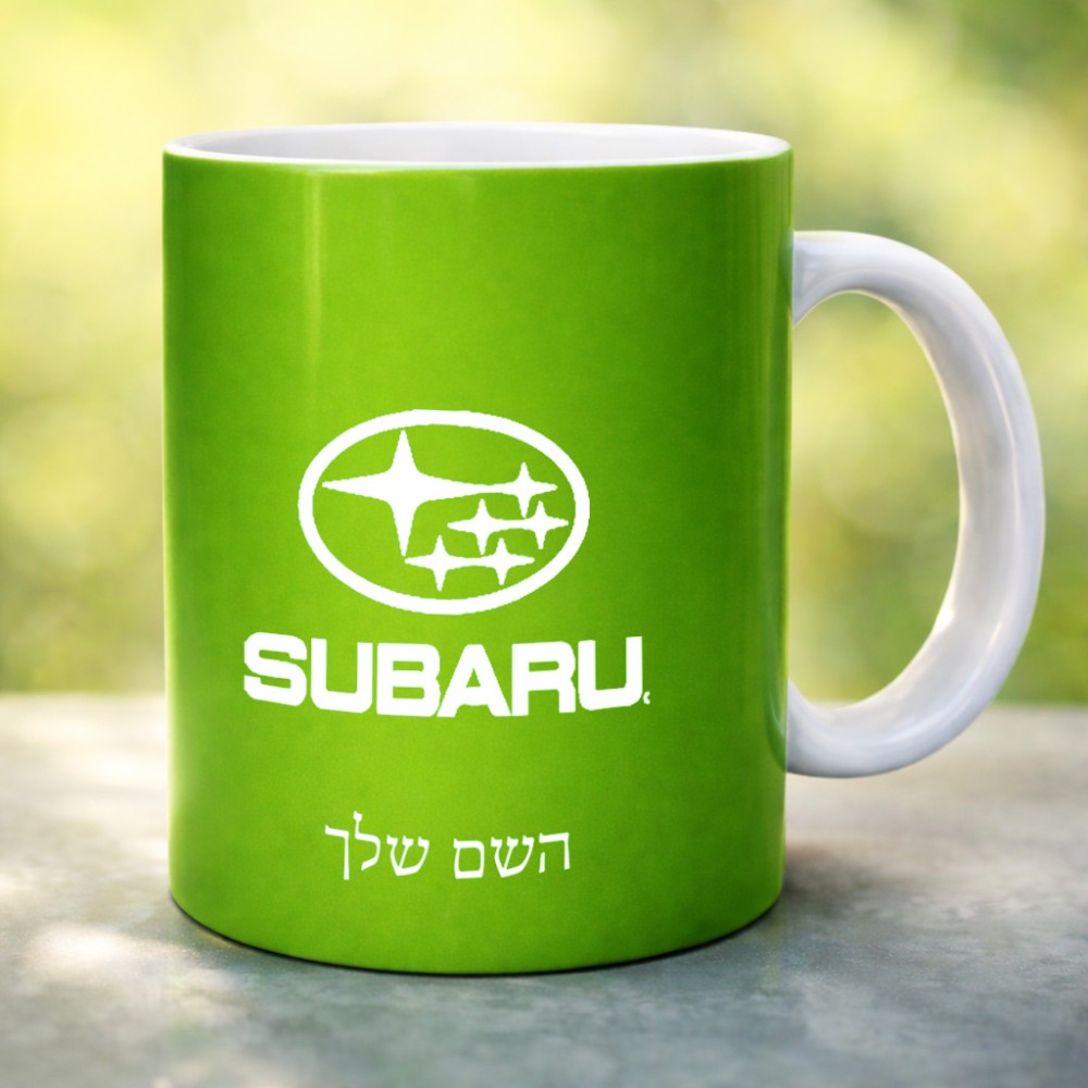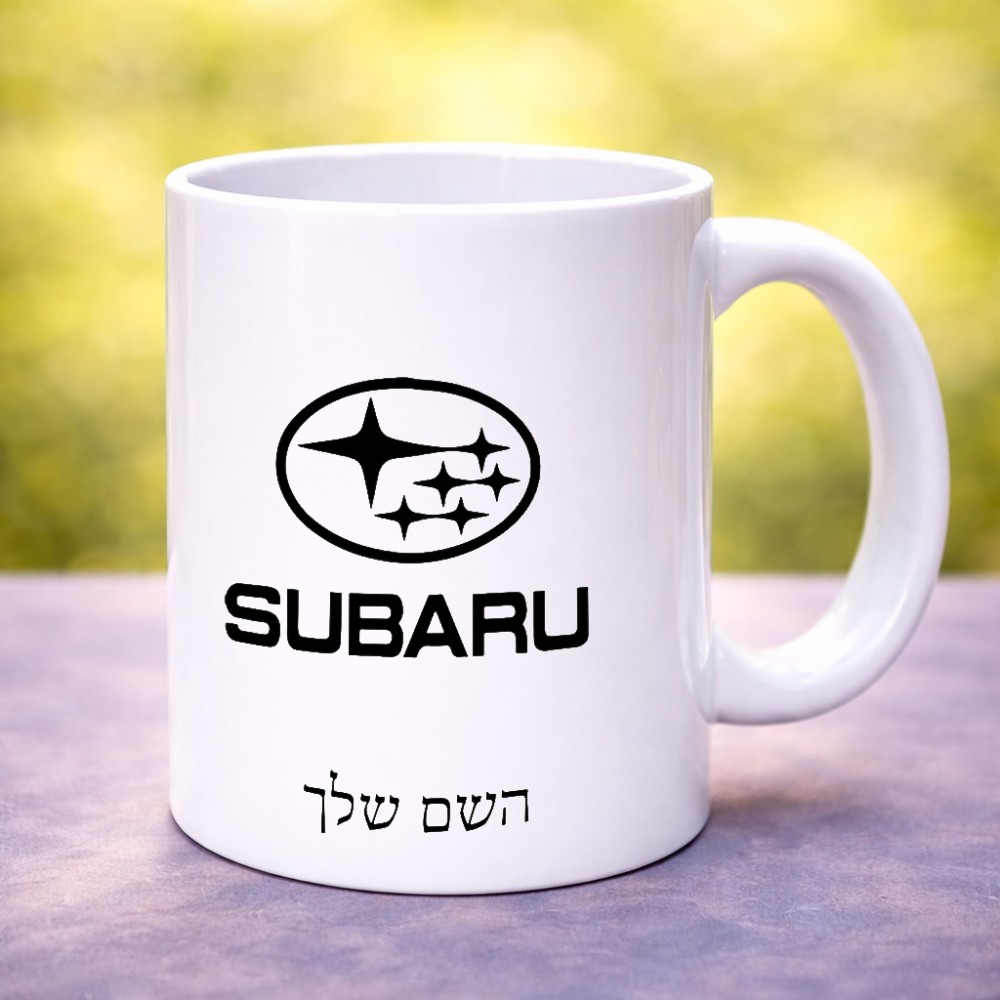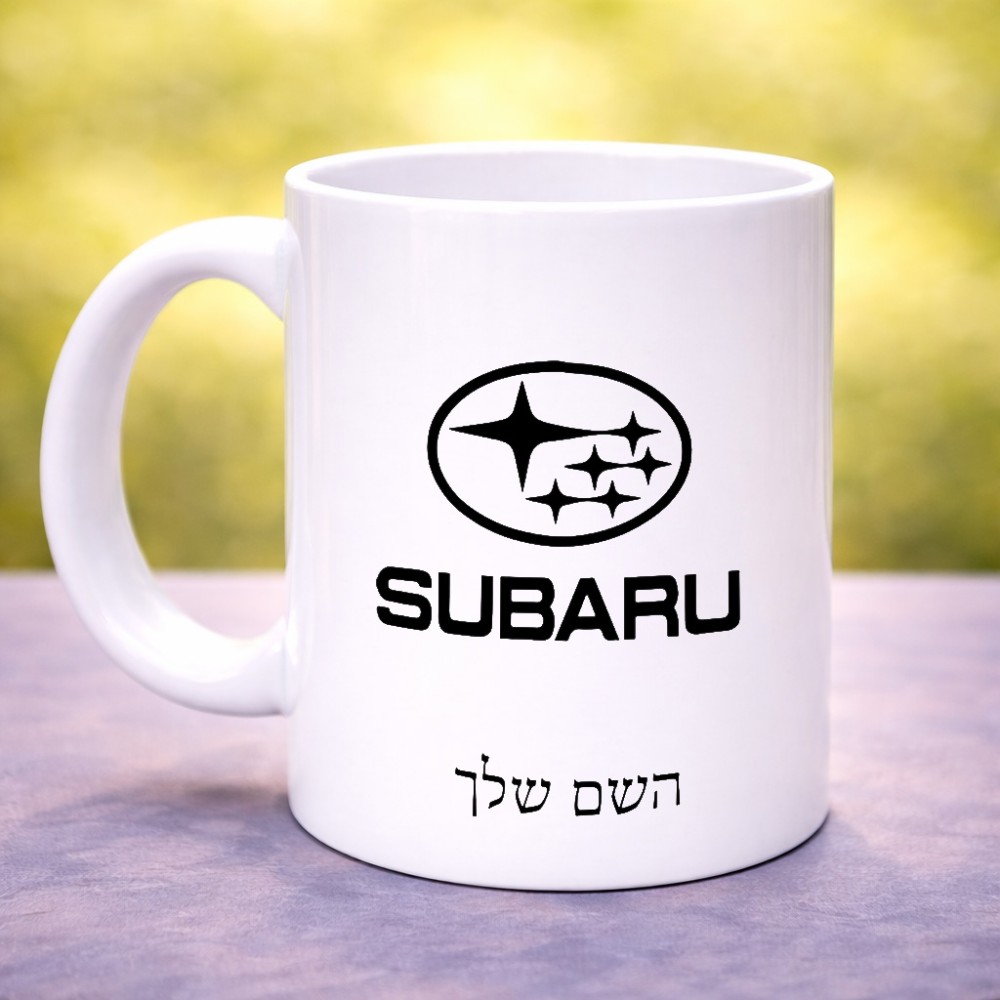 ספל תה \ קפה בעיצוב אישי עם השם שלך בעיצוב סובארו גדול הספל 325 מ"ל, הספל בעלת ידית לאחיזה יציבה. את השם המבוקש ניתן לציין בהזמנה, אם לא צויין אנחנו ניצור קשר לבירור.