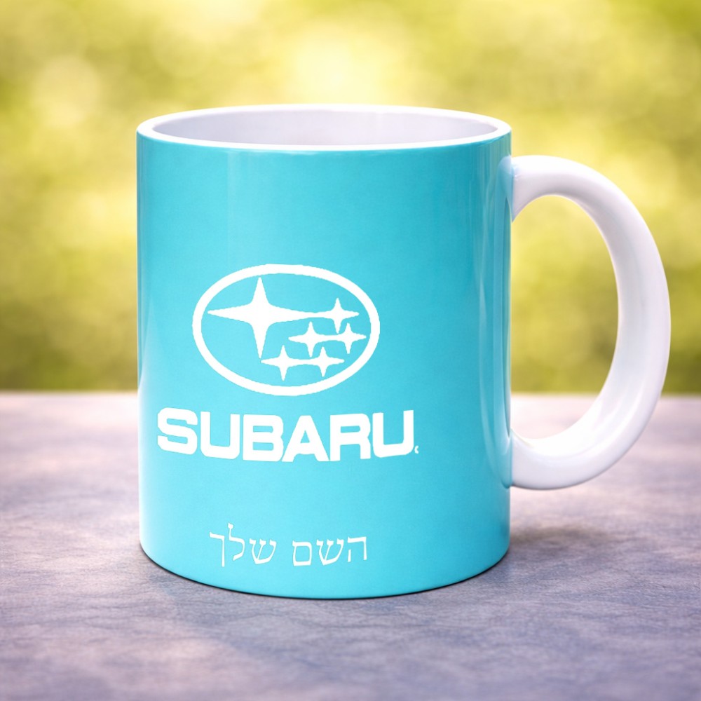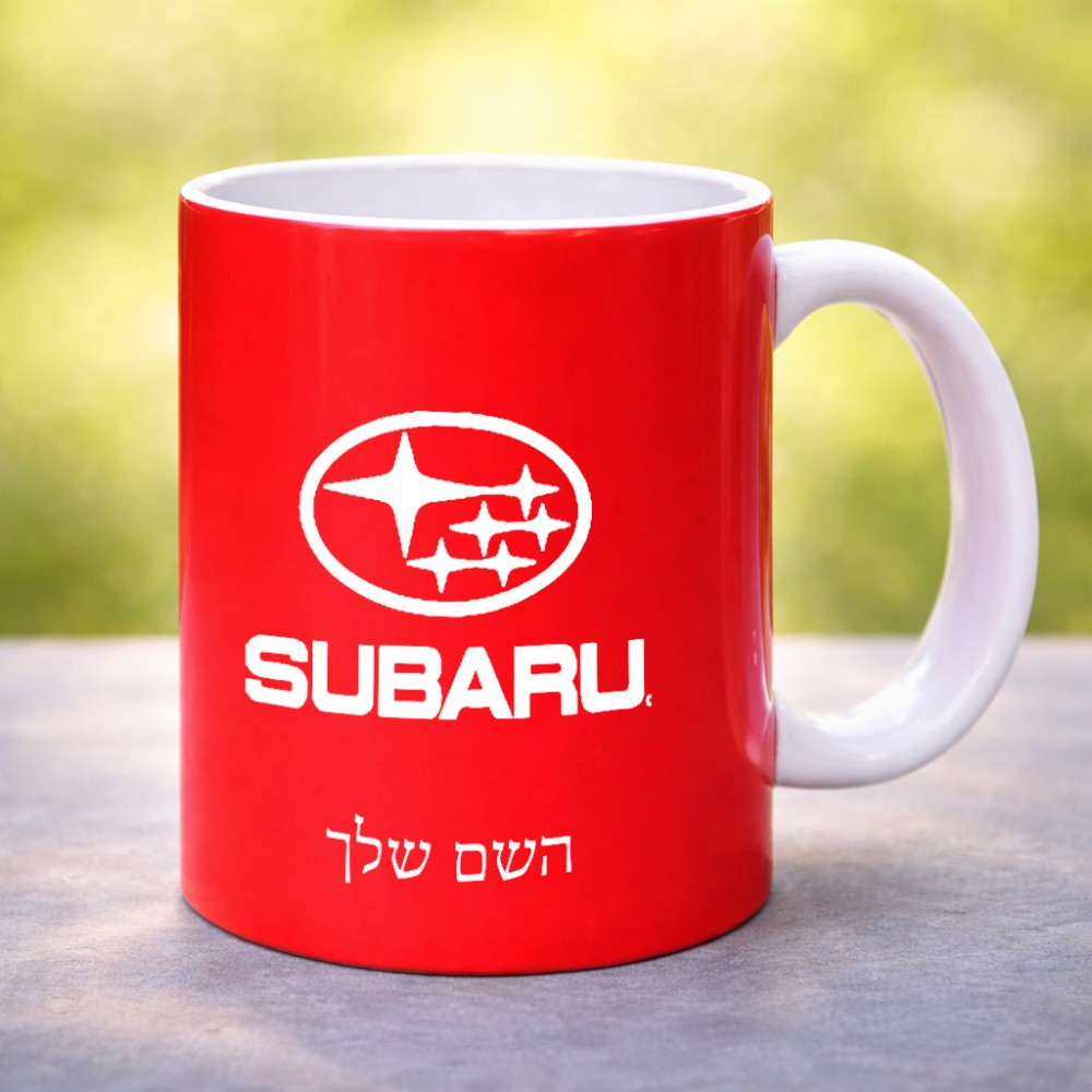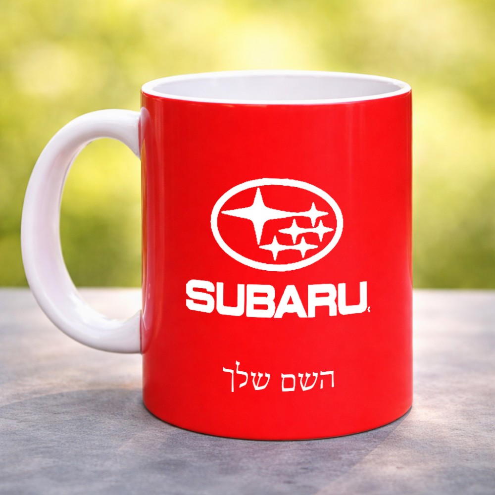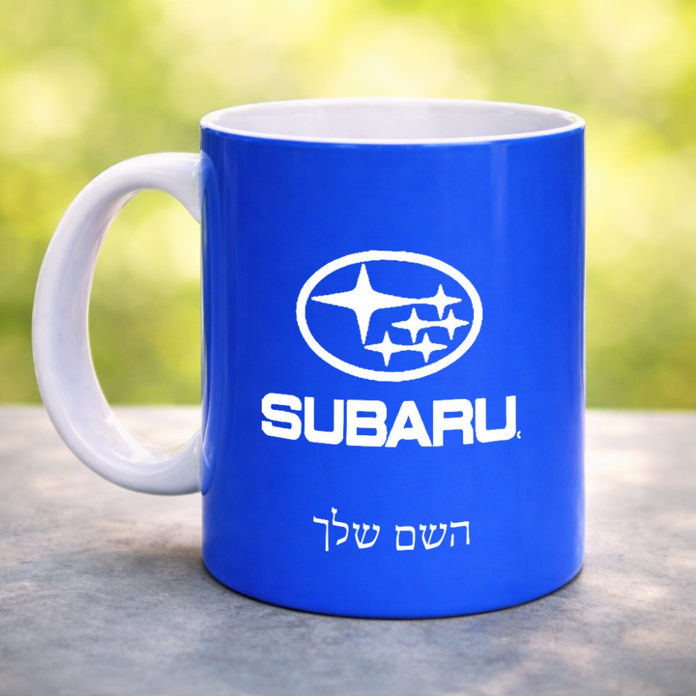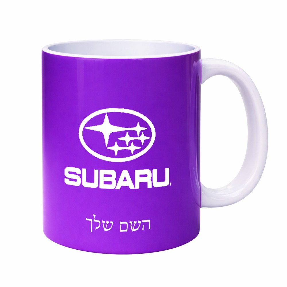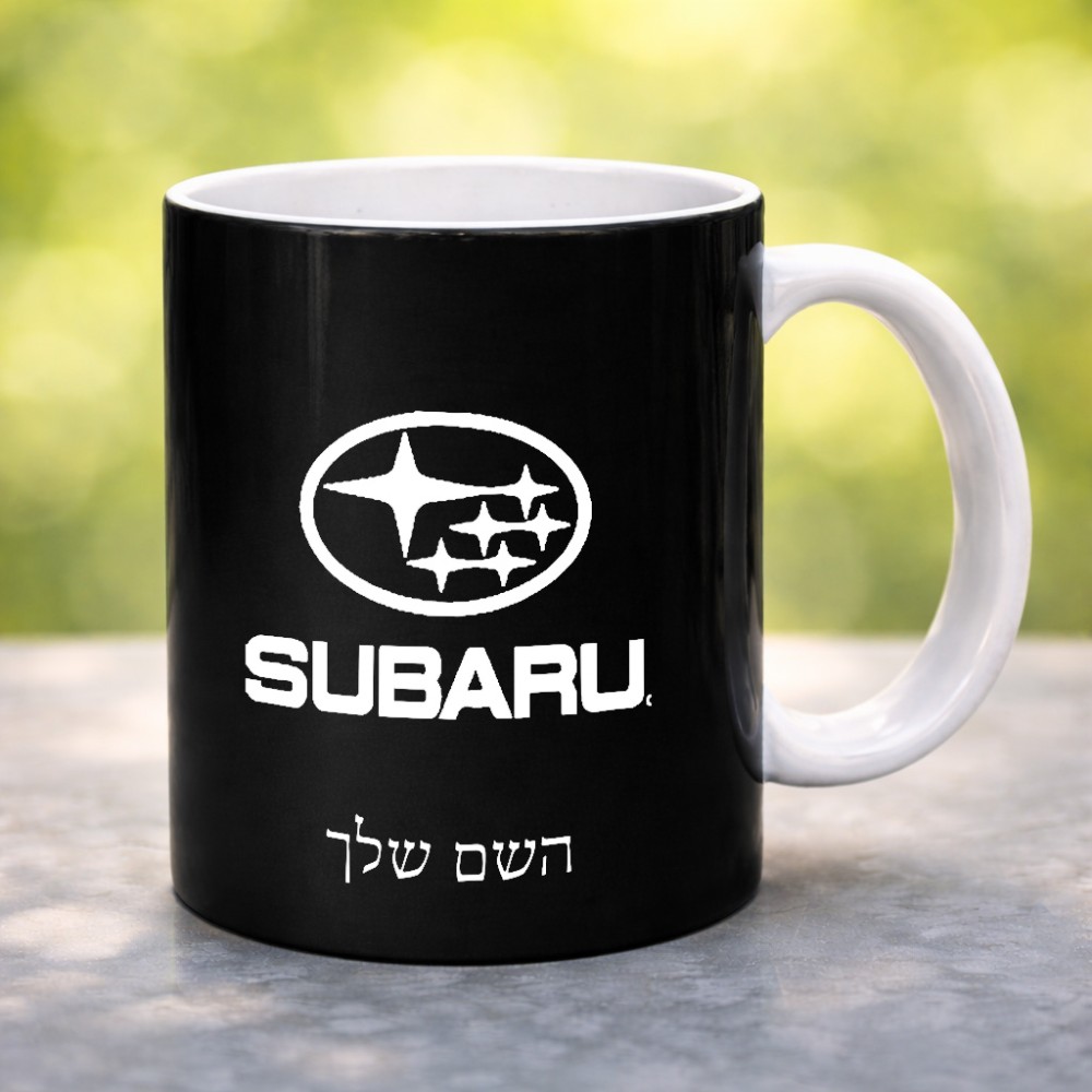 ספל תה \ קפה בעיצוב אישי עם השם שלך בעיצוב סובארו גדול הספל 325 מ"ל, הספל בעלת ידית לאחיזה יציבה. את השם המבוקש ניתן לציין בהזמנה, אם לא צויין אנחנו ניצור קשר לבירור.