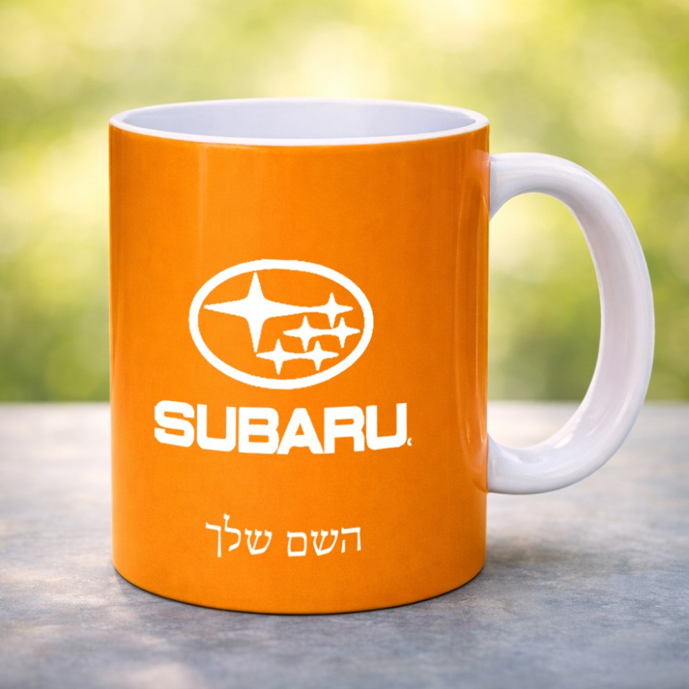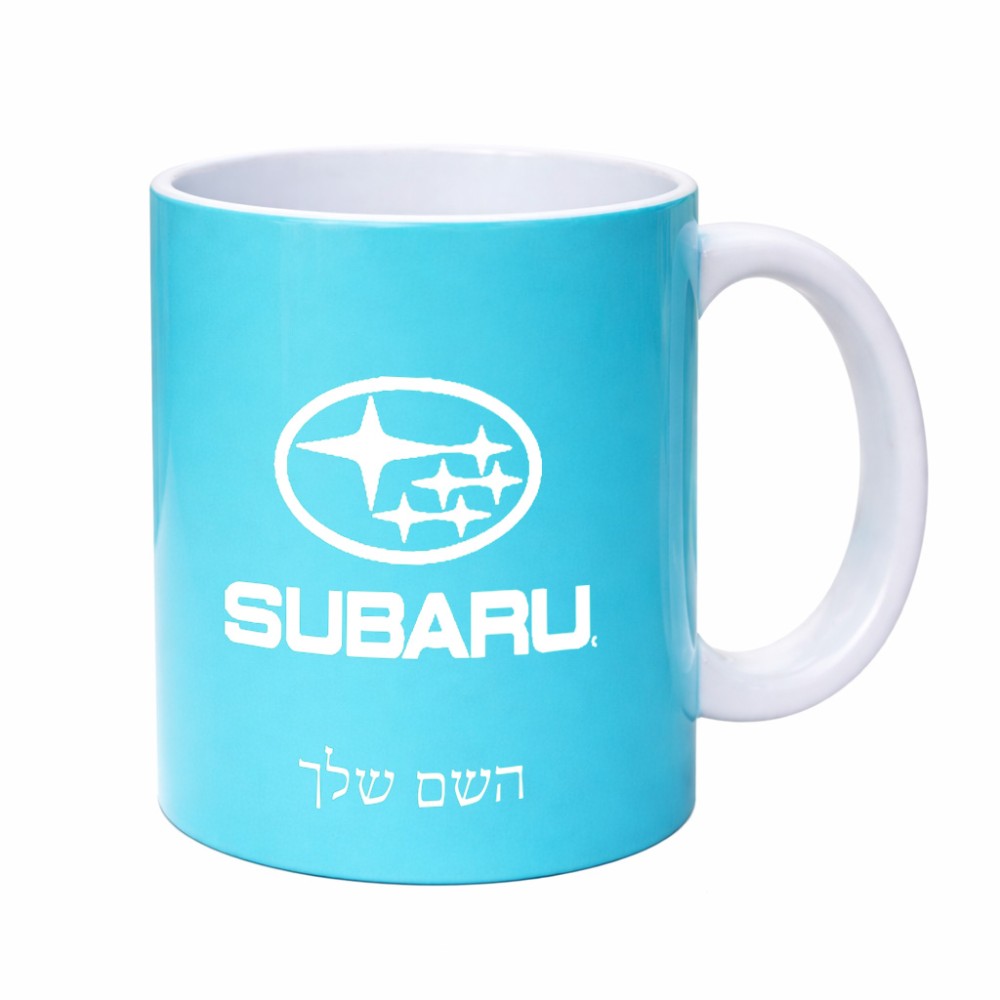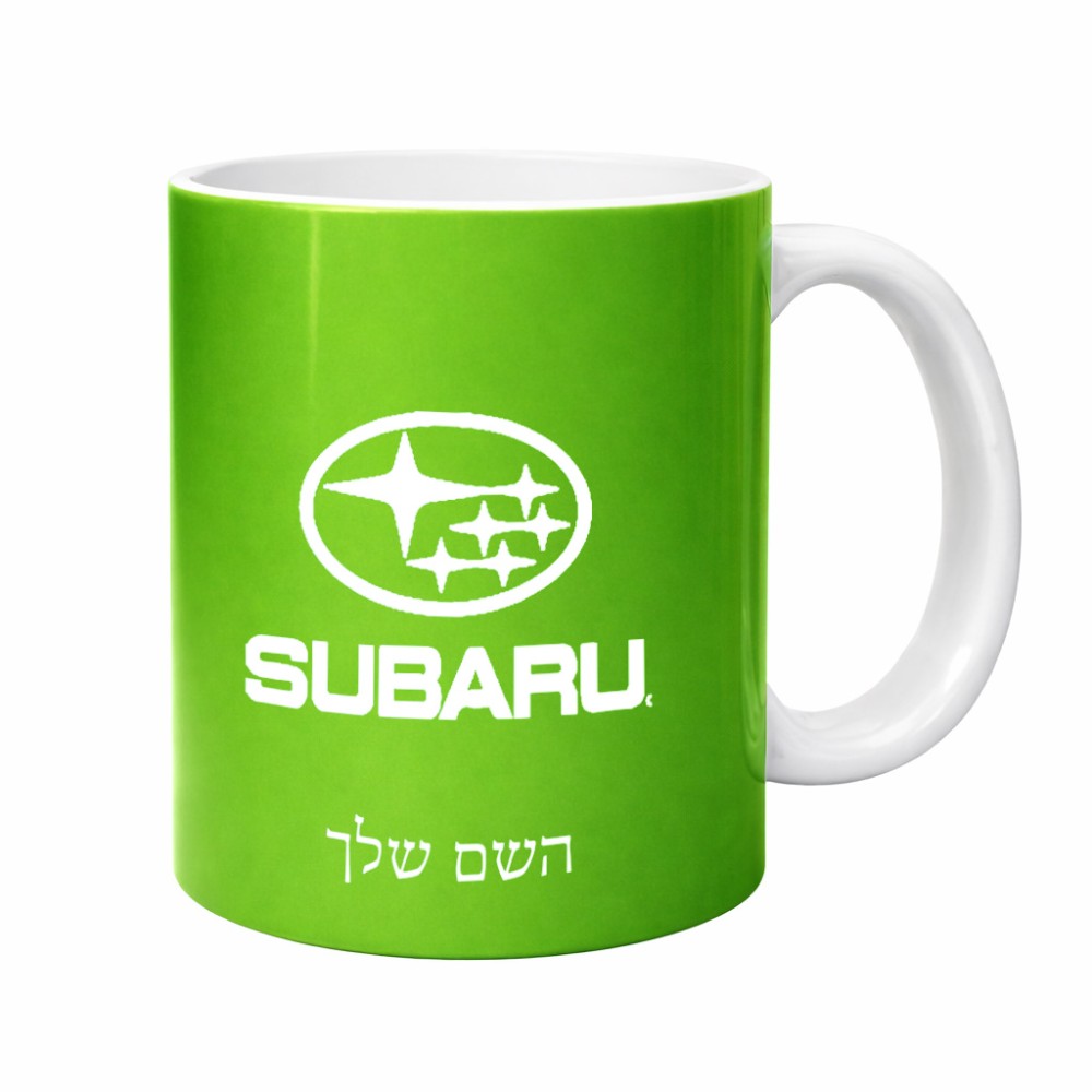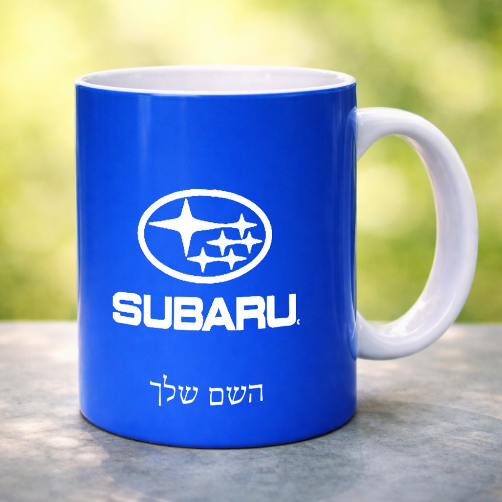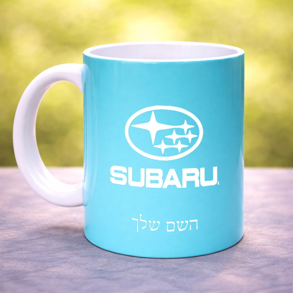 ספל תה \ קפה בעיצוב אישי עם השם שלך בעיצוב סובארו גדול הספל 325 מ"ל, הספל בעלת ידית לאחיזה יציבה. את השם המבוקש ניתן לציין בהזמנה, אם לא צויין אנחנו ניצור קשר לבירור.