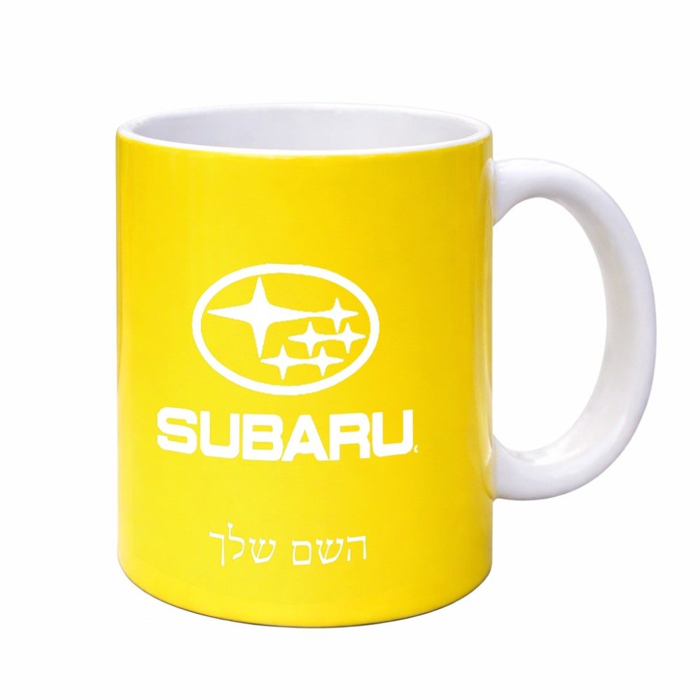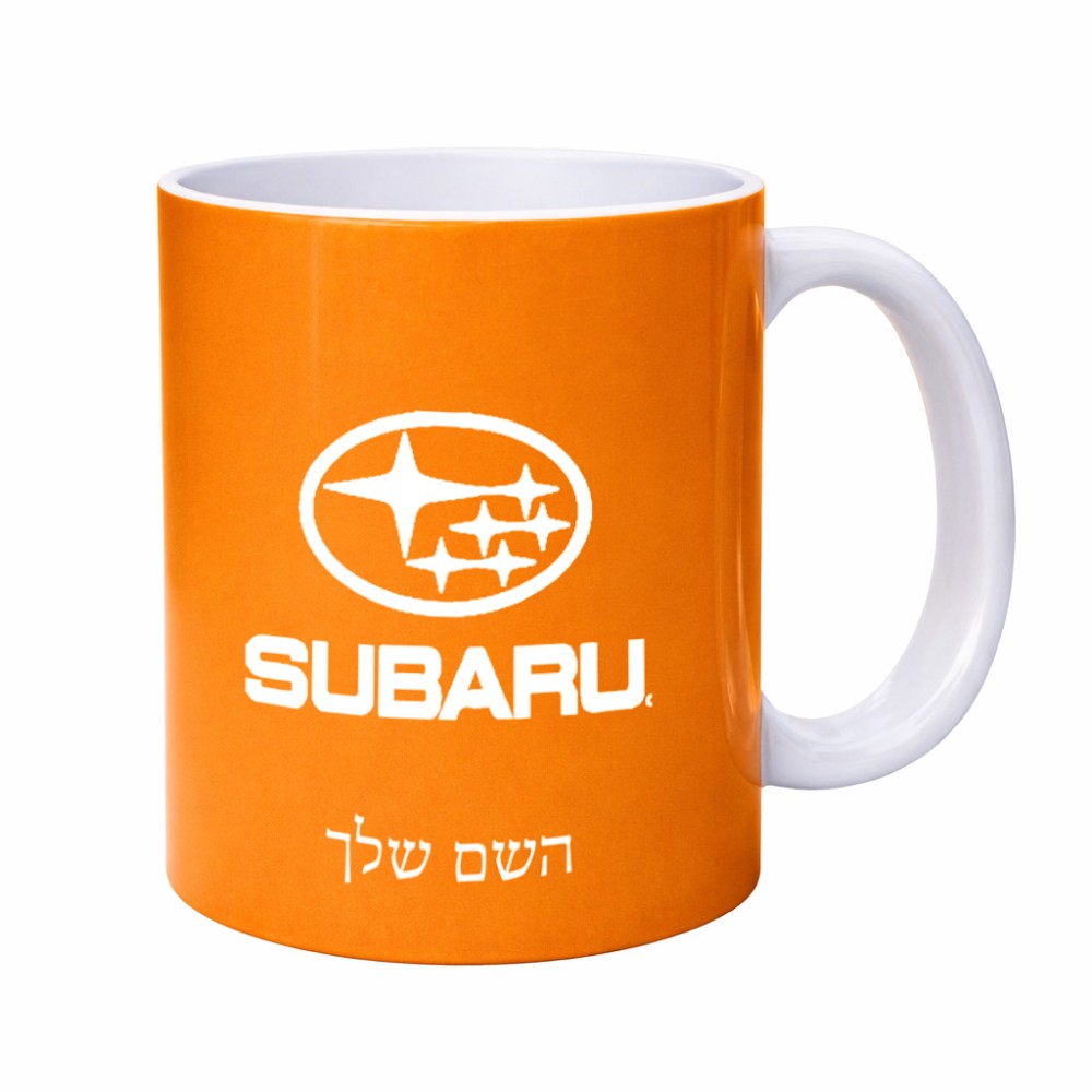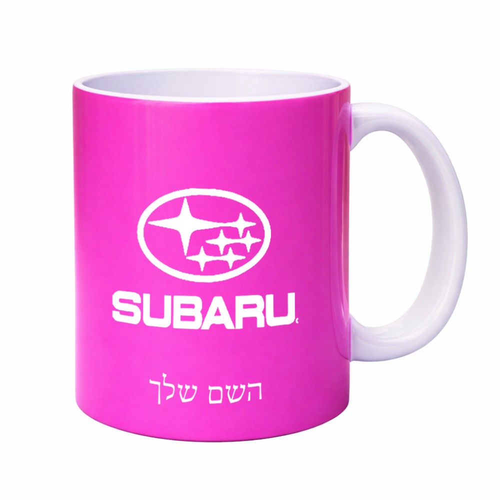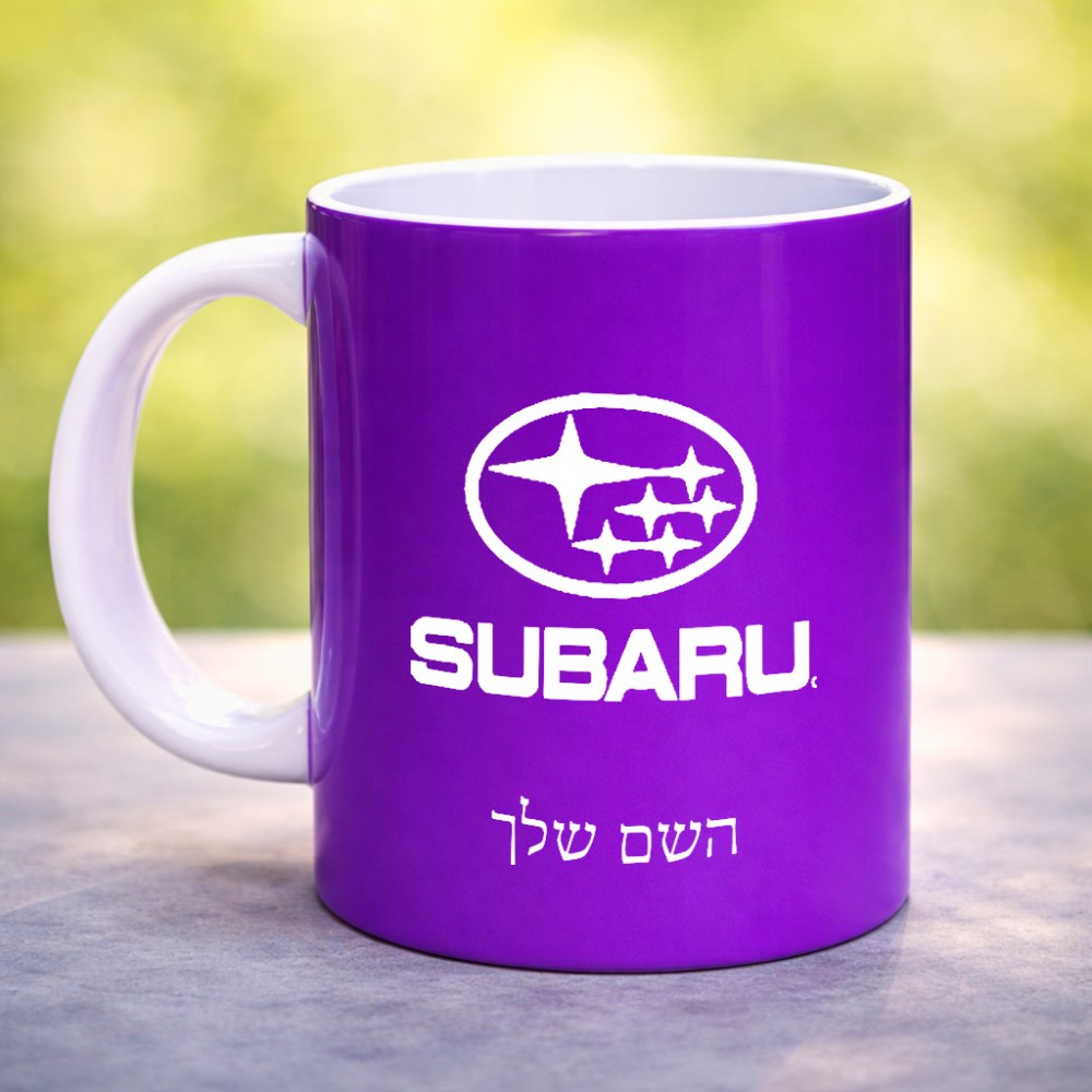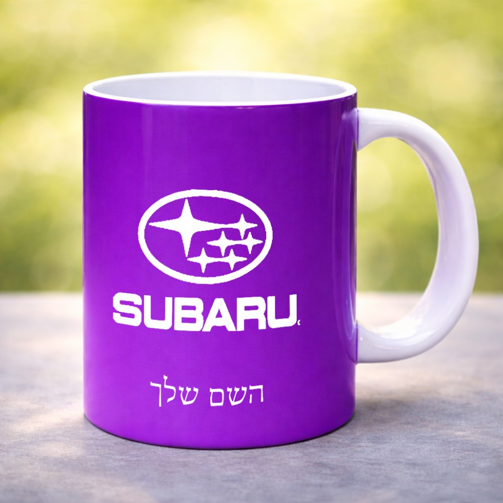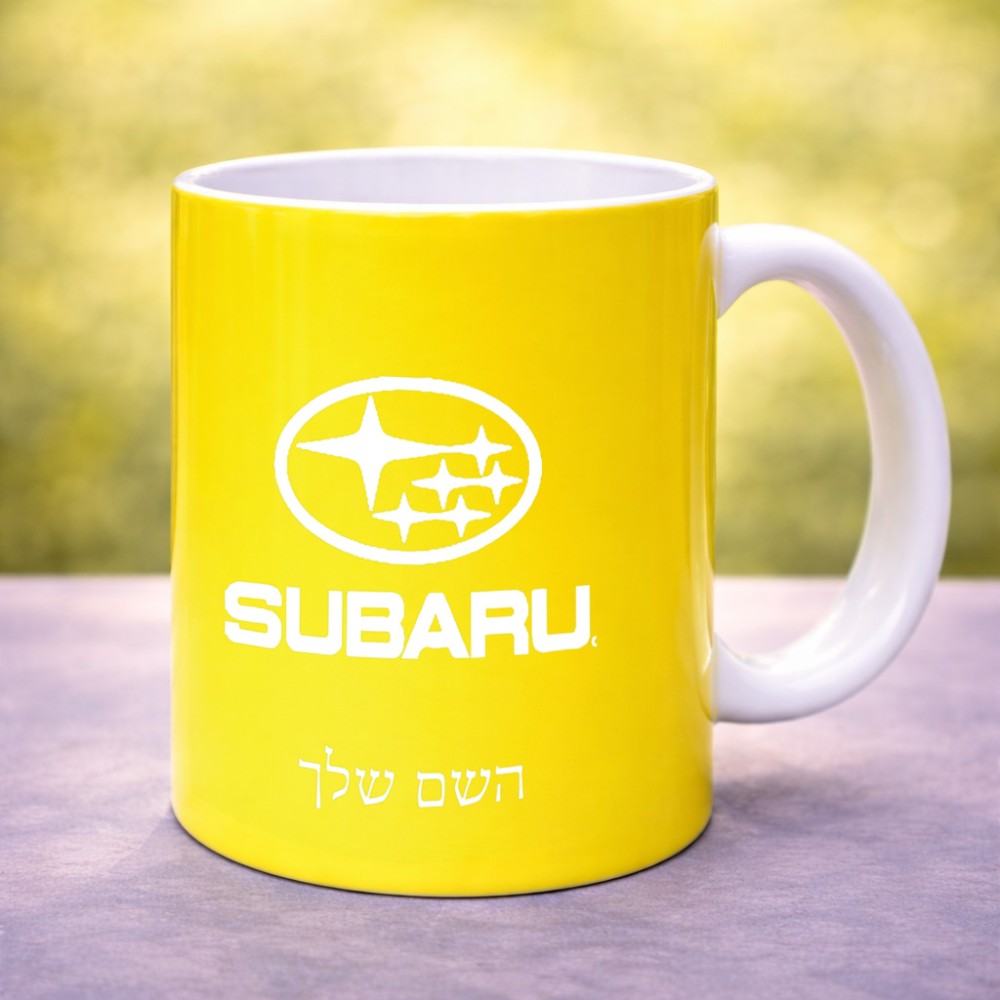 ספל תה \ קפה בעיצוב אישי עם השם שלך בעיצוב סובארו גדול הספל 325 מ"ל, הספל בעלת ידית לאחיזה יציבה. את השם המבוקש ניתן לציין בהזמנה, אם לא צויין אנחנו ניצור קשר לבירור.