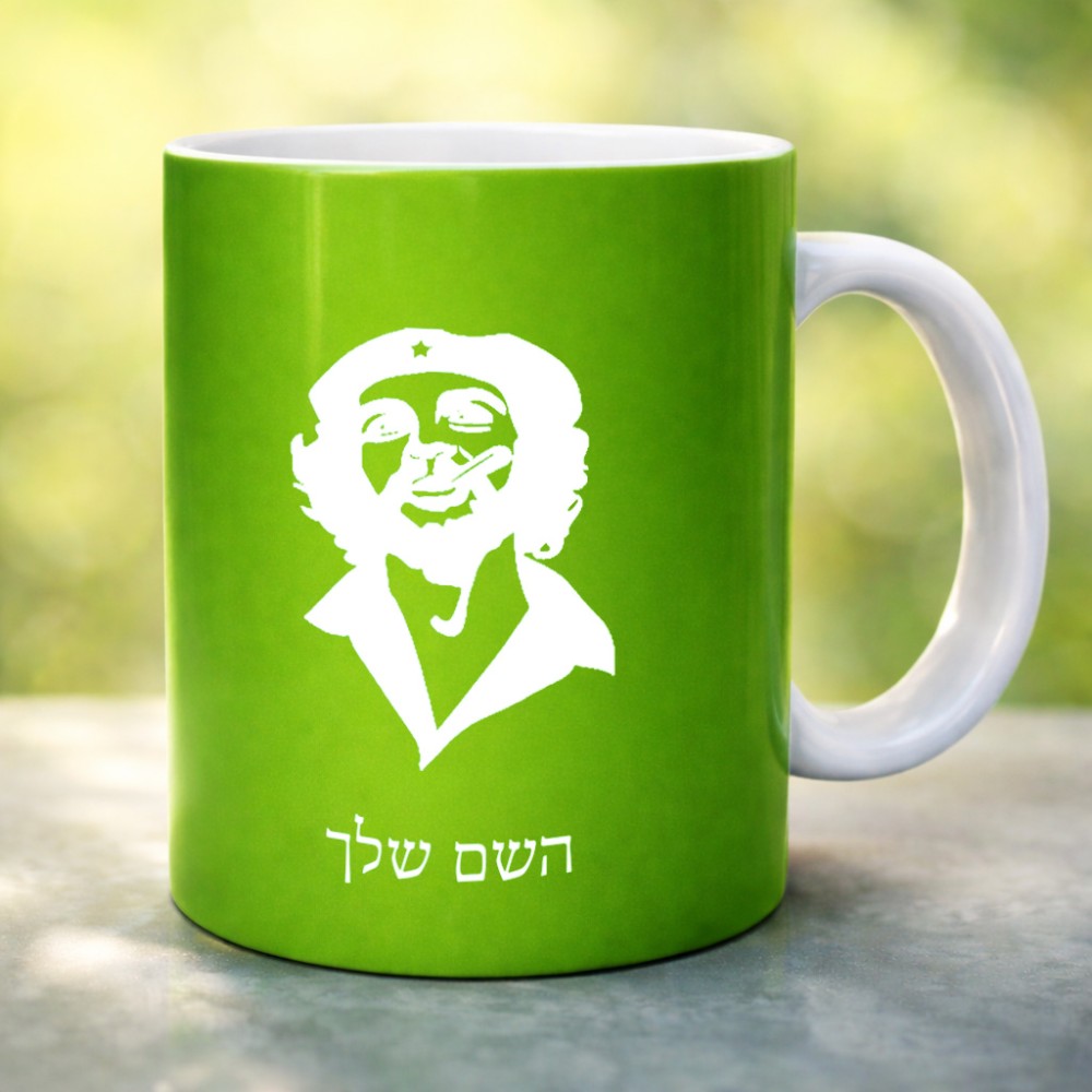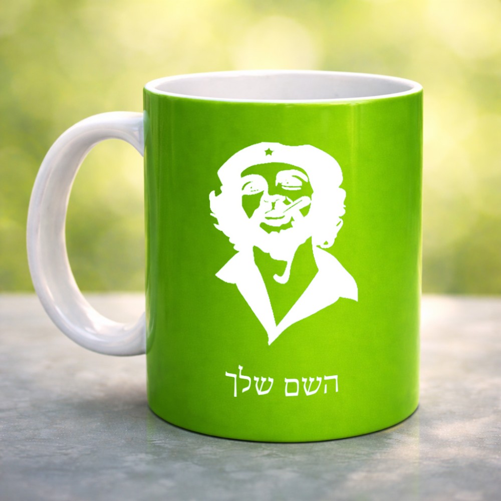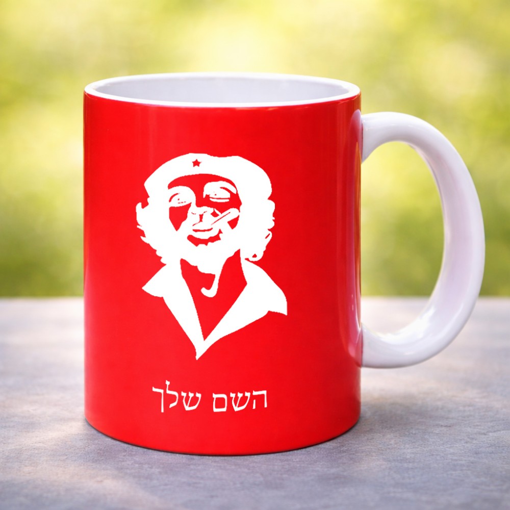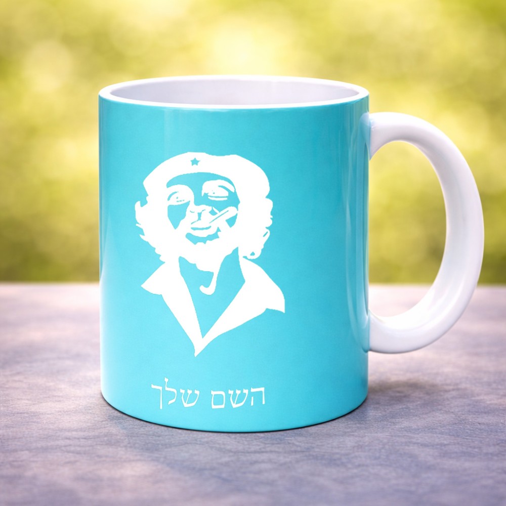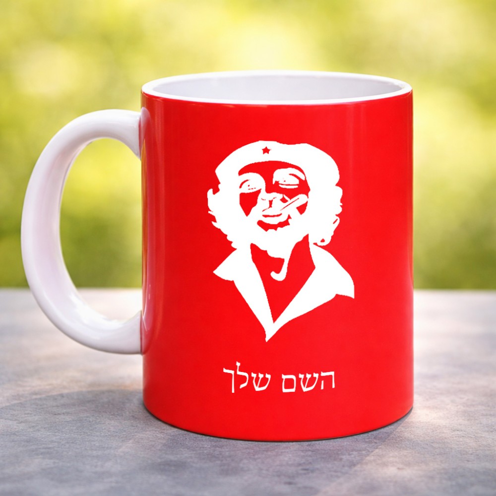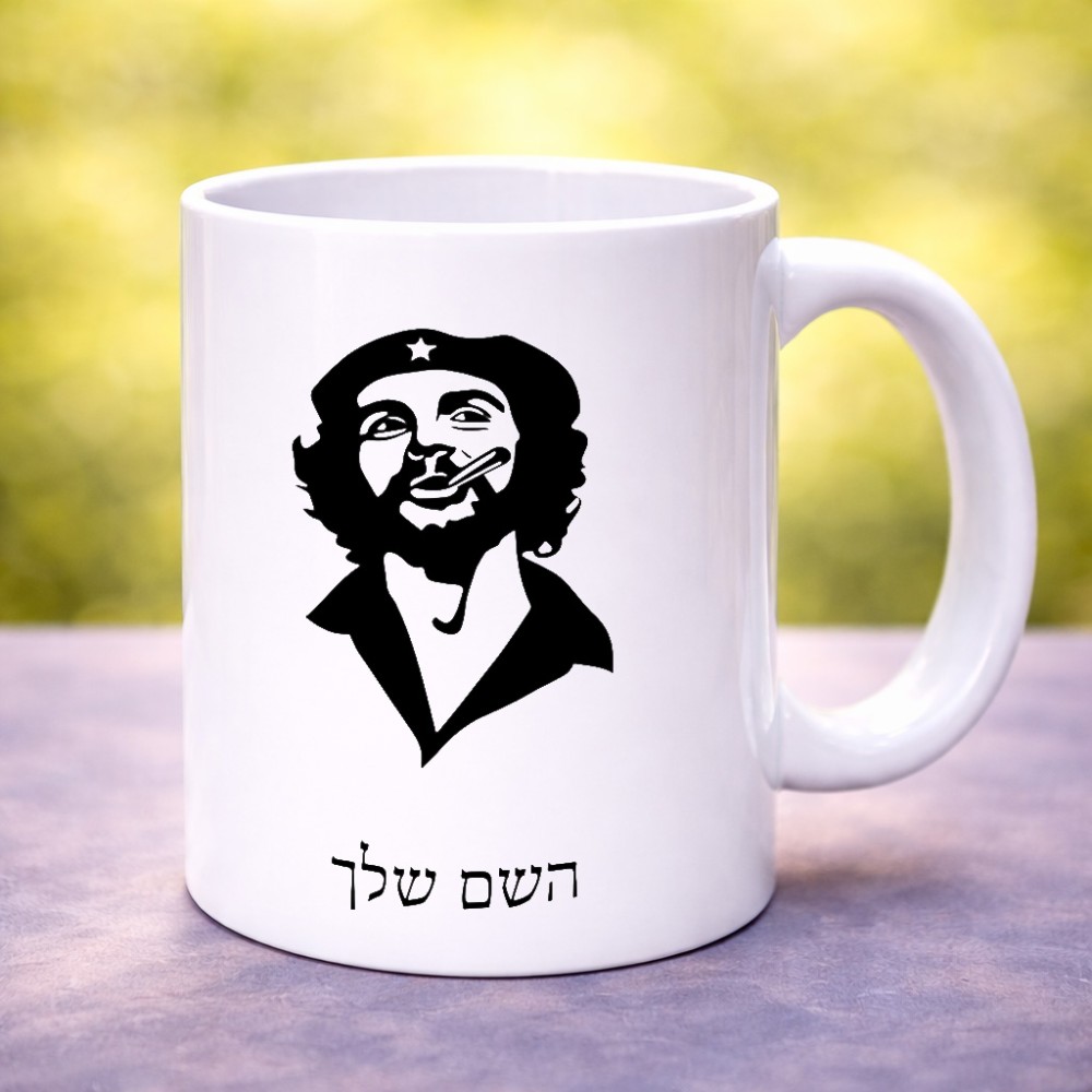 ספל תה \ קפה בעיצוב אישי עם השם שלך בעיצוב צ'ה גווארה גדול הספל 325 מ"ל, הספל בעלת ידית לאחיזה יציבה. את השם המבוקש ניתן לציין בהזמנה, אם לא צויין אנחנו ניצור קשר לבירור.