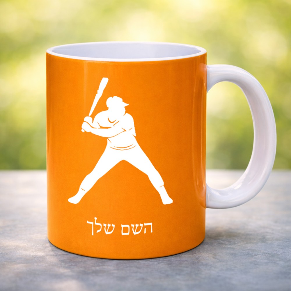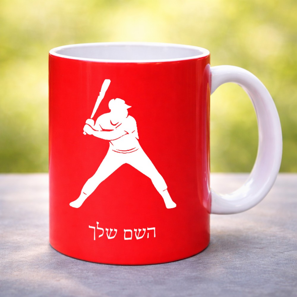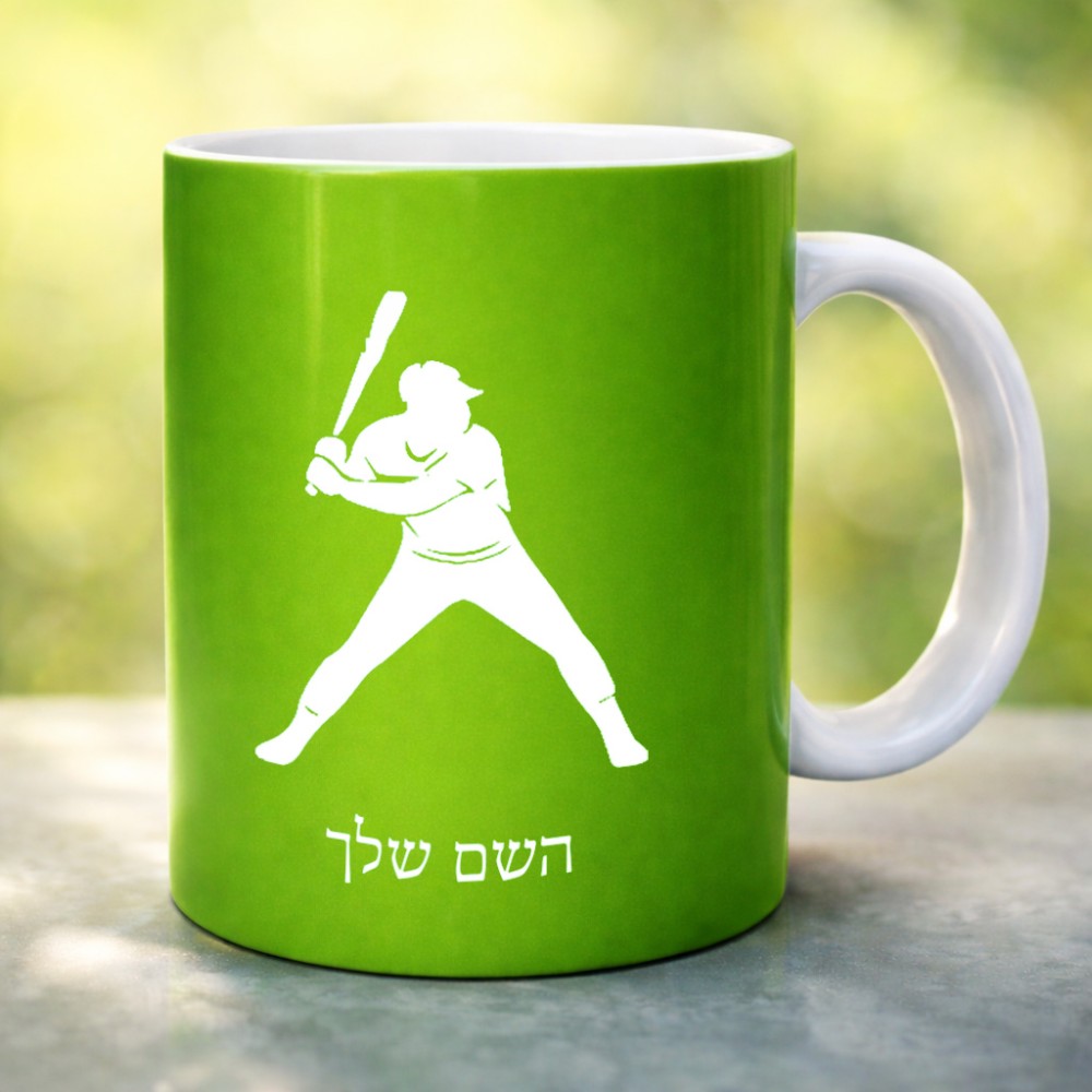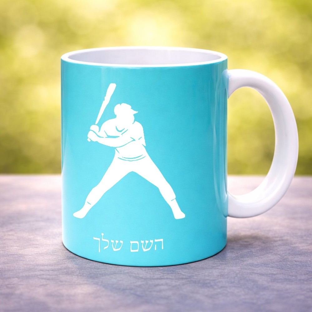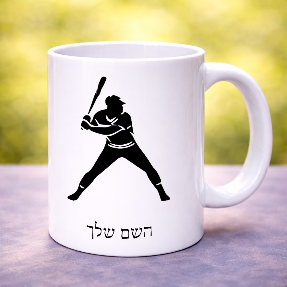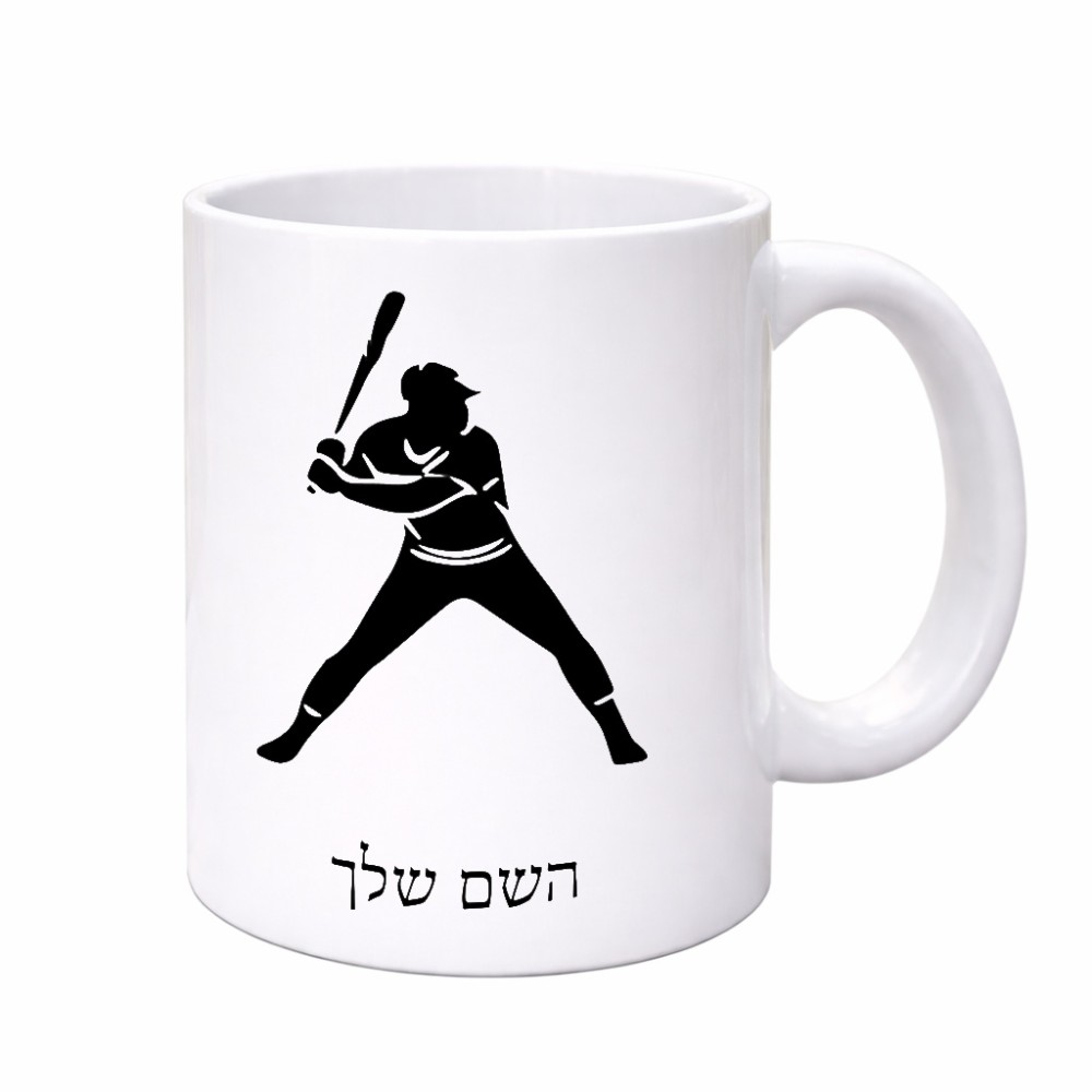 ספל תה \ קפה בעיצוב אישי עם השם שלך בעיצוב שחקן בייסבול גדול הספל 325 מ"ל, הספל בעלת ידית לאחיזה יציבה. את השם המבוקש ניתן לציין בהזמנה, אם לא צויין אנחנו ניצור קשר לבירור.