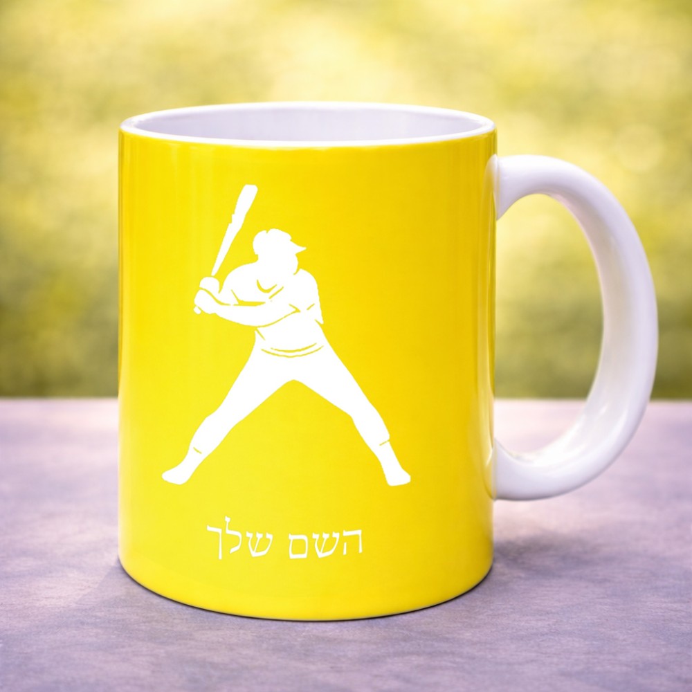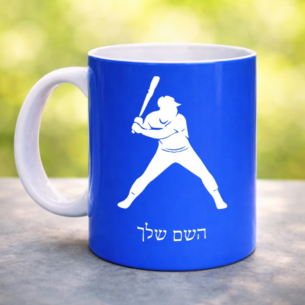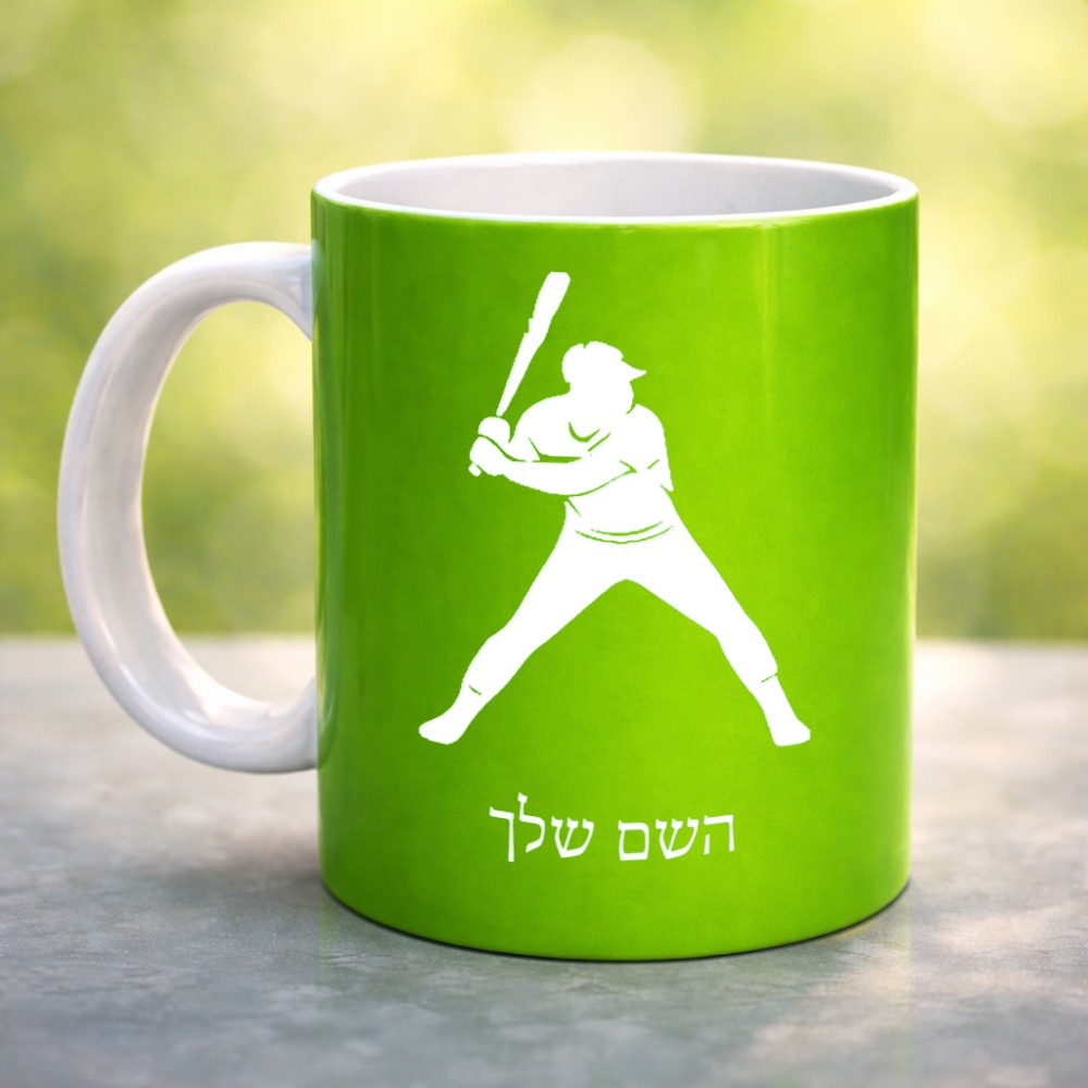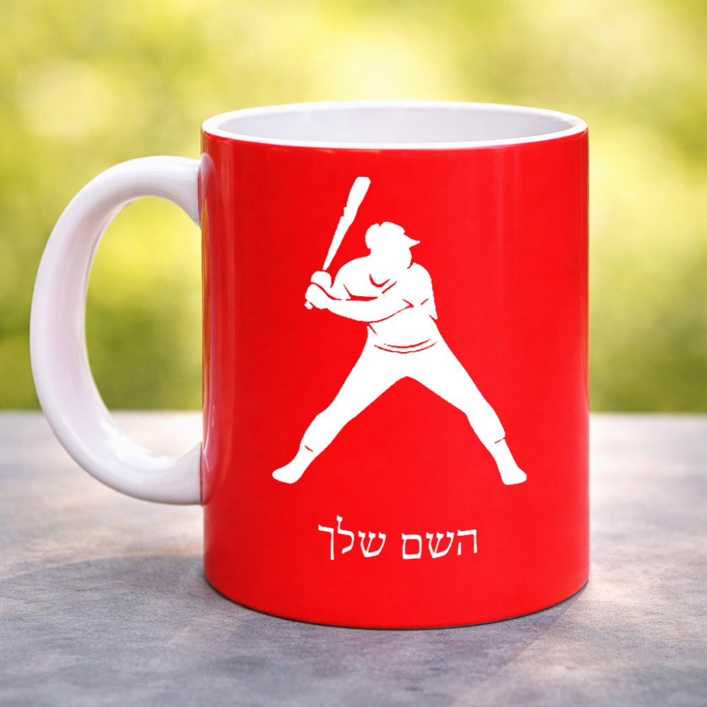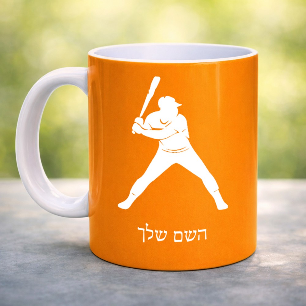ספל תה \ קפה בעיצוב אישי עם השם שלך בעיצוב שחקן בייסבול גדול הספל 325 מ"ל, הספל בעלת ידית לאחיזה יציבה. את השם המבוקש ניתן לציין בהזמנה, אם לא צויין אנחנו ניצור קשר לבירור.