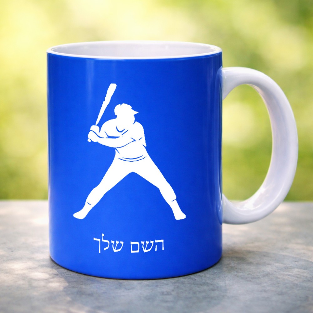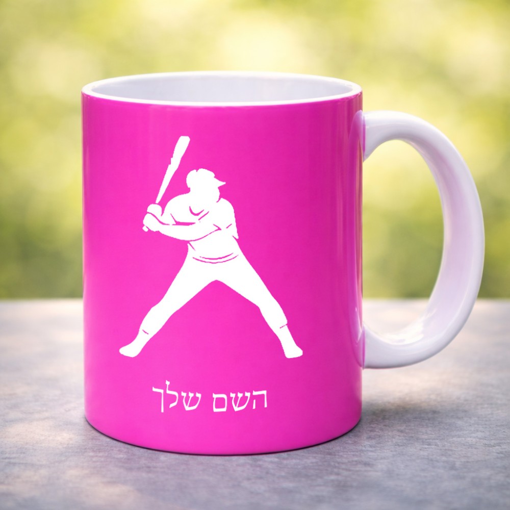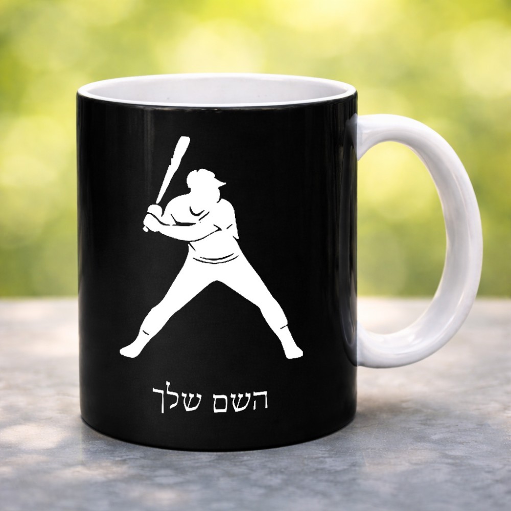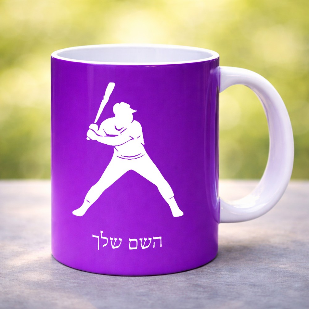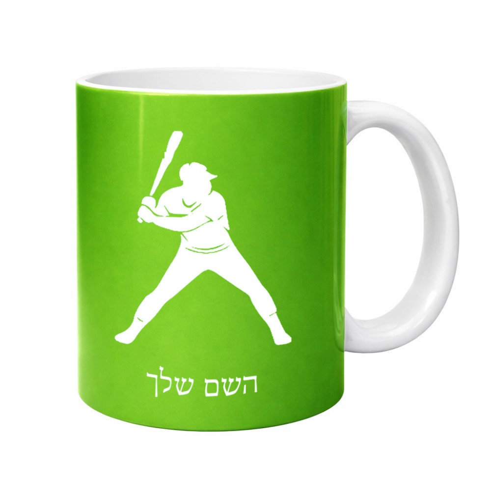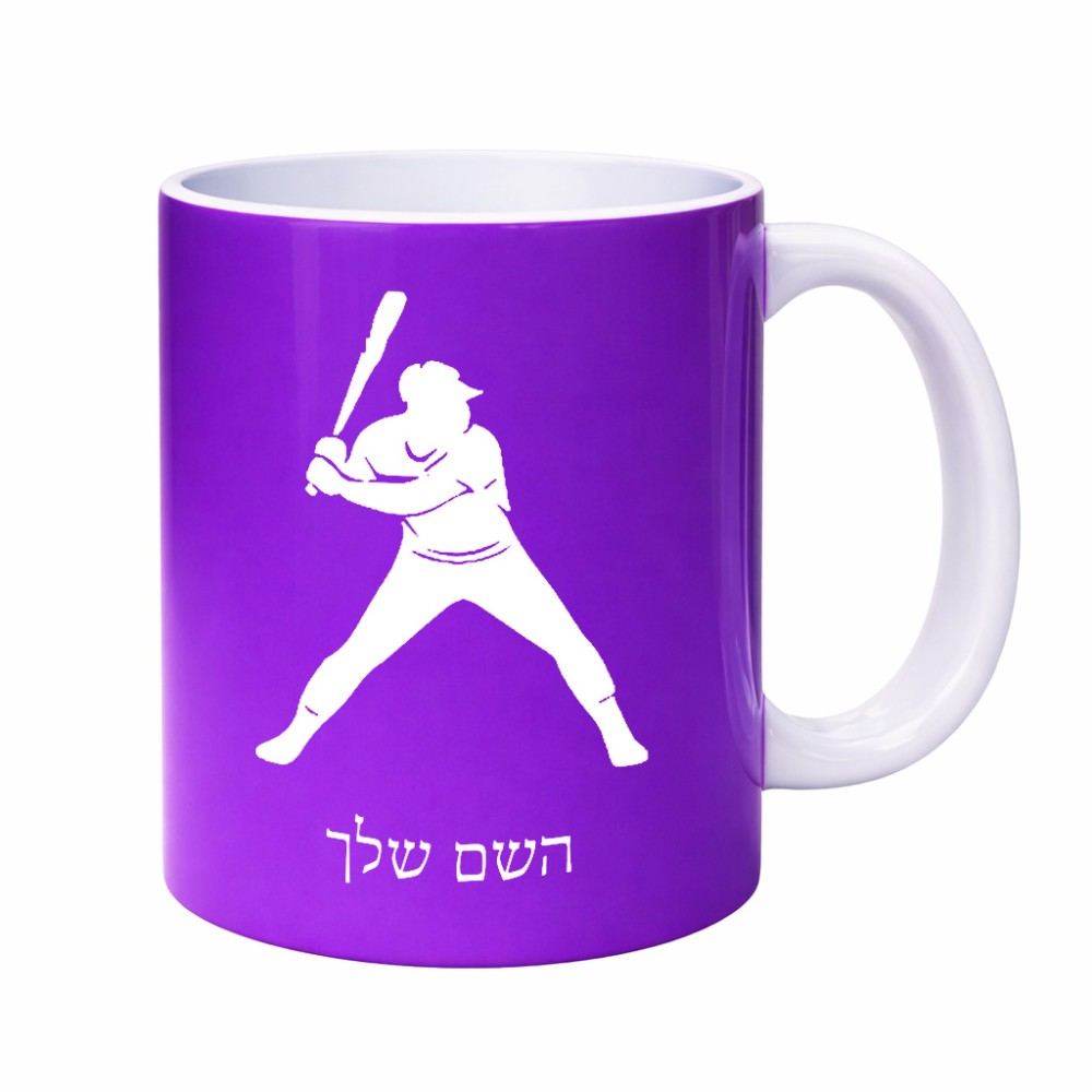 ספל תה \ קפה בעיצוב אישי עם השם שלך בעיצוב שחקן בייסבול גדול הספל 325 מ"ל, הספל בעלת ידית לאחיזה יציבה. את השם המבוקש ניתן לציין בהזמנה, אם לא צויין אנחנו ניצור קשר לבירור.