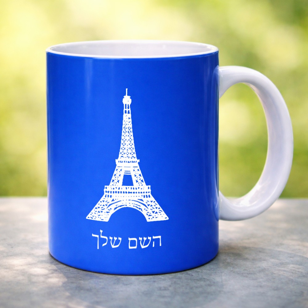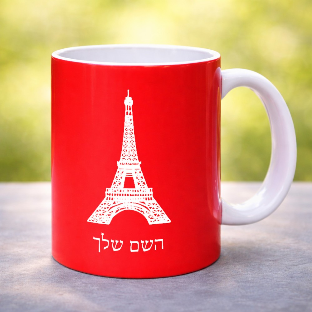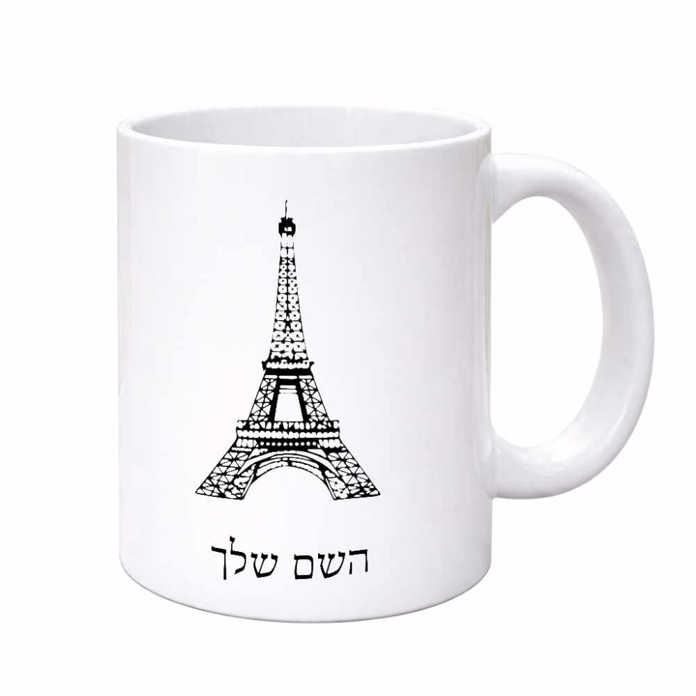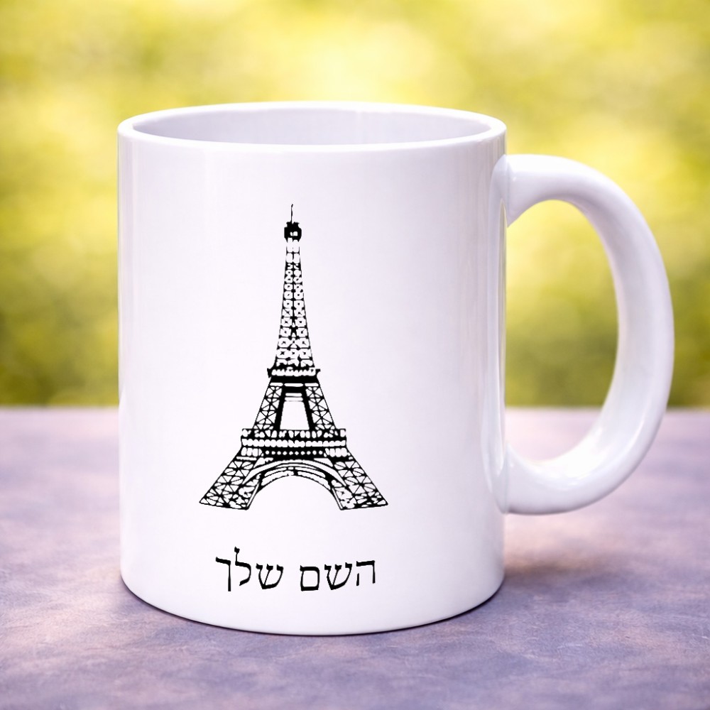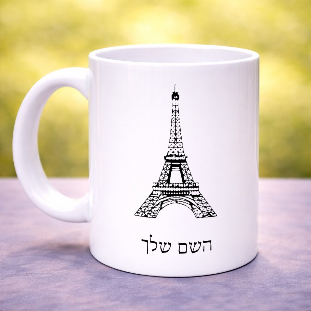 ספל תה \ קפה בעיצוב אישי עם השם שלך בעיצוב מגדל אייפל גדול הספל 325 מ"ל, הספל בעלת ידית לאחיזה יציבה. את השם המבוקש ניתן לציין בהזמנה, אם לא צויין אנחנו ניצור קשר לבירור.