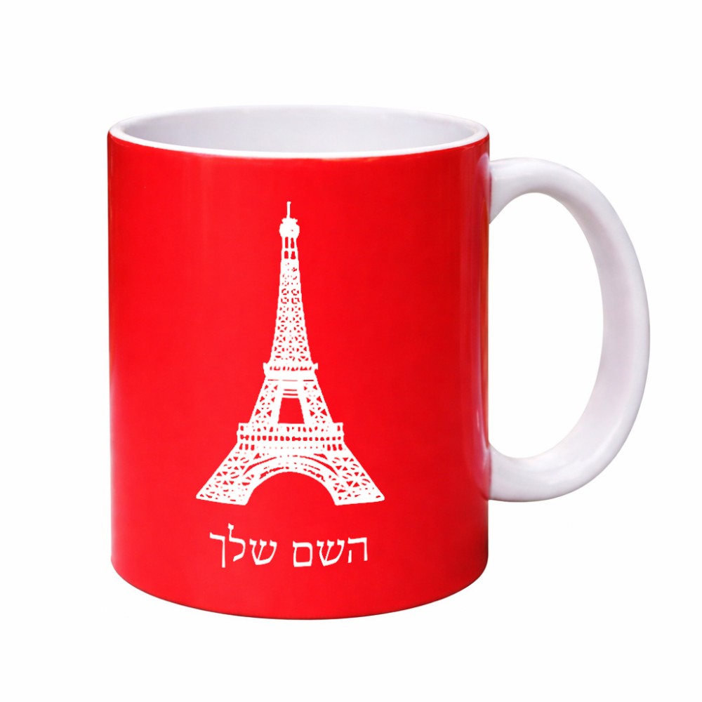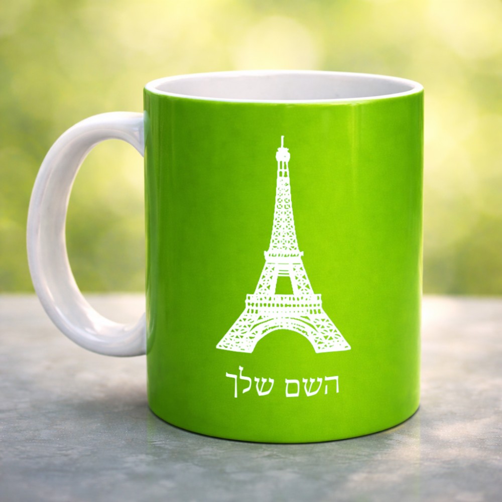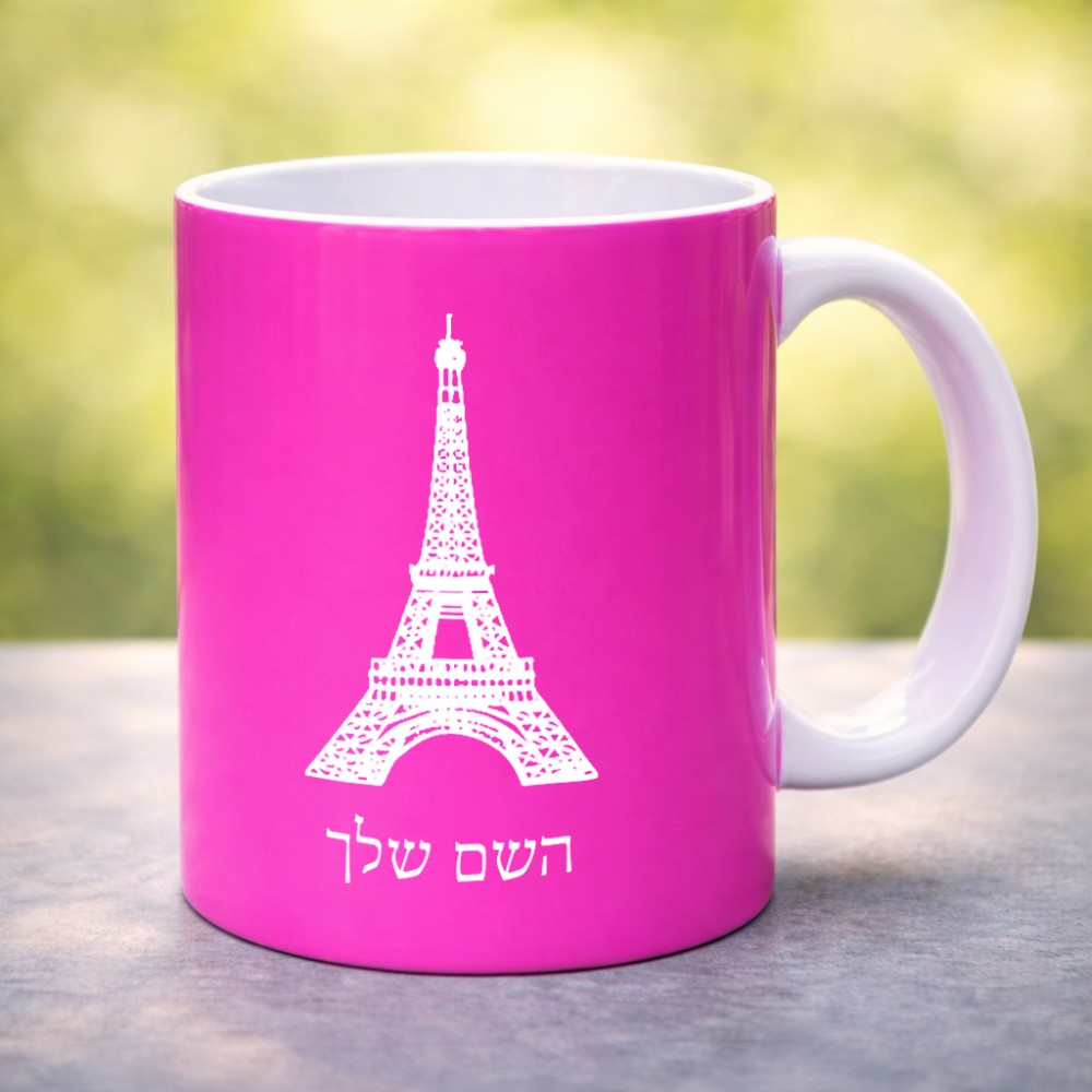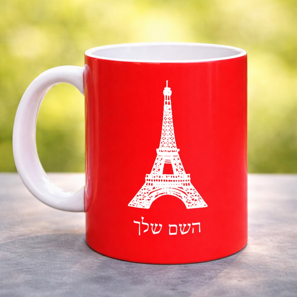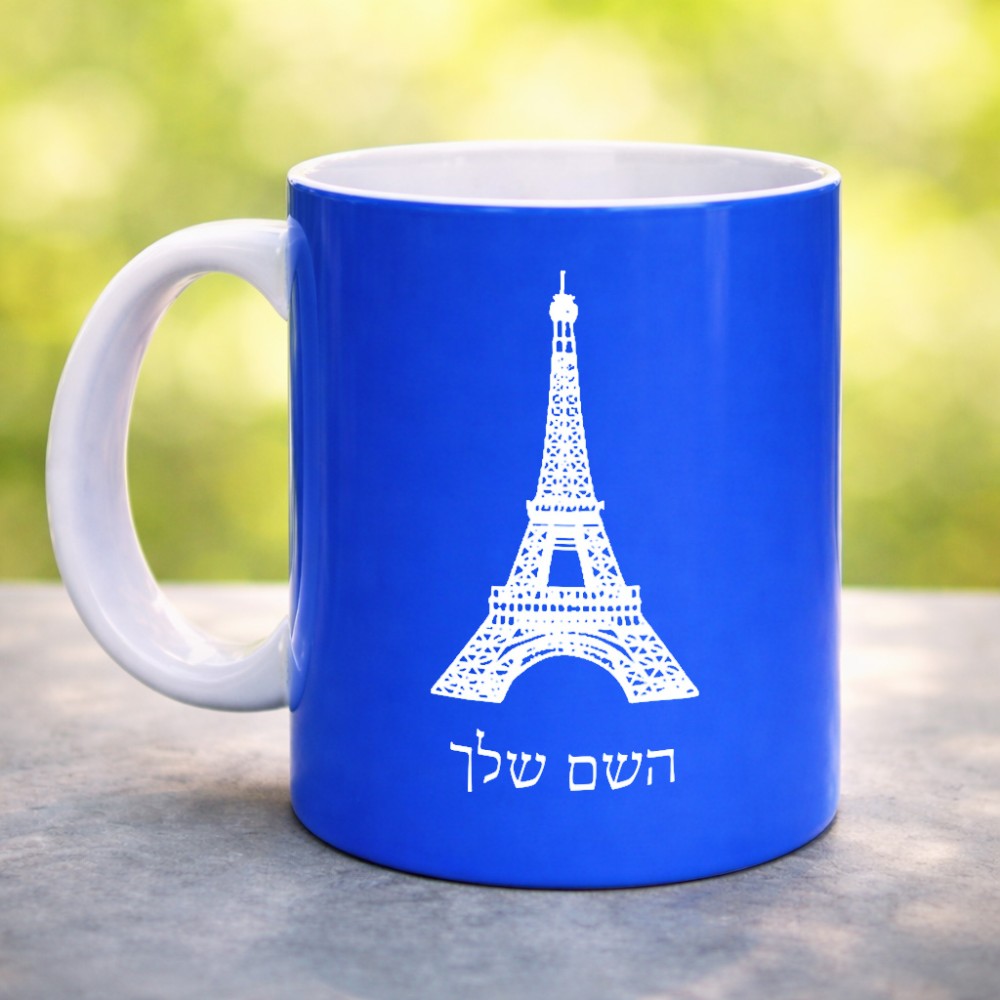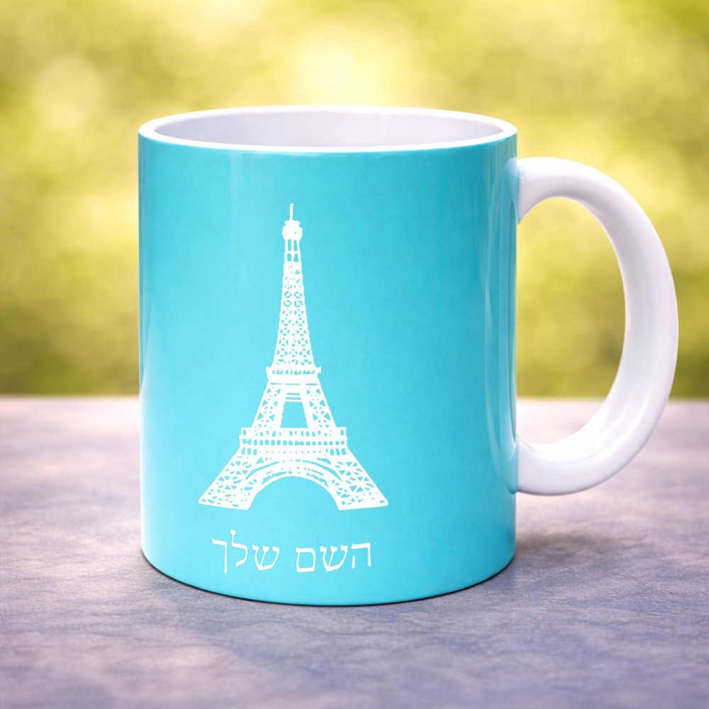 ספל תה \ קפה בעיצוב אישי עם השם שלך בעיצוב מגדל אייפל גדול הספל 325 מ"ל, הספל בעלת ידית לאחיזה יציבה. את השם המבוקש ניתן לציין בהזמנה, אם לא צויין אנחנו ניצור קשר לבירור.
