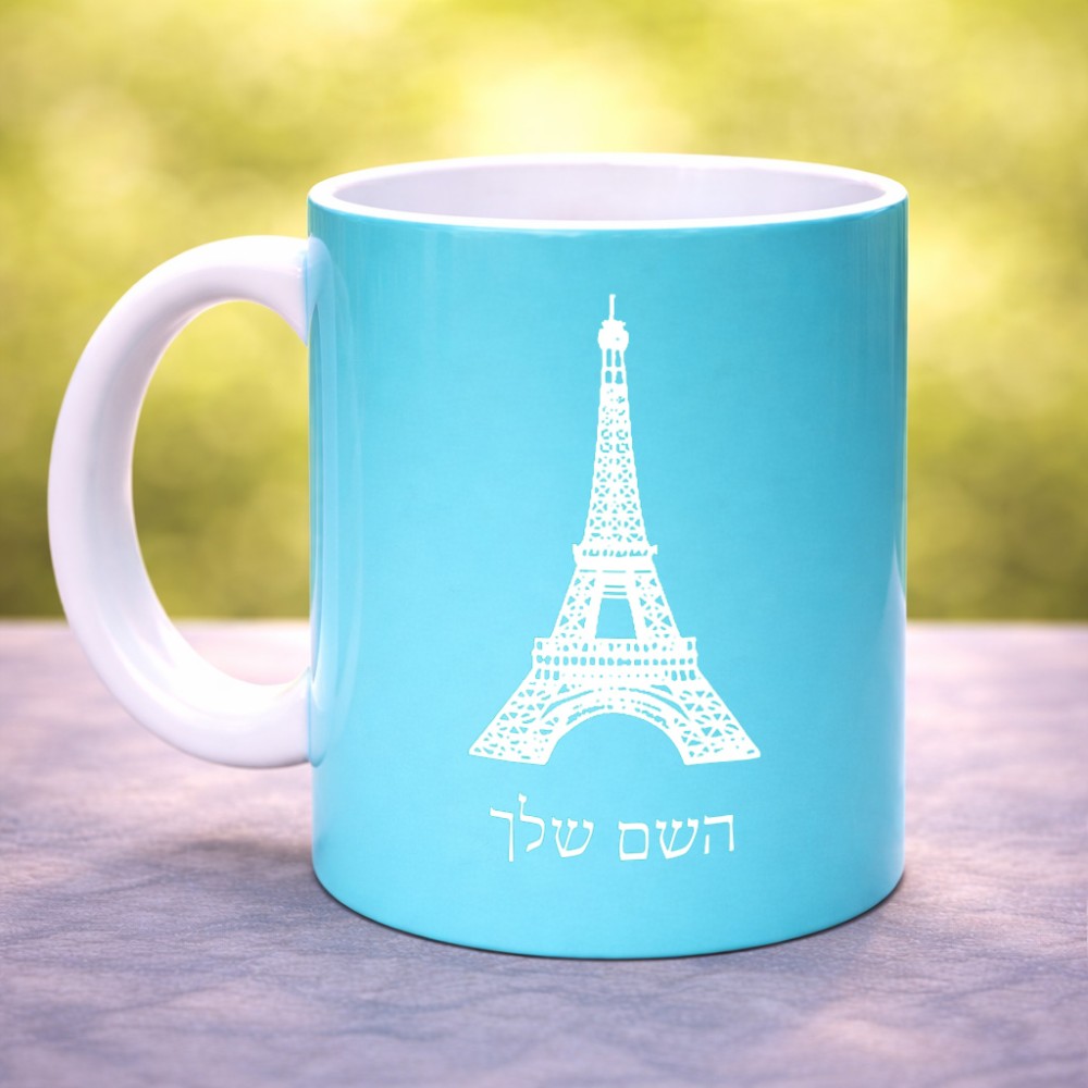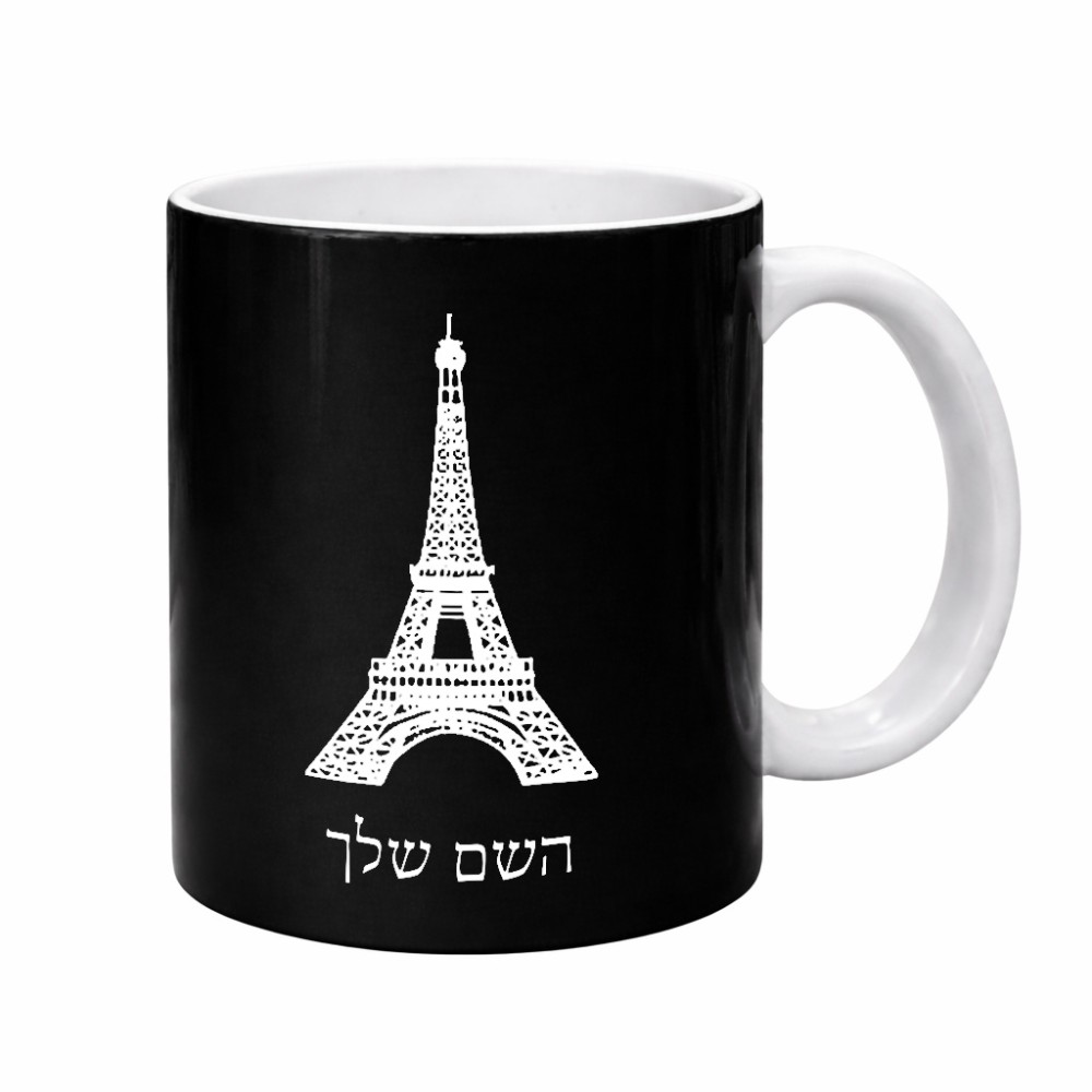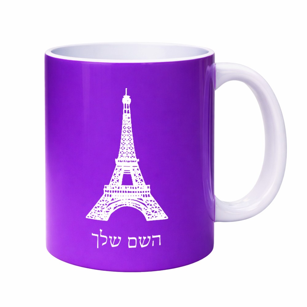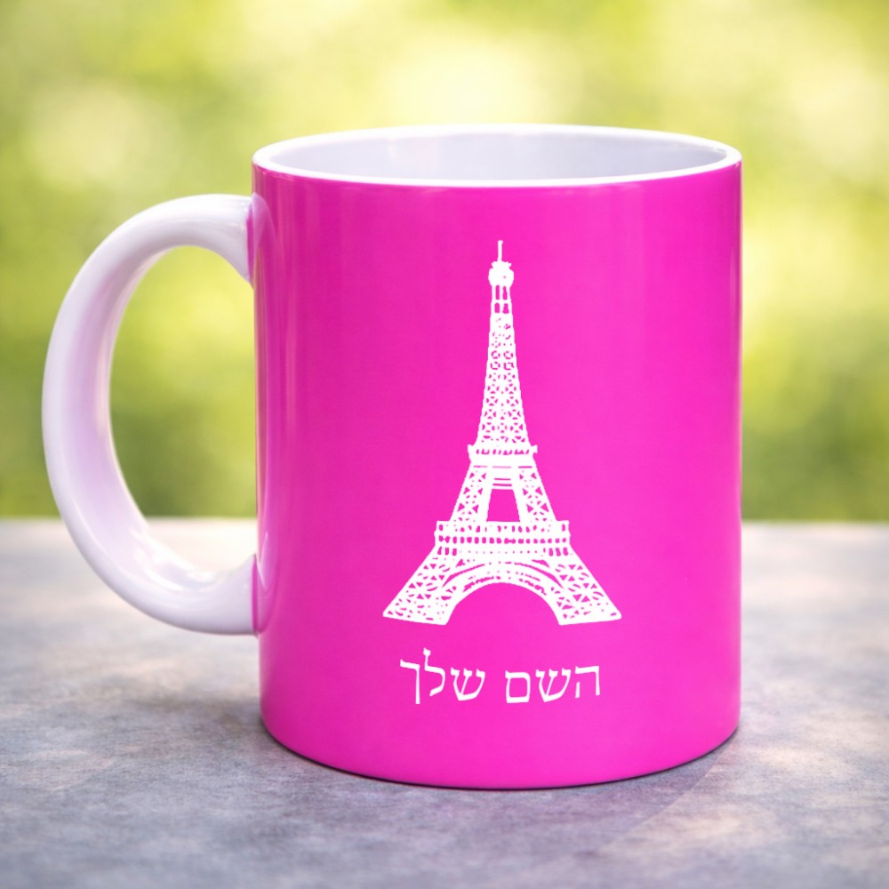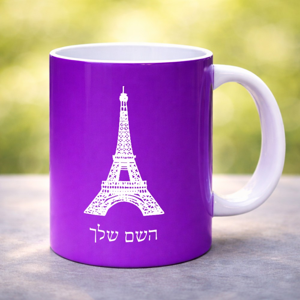 ספל תה \ קפה בעיצוב אישי עם השם שלך בעיצוב מגדל אייפל גדול הספל 325 מ"ל, הספל בעלת ידית לאחיזה יציבה. את השם המבוקש ניתן לציין בהזמנה, אם לא צויין אנחנו ניצור קשר לבירור.
