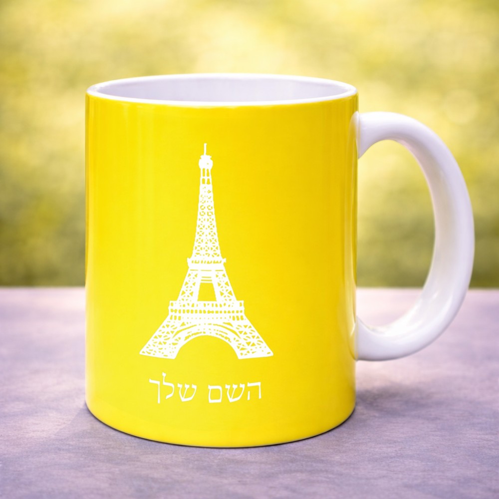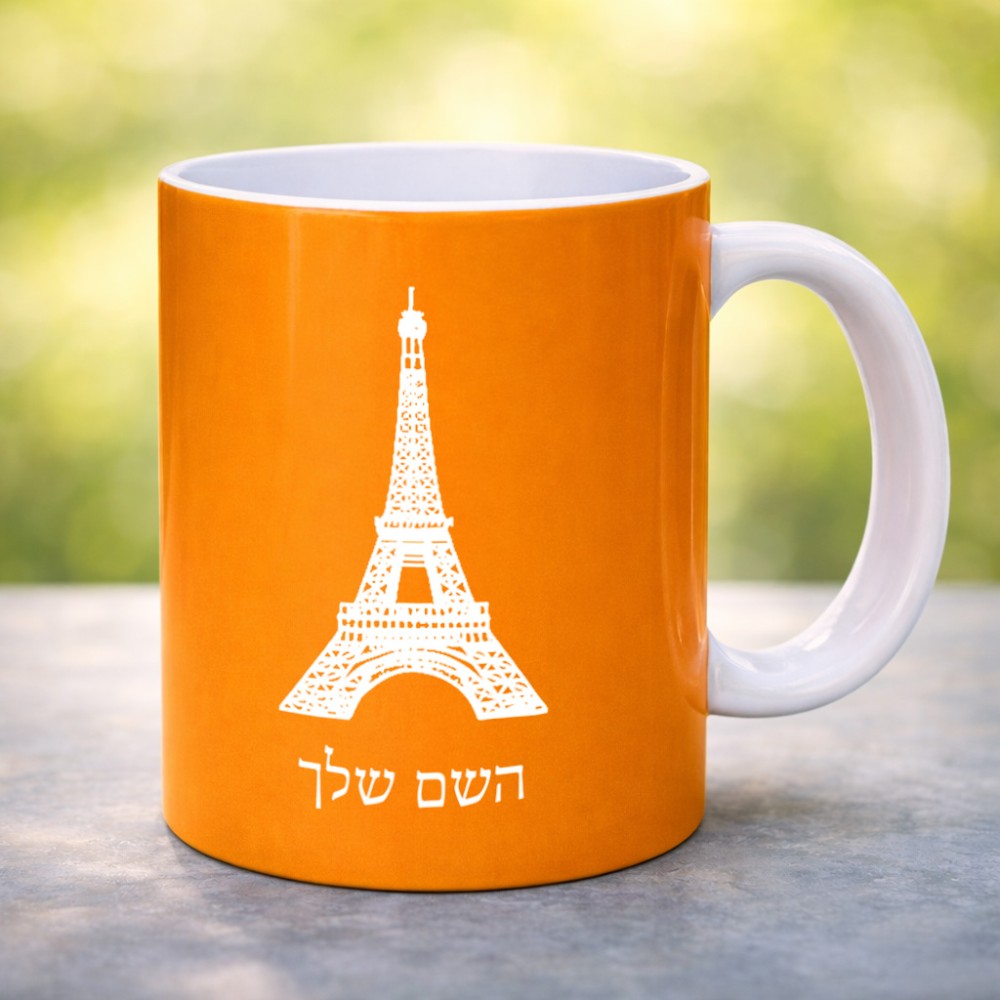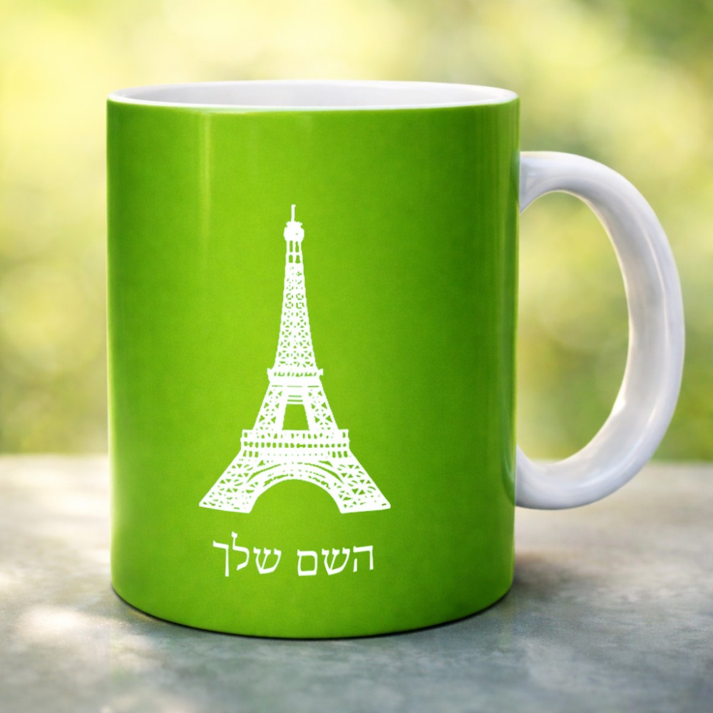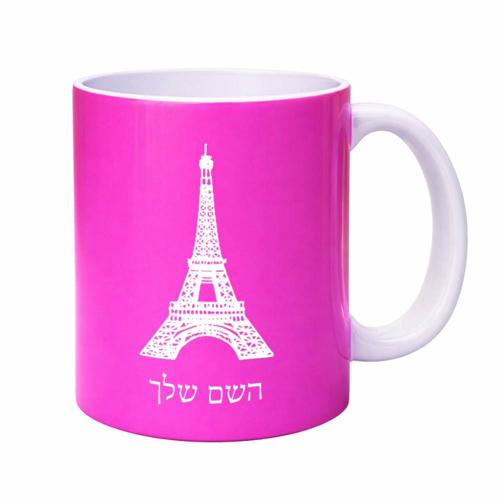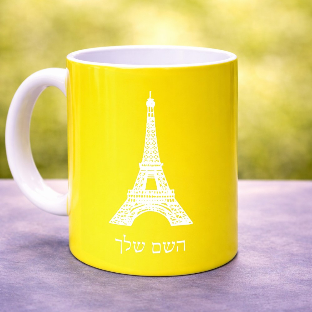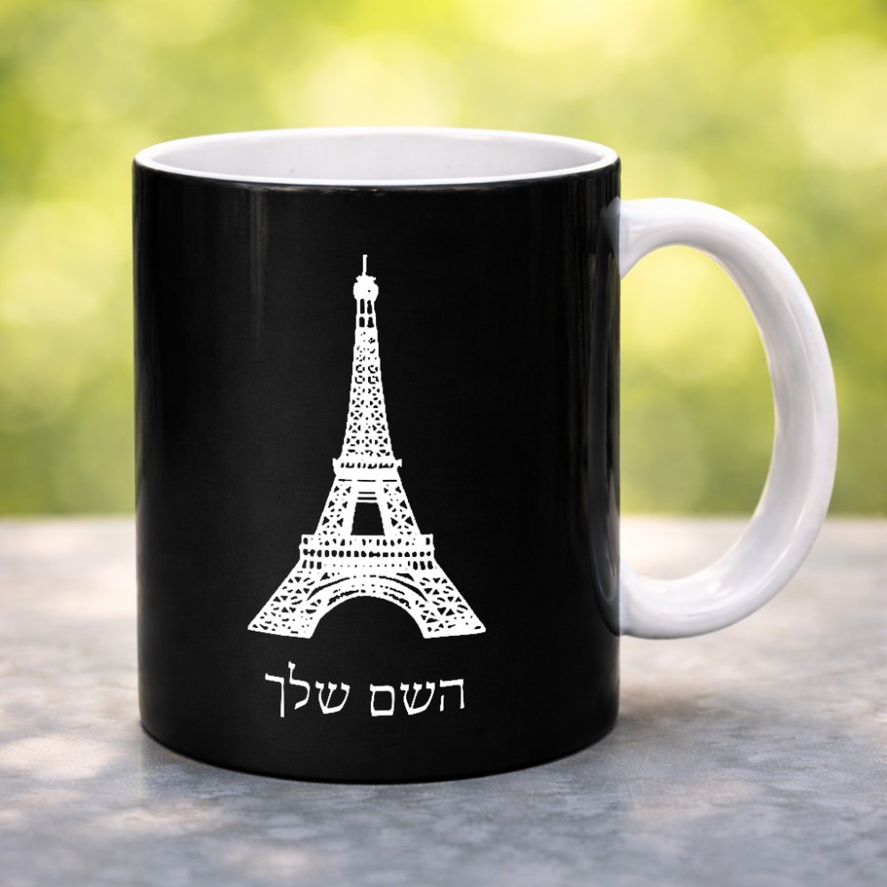 ספל תה \ קפה בעיצוב אישי עם השם שלך בעיצוב מגדל אייפל גדול הספל 325 מ"ל, הספל בעלת ידית לאחיזה יציבה. את השם המבוקש ניתן לציין בהזמנה, אם לא צויין אנחנו ניצור קשר לבירור.