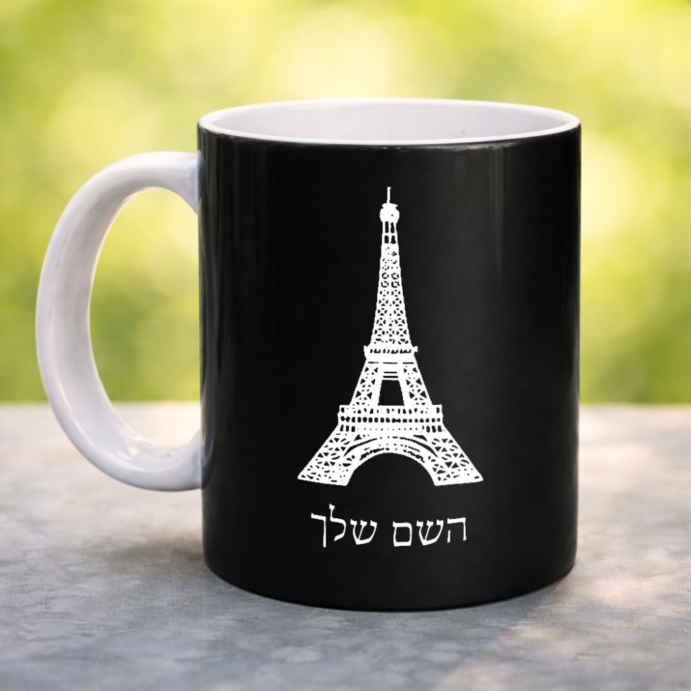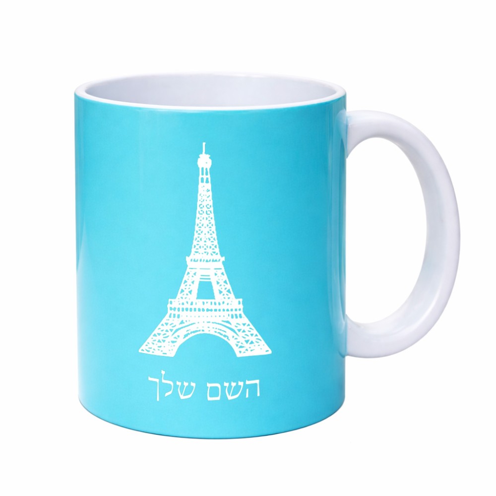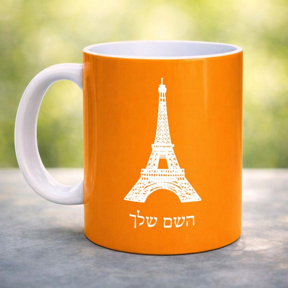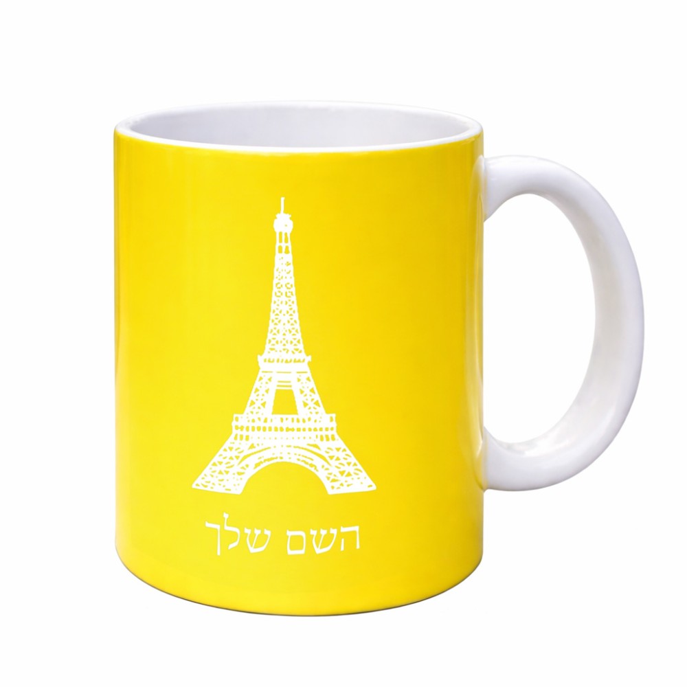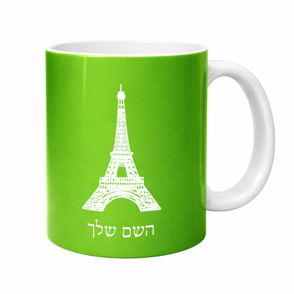 ספל תה \ קפה בעיצוב אישי עם השם שלך בעיצוב מגדל אייפל גדול הספל 325 מ"ל, הספל בעלת ידית לאחיזה יציבה. את השם המבוקש ניתן לציין בהזמנה, אם לא צויין אנחנו ניצור קשר לבירור.