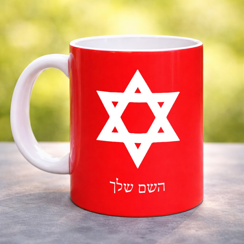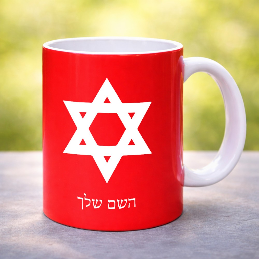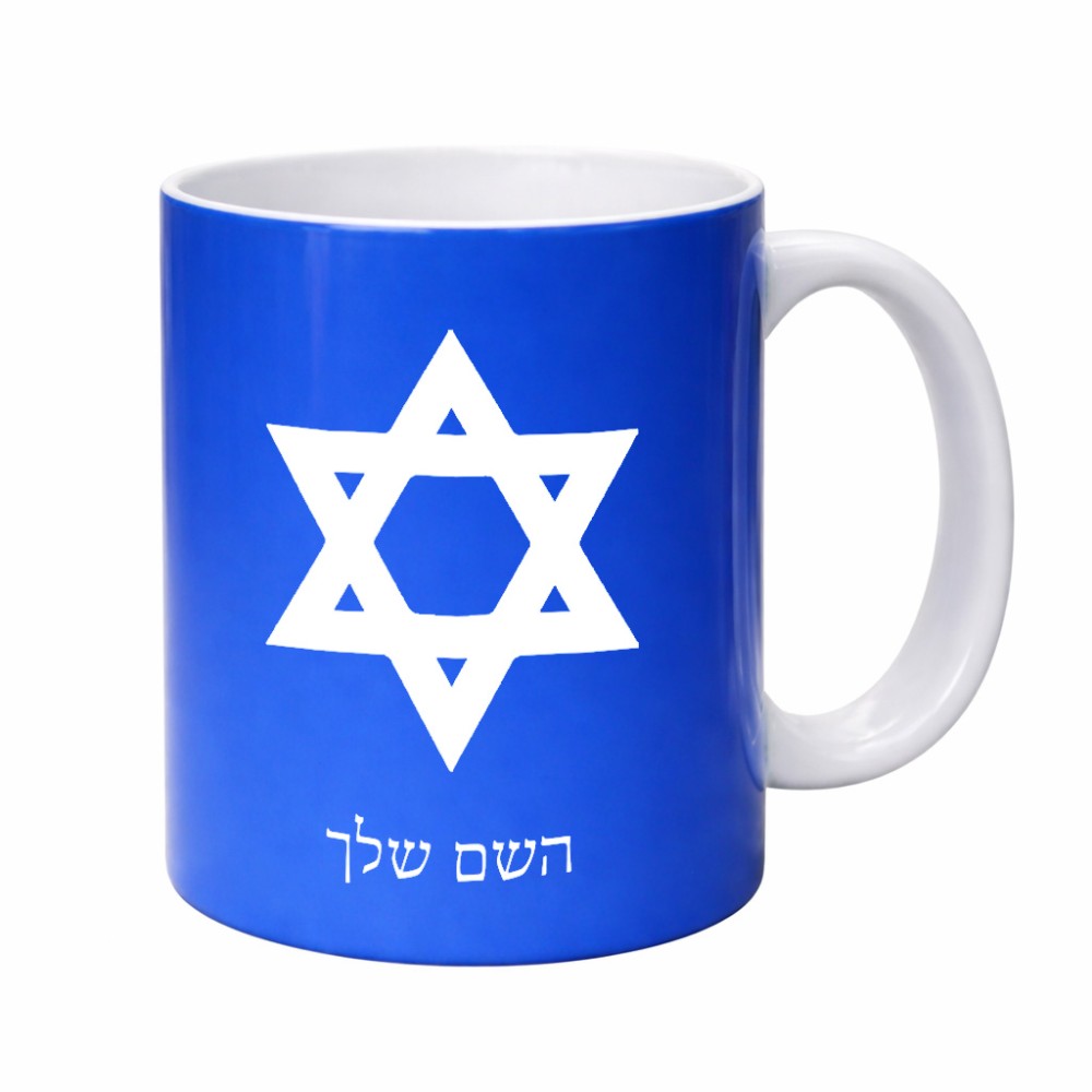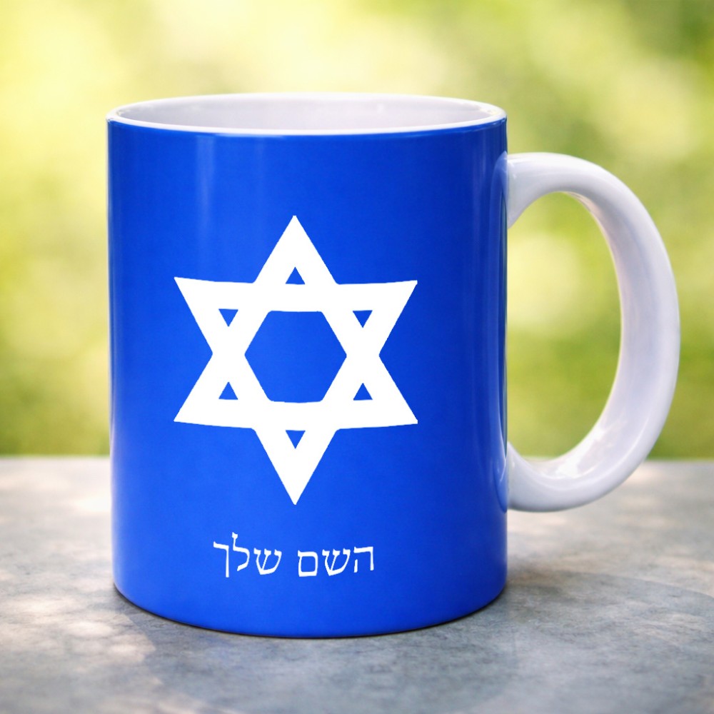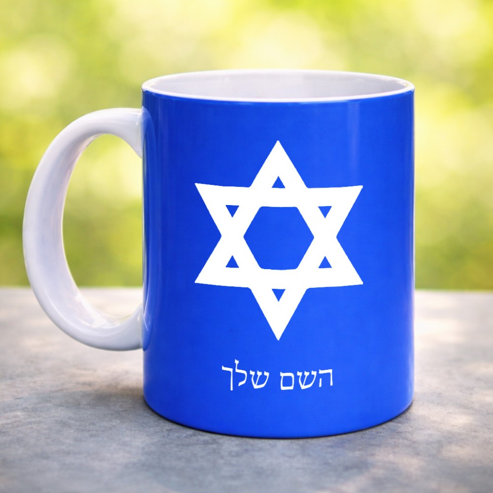 ספל תה \ קפה בעיצוב אישי עם השם שלך בעיצוב מגן דוד - מגן דוד - ישראל גדול הספל 325 מ"ל, הספל בעלת ידית לאחיזה יציבה. את השם המבוקש ניתן לציין בהזמנה, אם לא צויין אנחנו ניצור קשר לבירור.