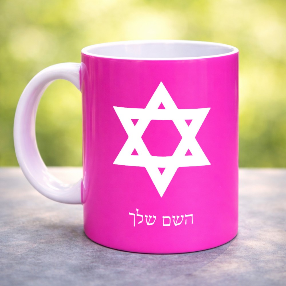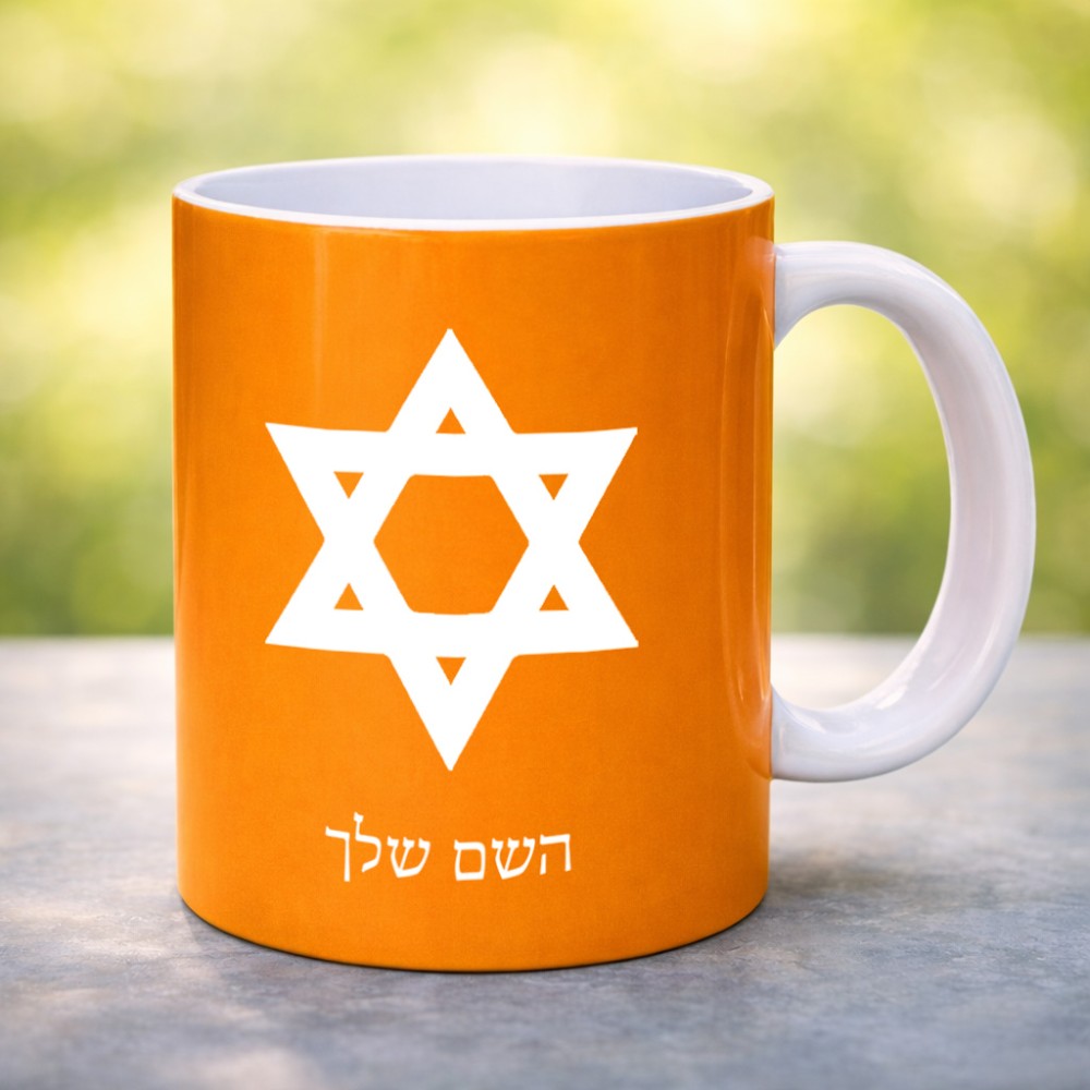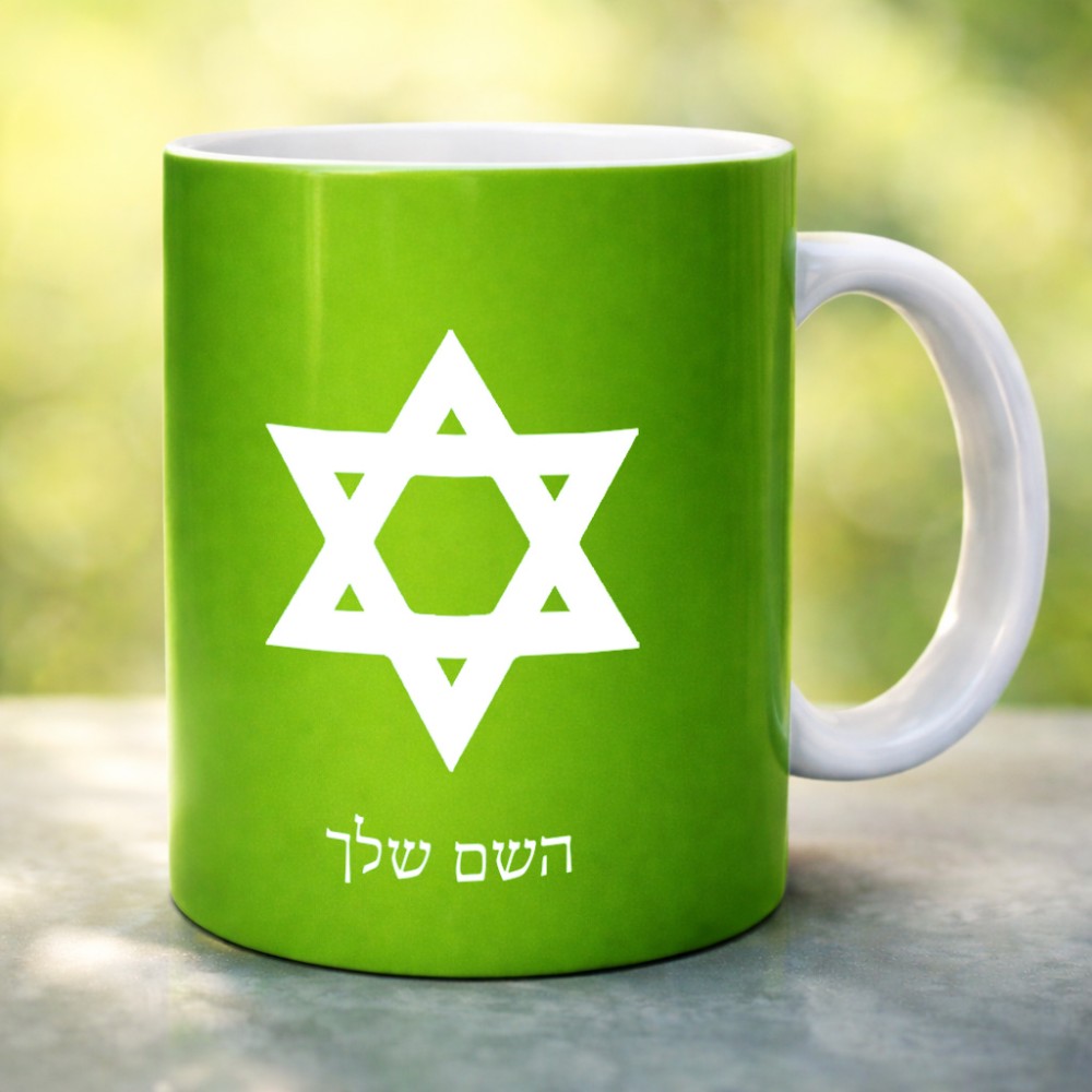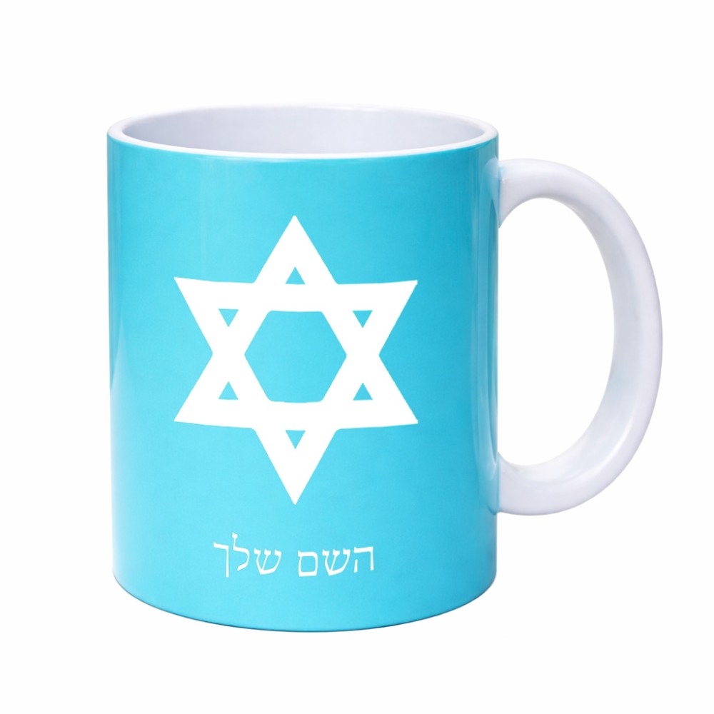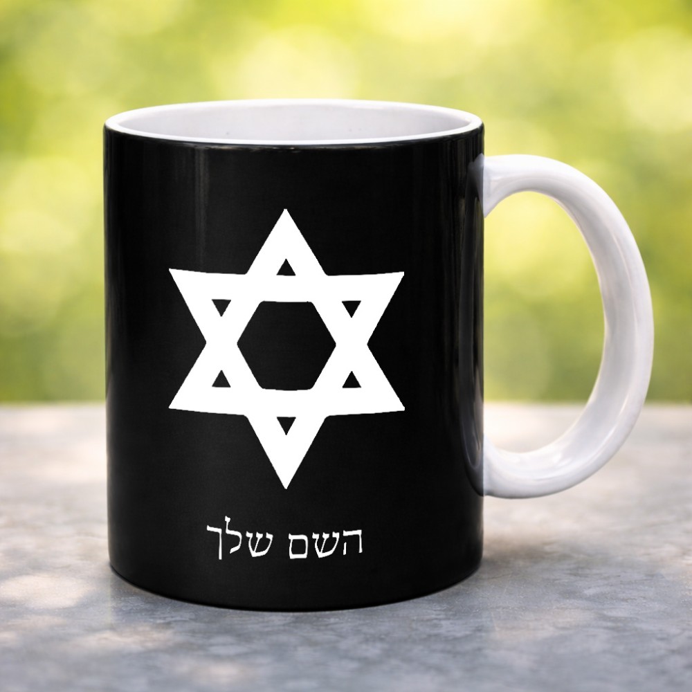 ספל תה \ קפה בעיצוב אישי עם השם שלך בעיצוב מגן דוד - מגן דוד - ישראל גדול הספל 325 מ"ל, הספל בעלת ידית לאחיזה יציבה. את השם המבוקש ניתן לציין בהזמנה, אם לא צויין אנחנו ניצור קשר לבירור.