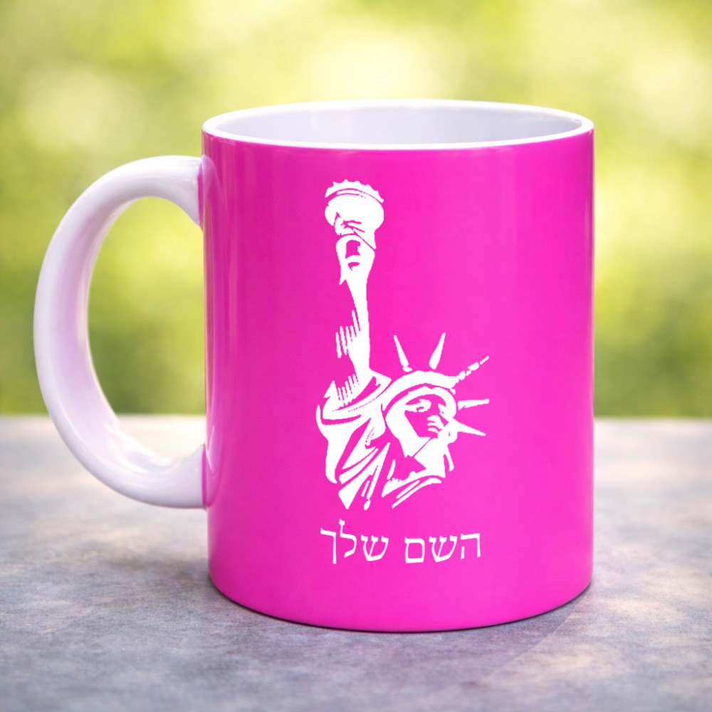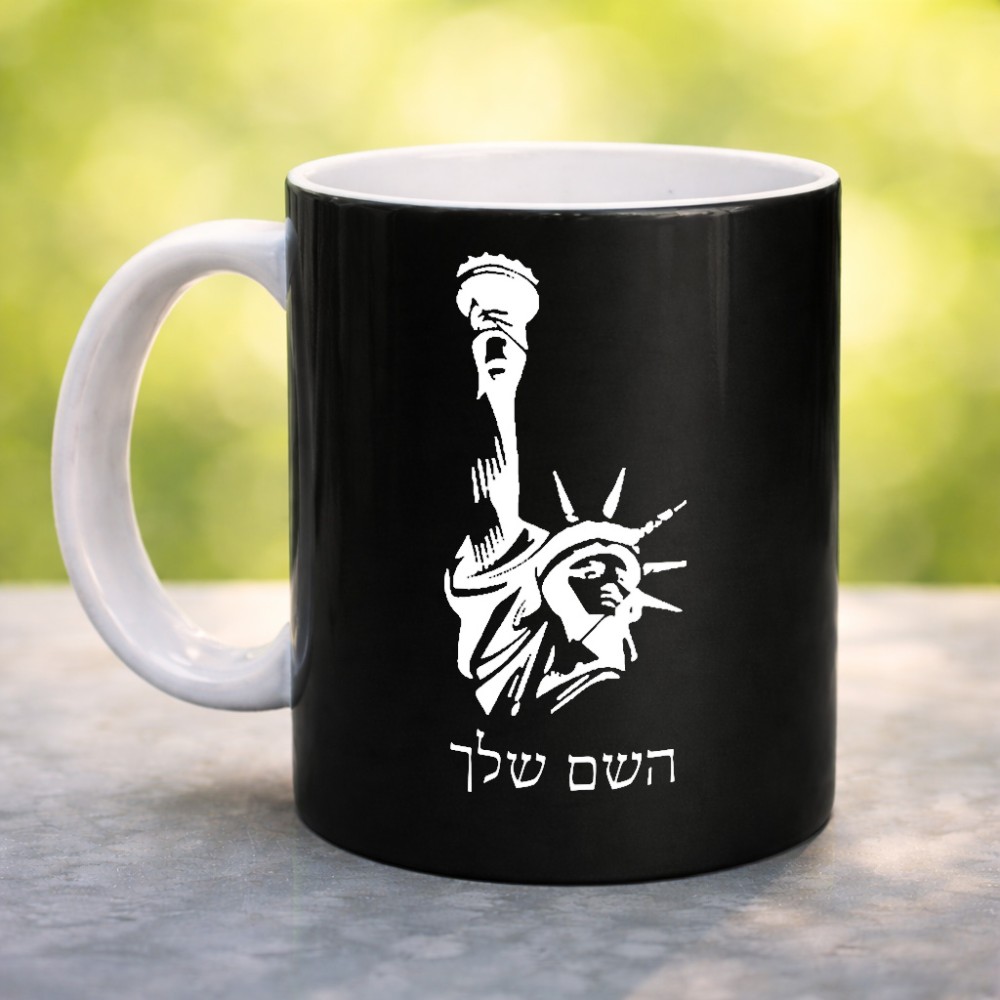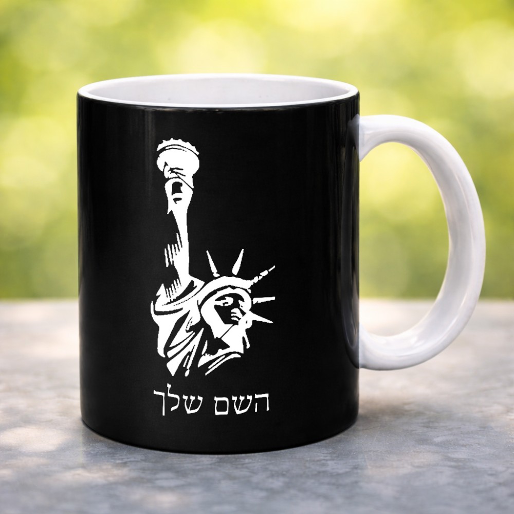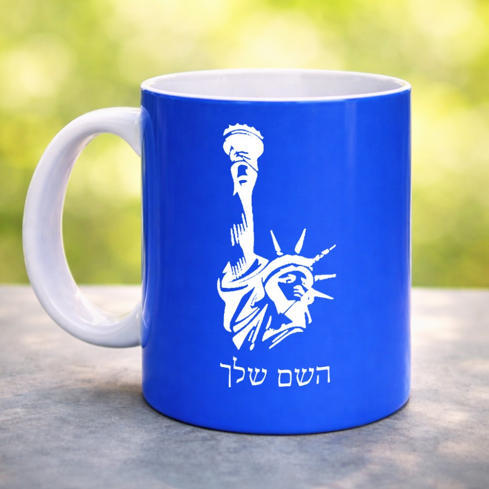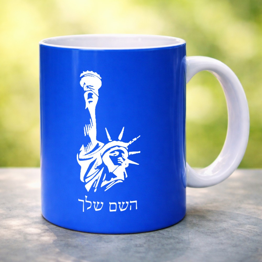 ספל תה \ קפה בעיצוב אישי עם השם שלך בעיצוב פסל החירות גודל הספל 325 מ"ל