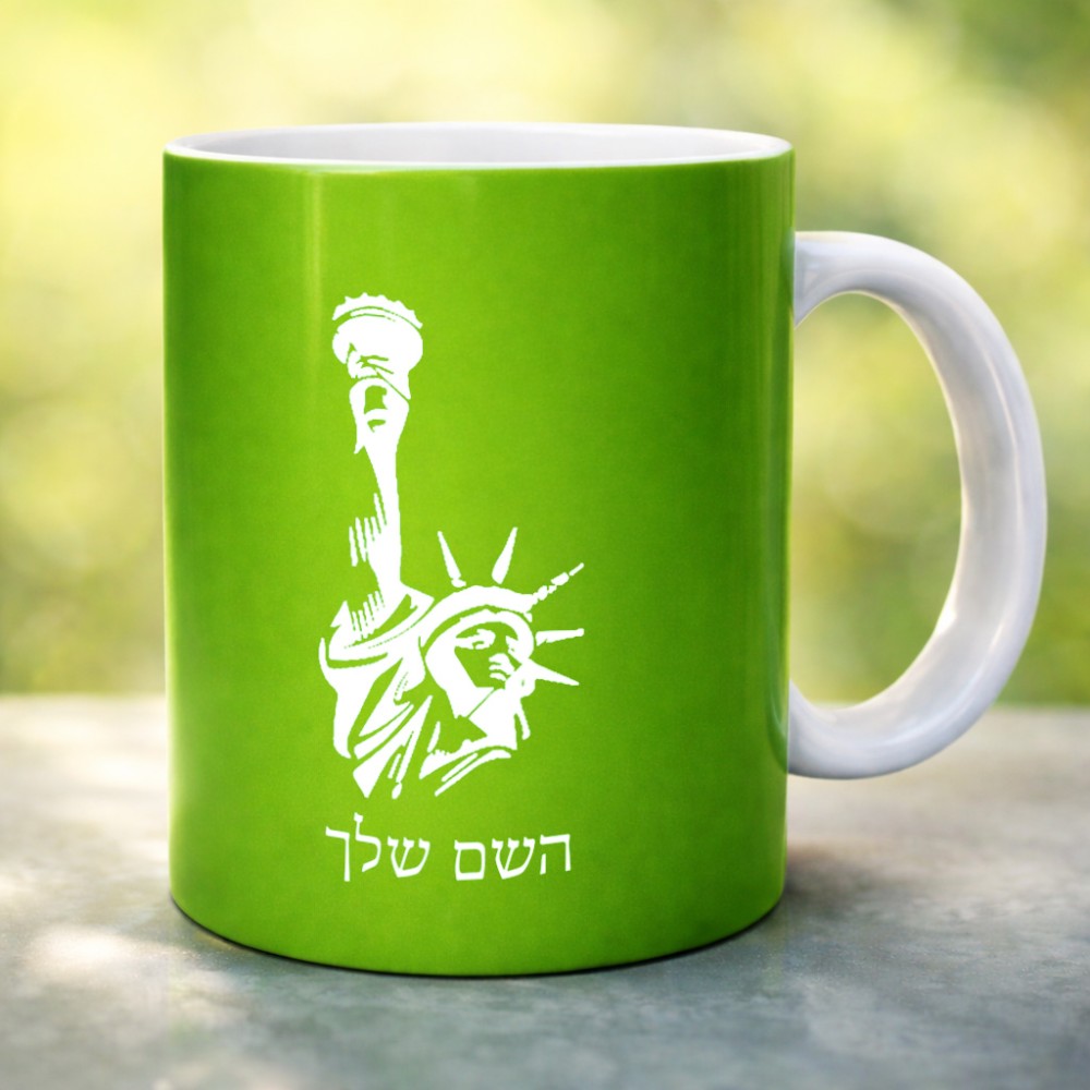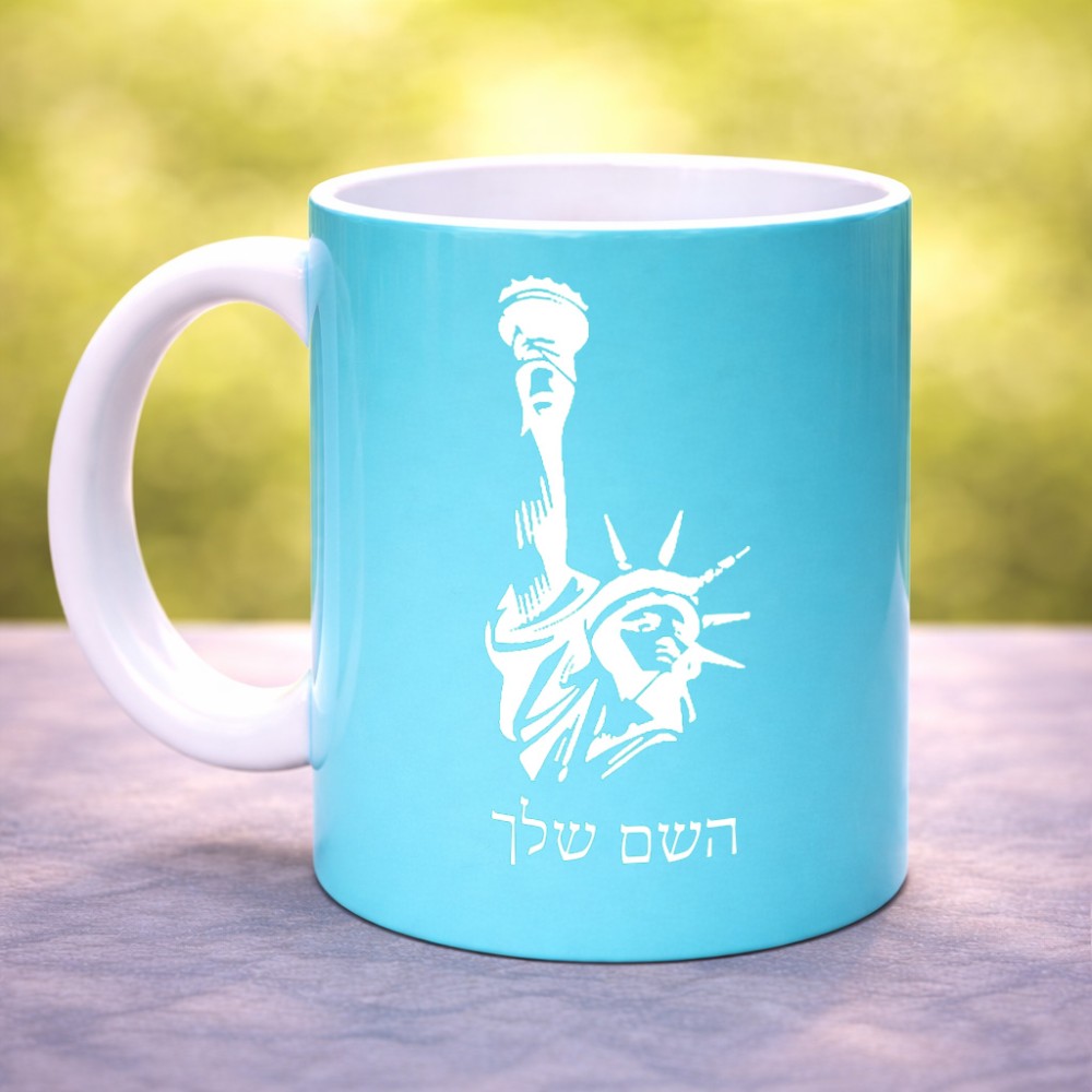 ספל תה \ קפה בעיצוב אישי עם השם שלך בעיצוב פסל החירות גדול הספל 325 מ"ל, הספל בעלת ידית לאחיזה יציבה. את השם המבוקש ניתן לציין בהזמנה, אם לא צויין אנחנו ניצור קשר לבירור.