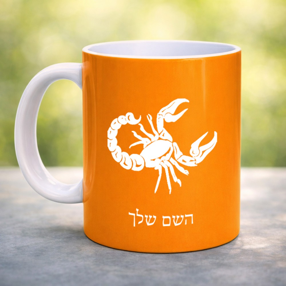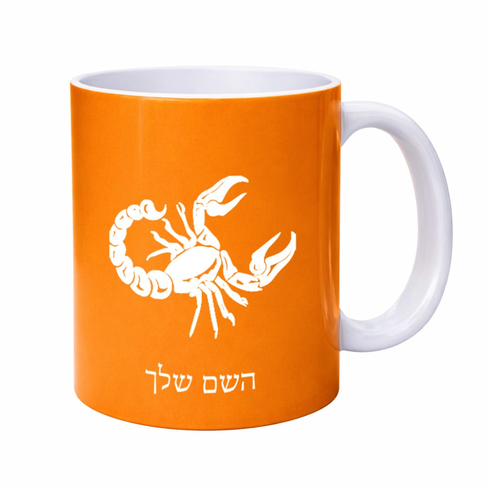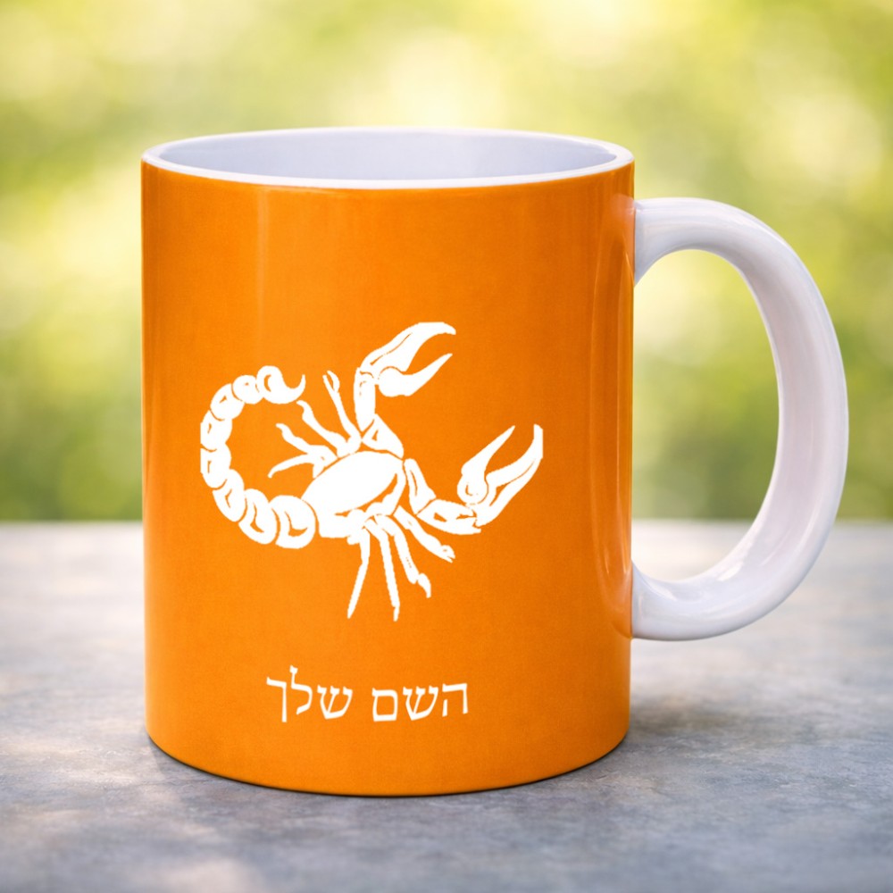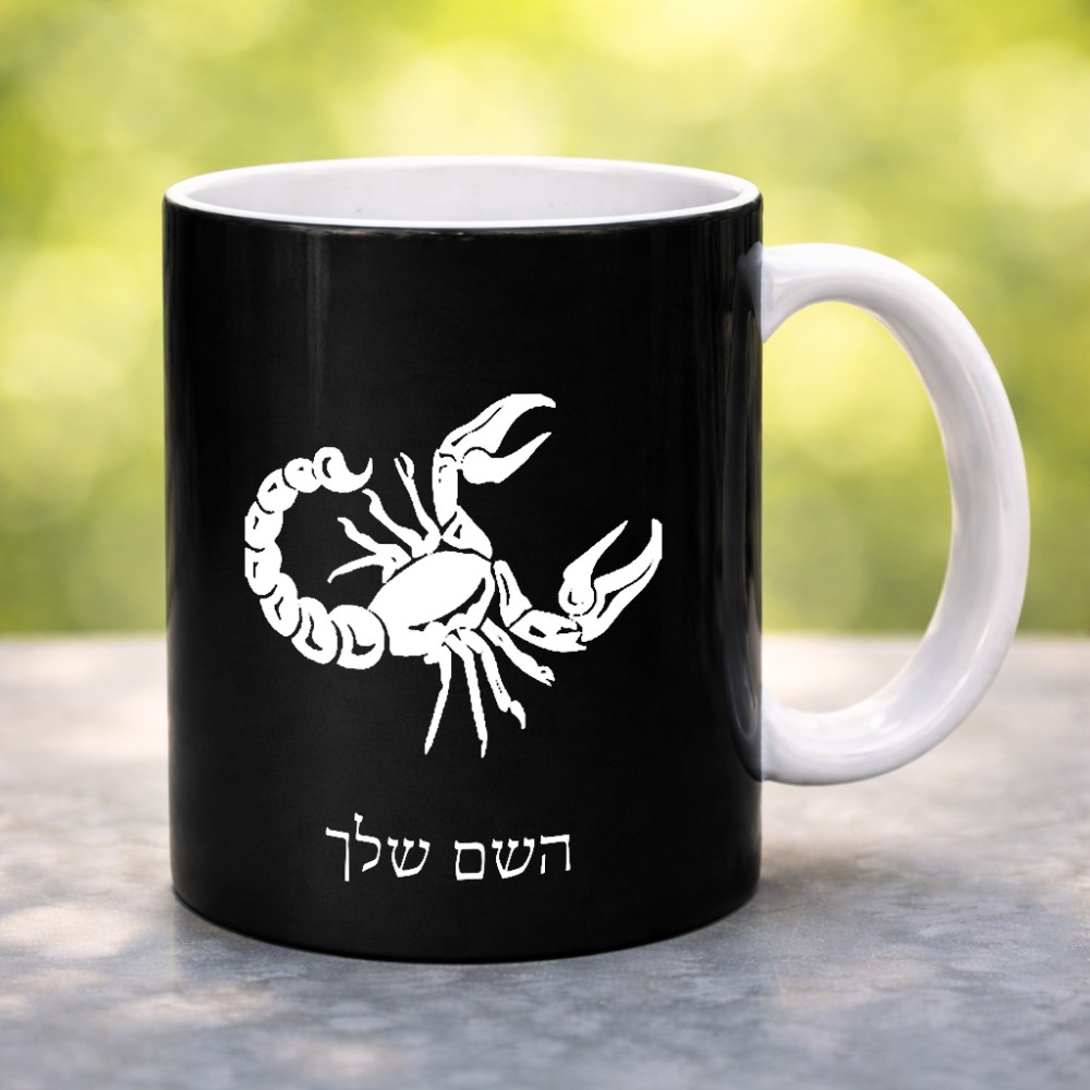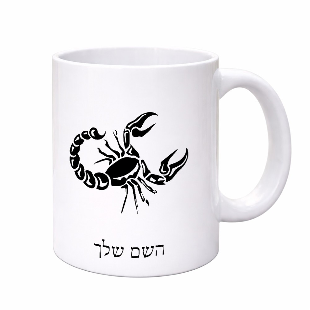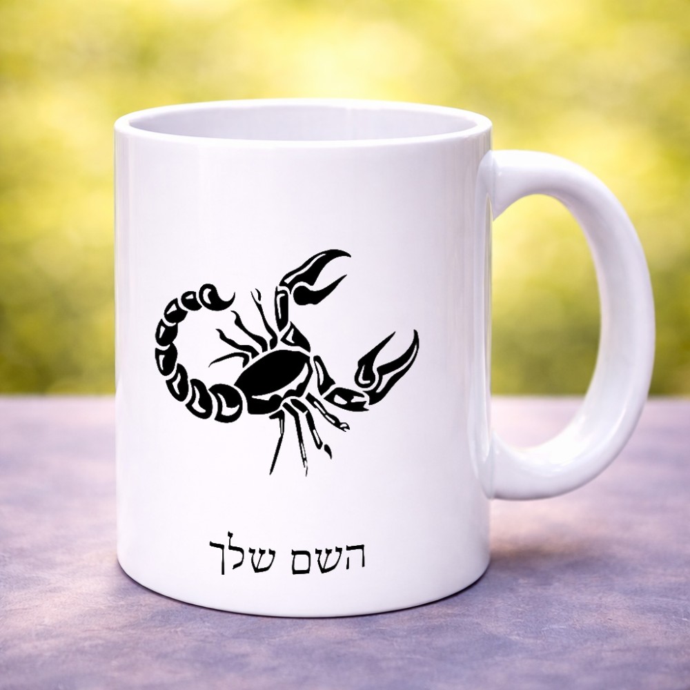 ספל תה \ קפה בעיצוב אישי עם השם שלך בעיצוב מזלות - עקרב גדול הספל 325 מ"ל, הספל בעלת ידית לאחיזה יציבה. את השם המבוקש ניתן לציין בהזמנה, אם לא צויין אנחנו ניצור קשר לבירור.