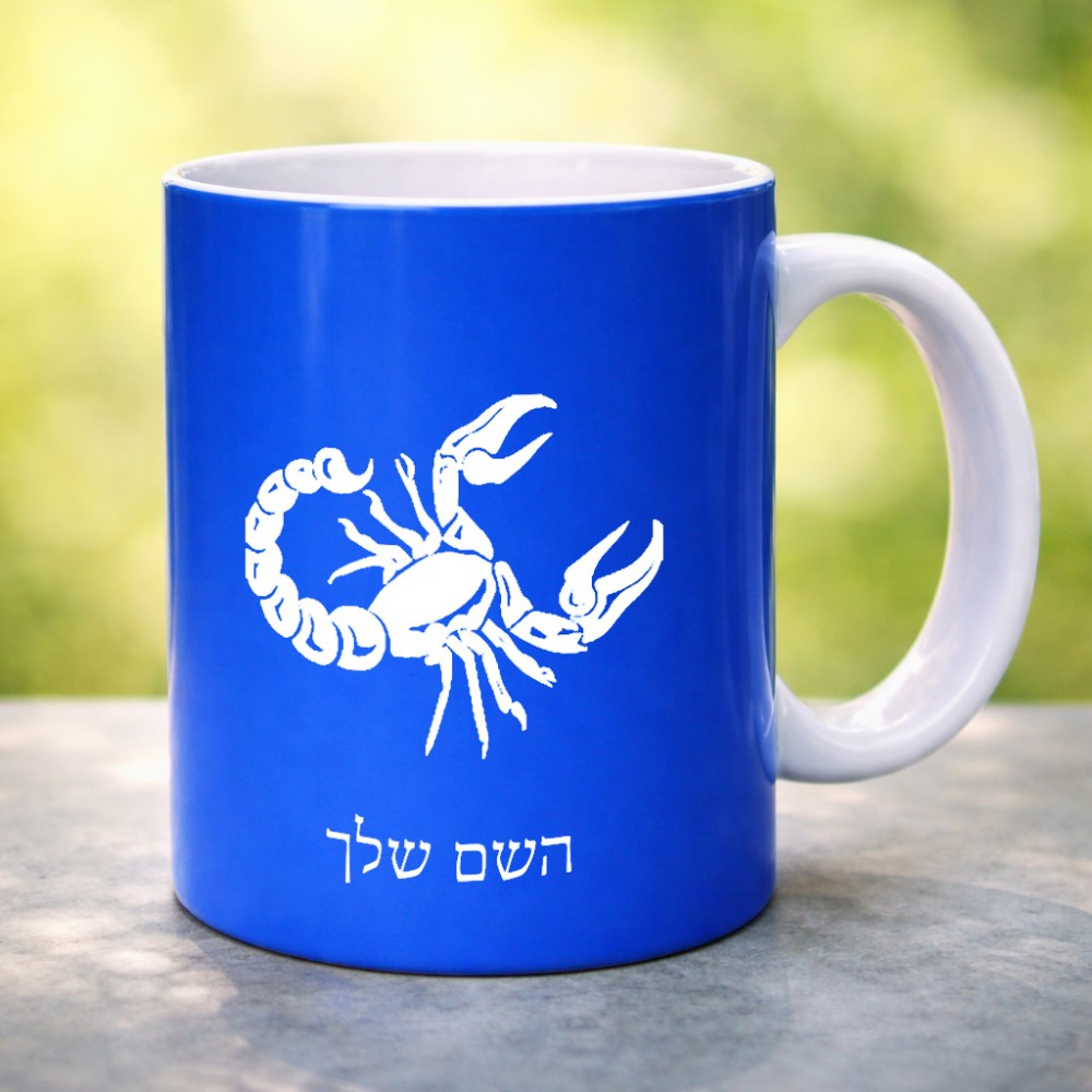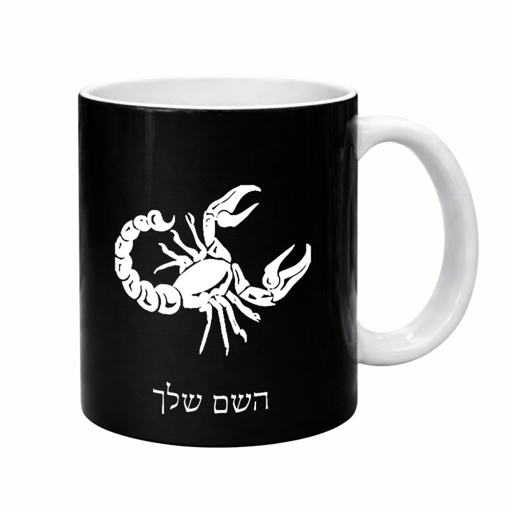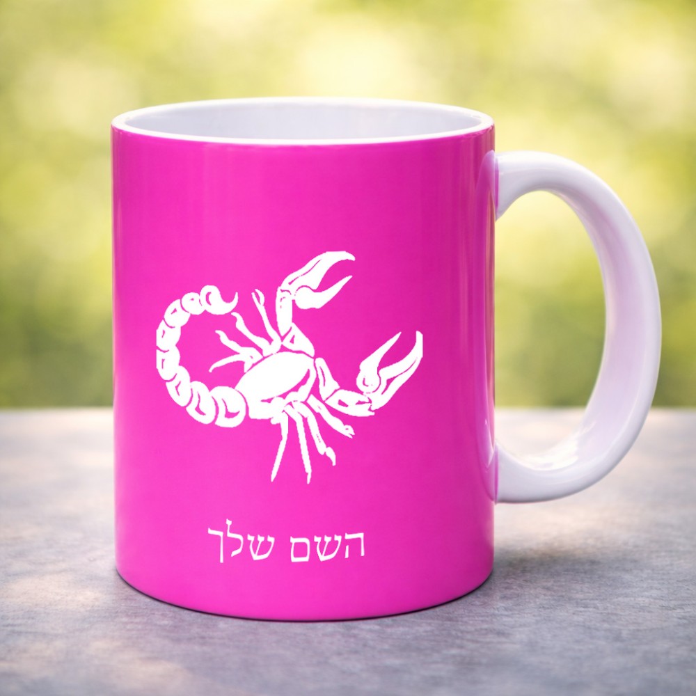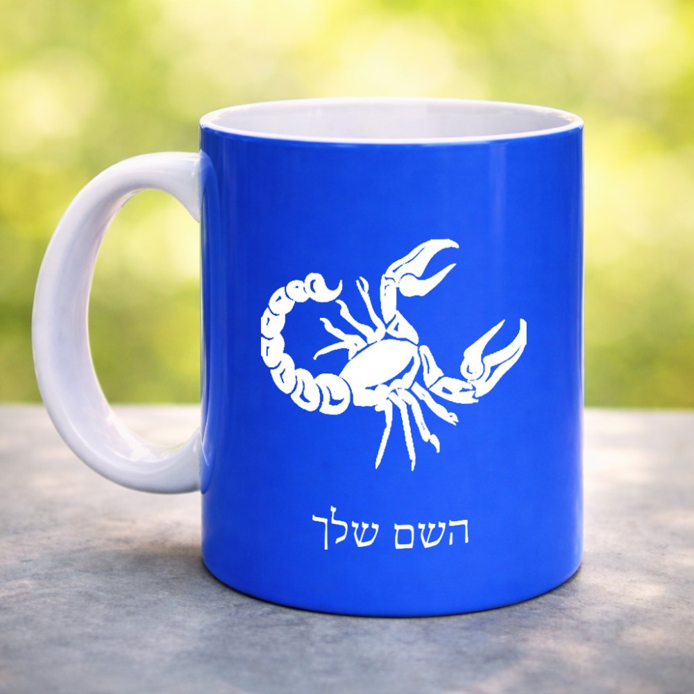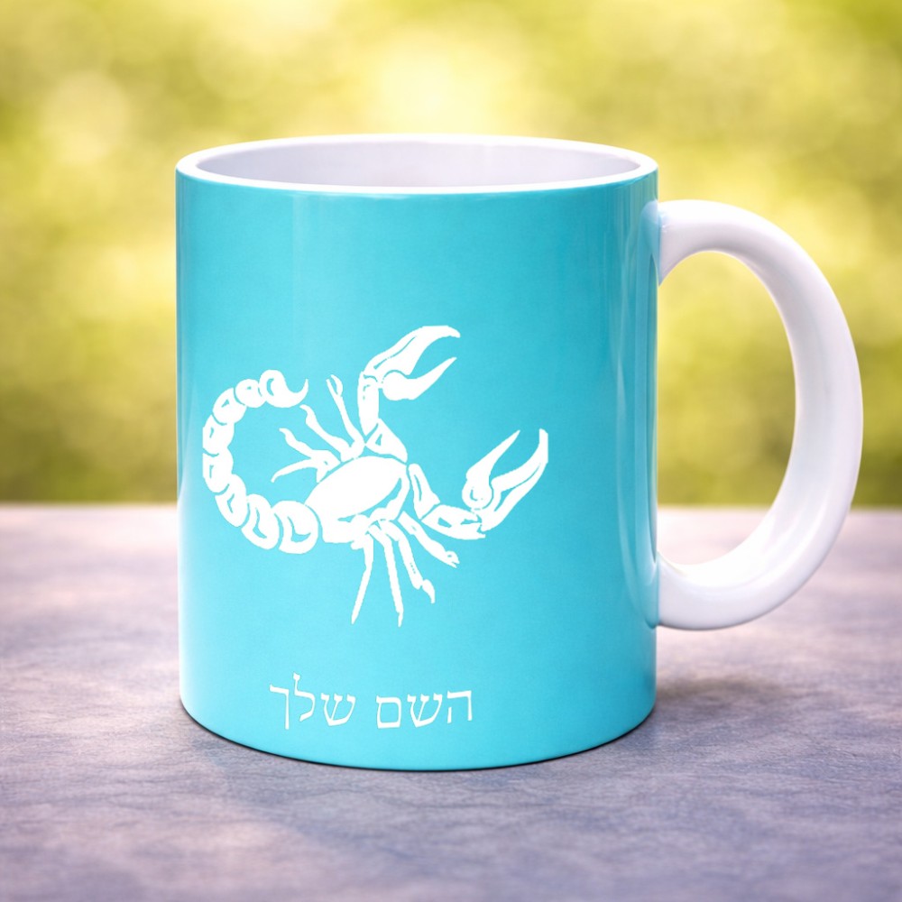 ספל תה \ קפה בעיצוב אישי עם השם שלך בעיצוב מזלות - עקרב גדול הספל 325 מ"ל, הספל בעלת ידית לאחיזה יציבה. את השם המבוקש ניתן לציין בהזמנה, אם לא צויין אנחנו ניצור קשר לבירור.