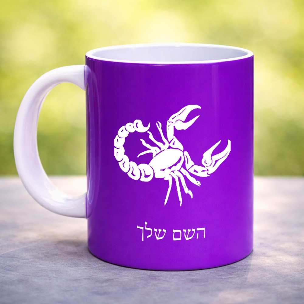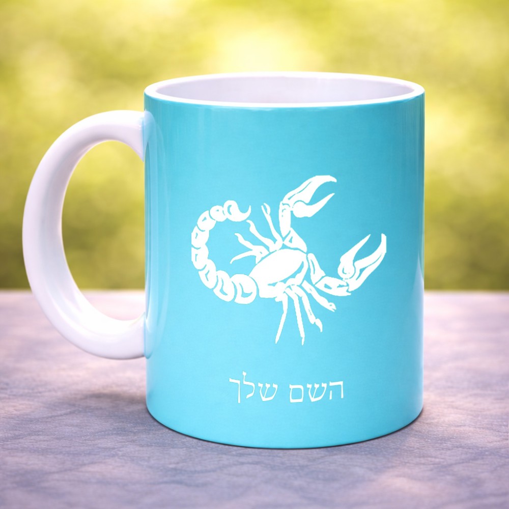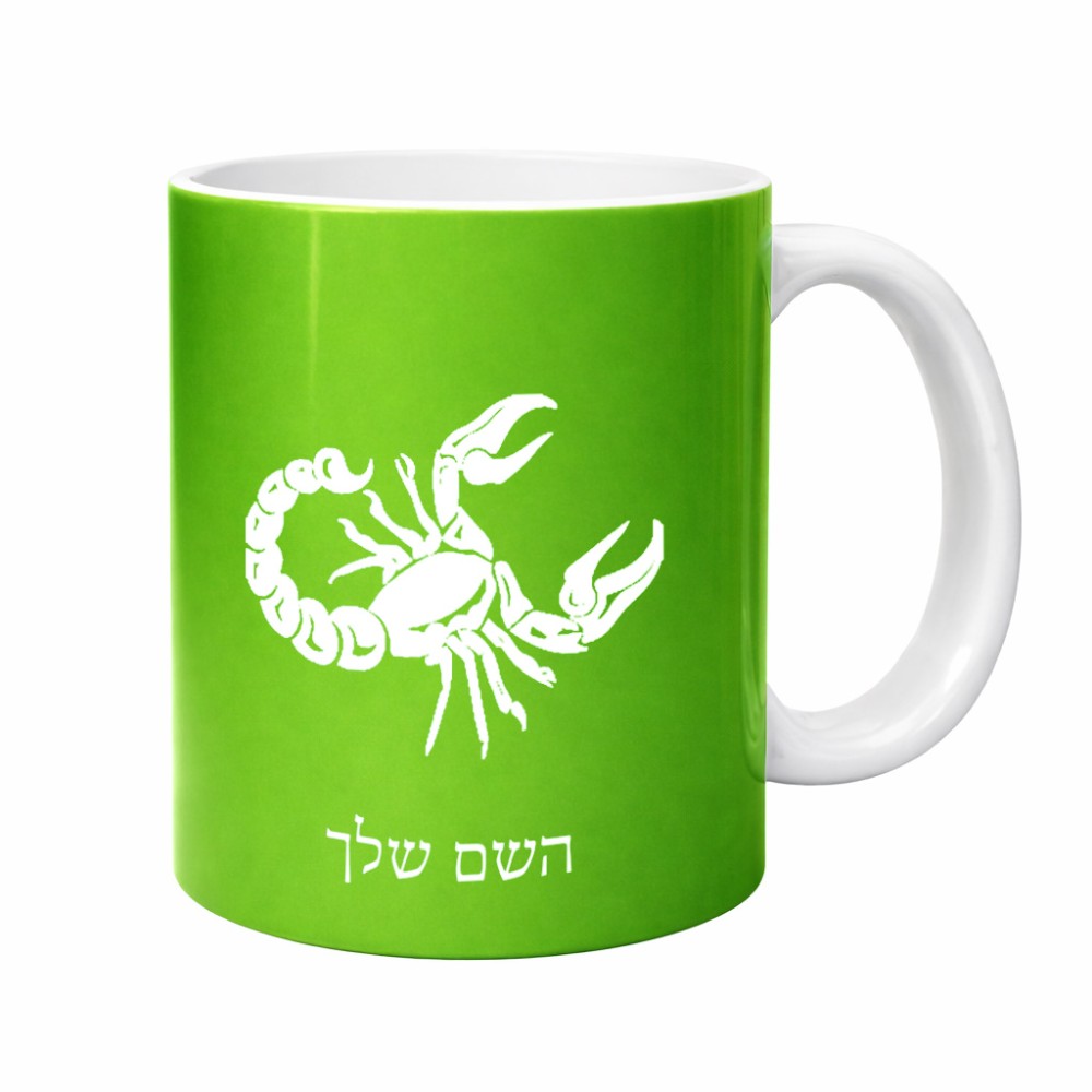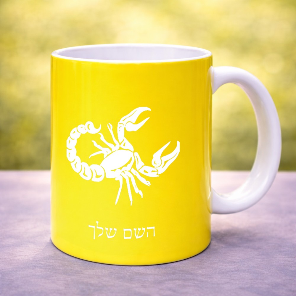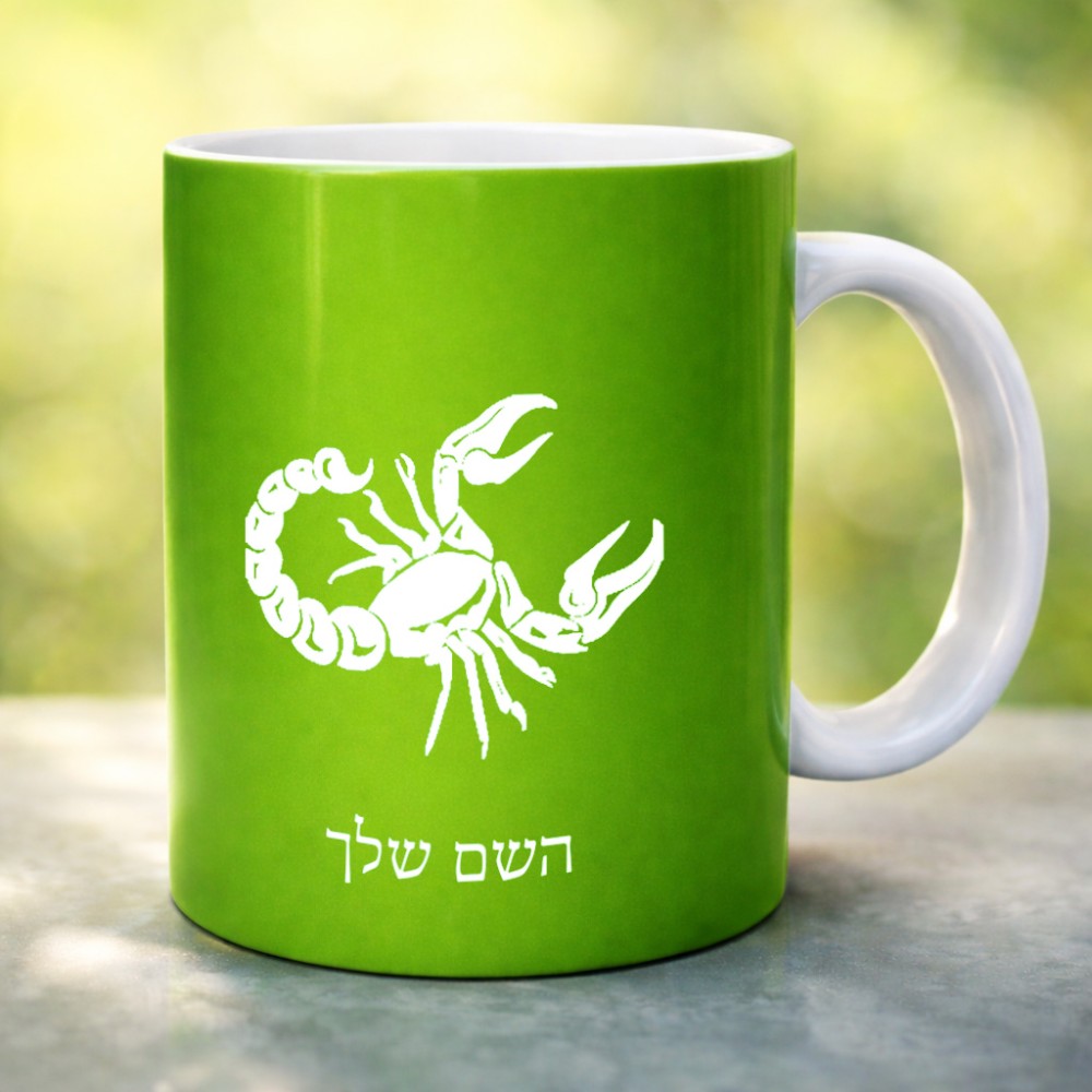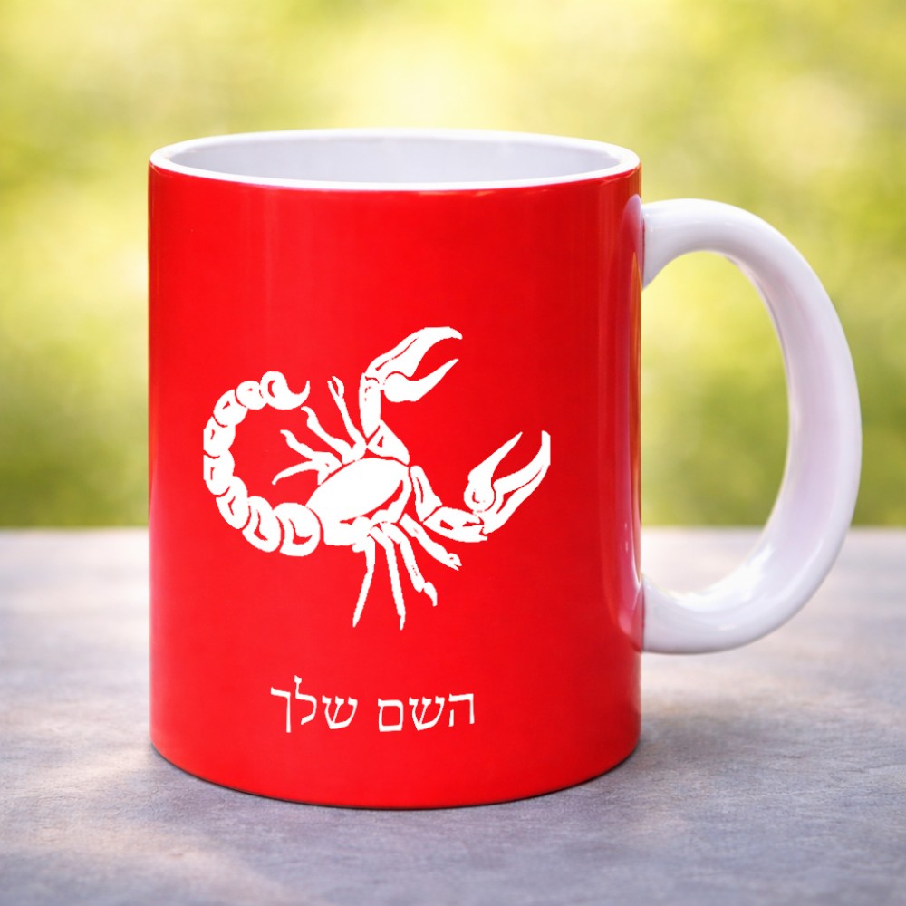 ספל תה \ קפה בעיצוב אישי עם השם שלך בעיצוב מזלות - עקרב גדול הספל 325 מ"ל, הספל בעלת ידית לאחיזה יציבה. את השם המבוקש ניתן לציין בהזמנה, אם לא צויין אנחנו ניצור קשר לבירור.