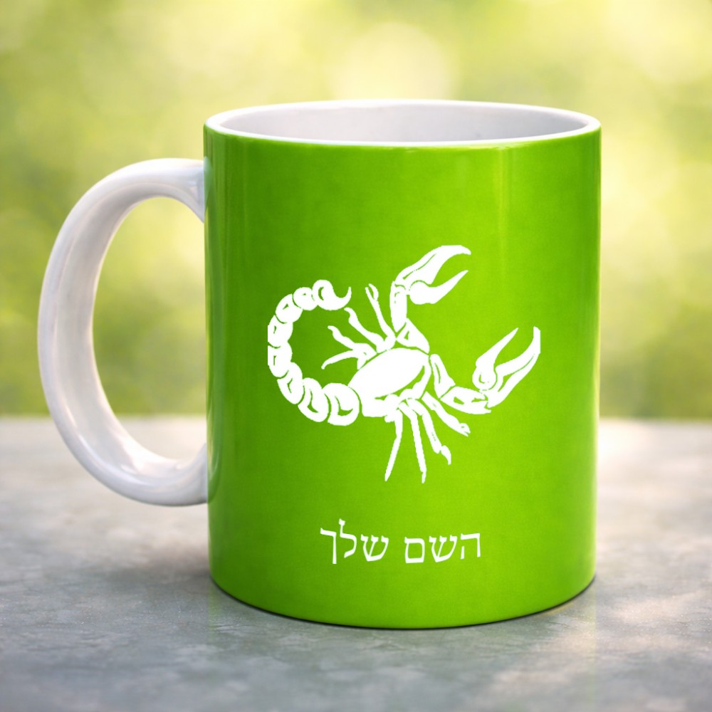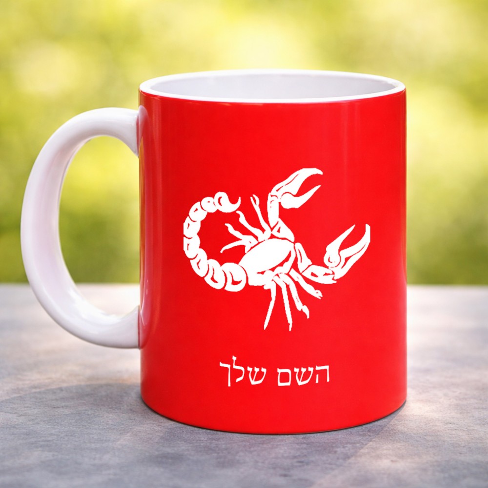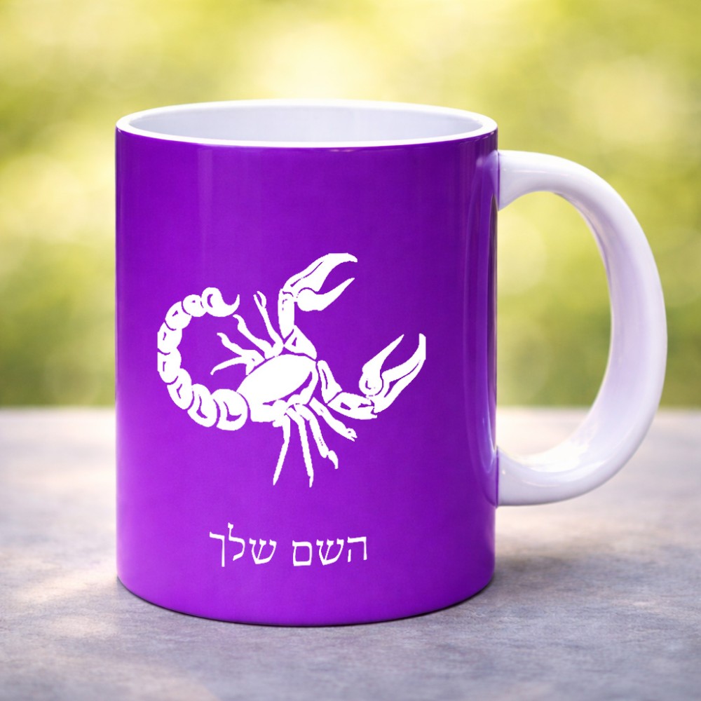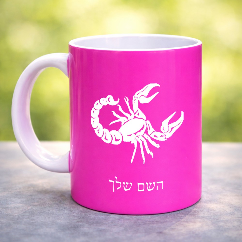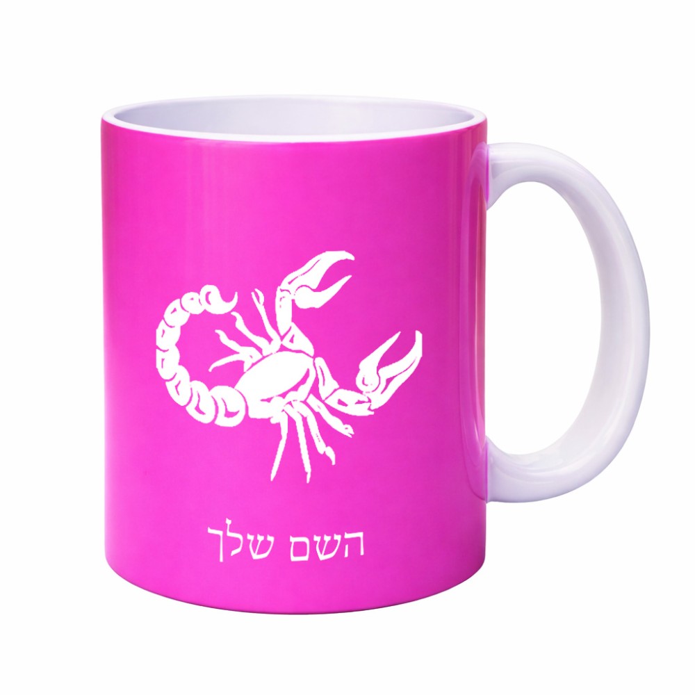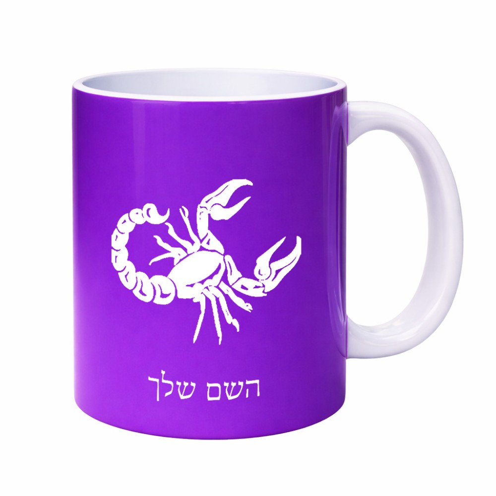 ספל תה \ קפה בעיצוב אישי עם השם שלך בעיצוב מזלות - עקרב גדול הספל 325 מ"ל, הספל בעלת ידית לאחיזה יציבה. את השם המבוקש ניתן לציין בהזמנה, אם לא צויין אנחנו ניצור קשר לבירור.