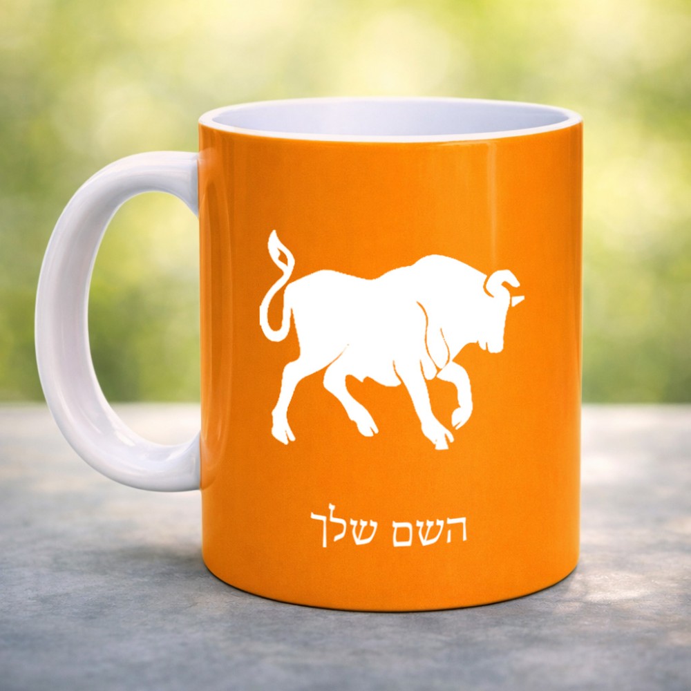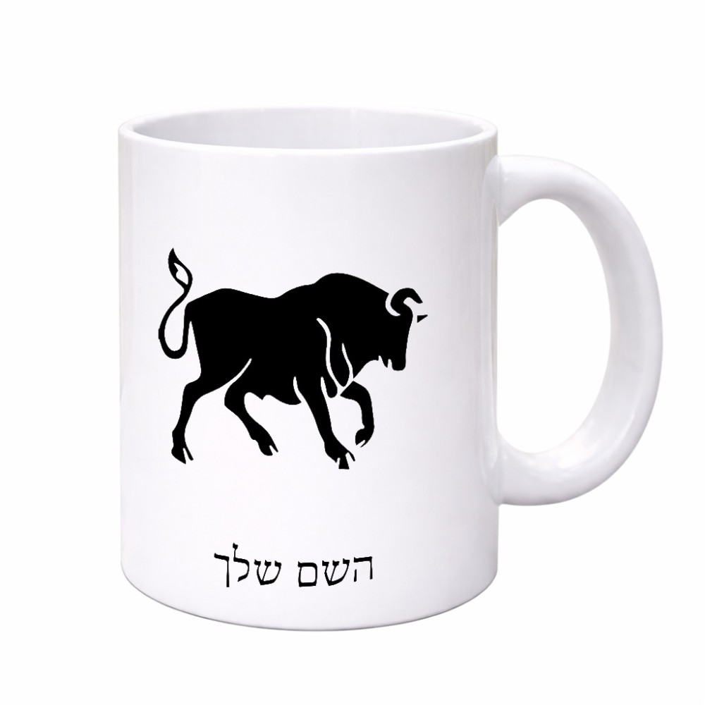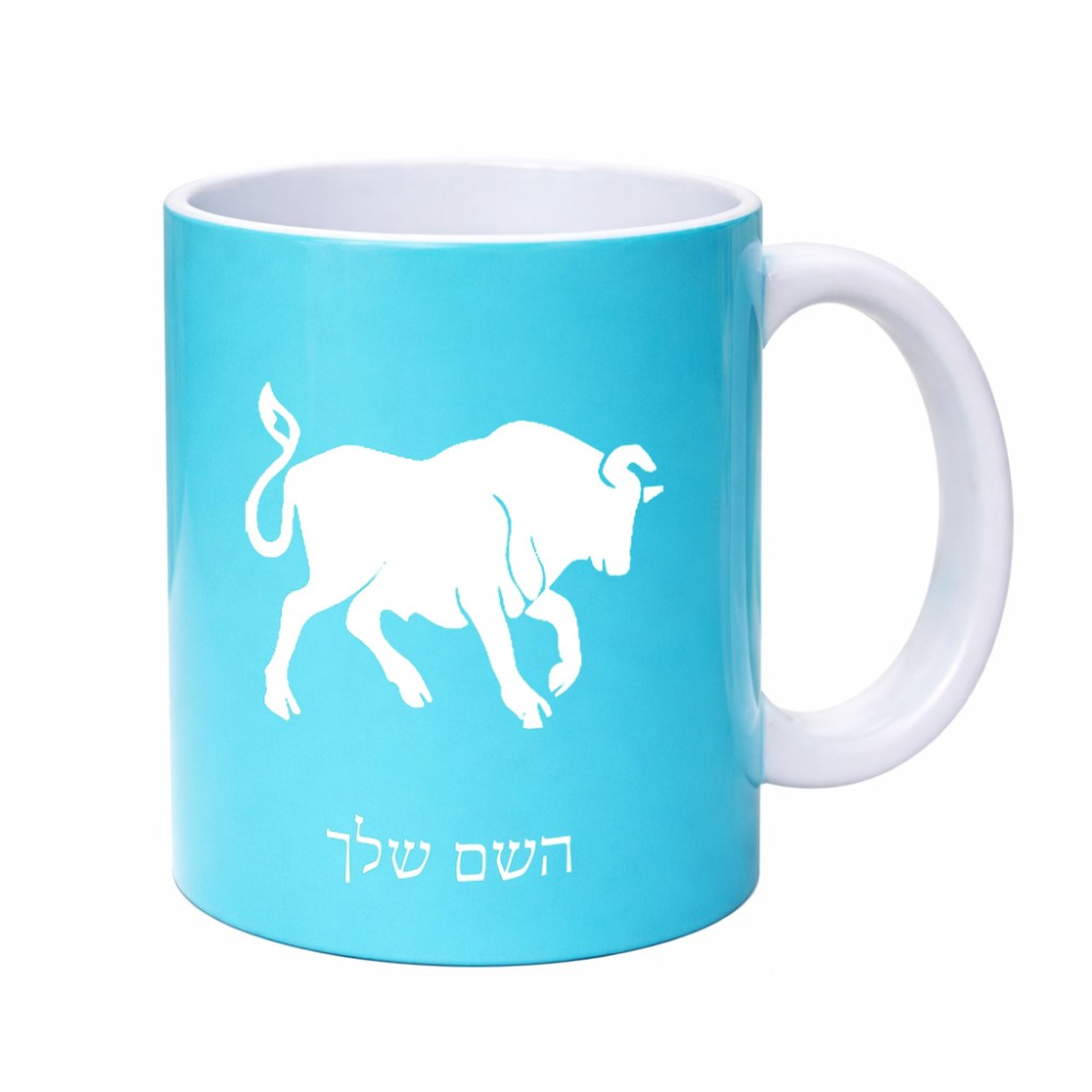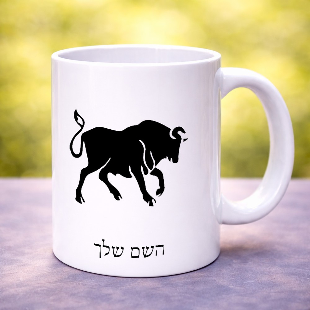 ספל תה \ קפה בעיצוב אישי עם השם שלך בעיצוב מזלות - שור גדול הספל 325 מ"ל, הספל בעלת ידית לאחיזה יציבה. את השם המבוקש ניתן לציין בהזמנה, אם לא צויין אנחנו ניצור קשר לבירור.