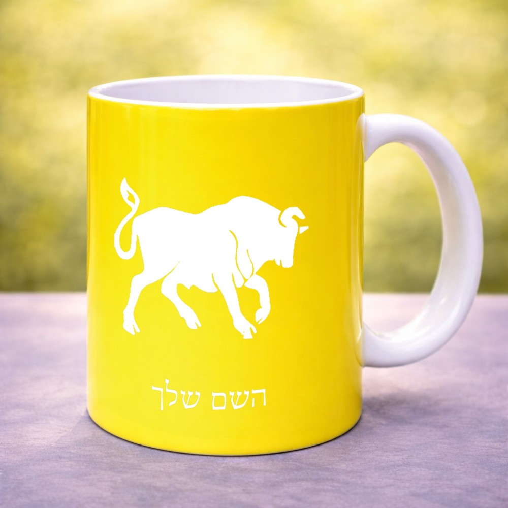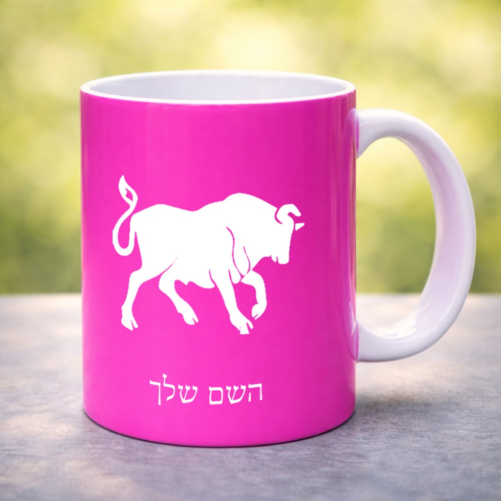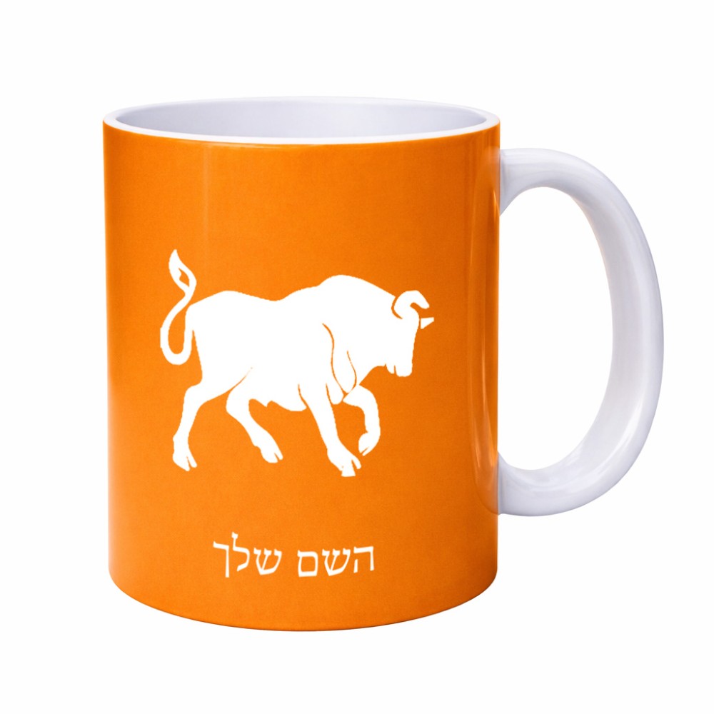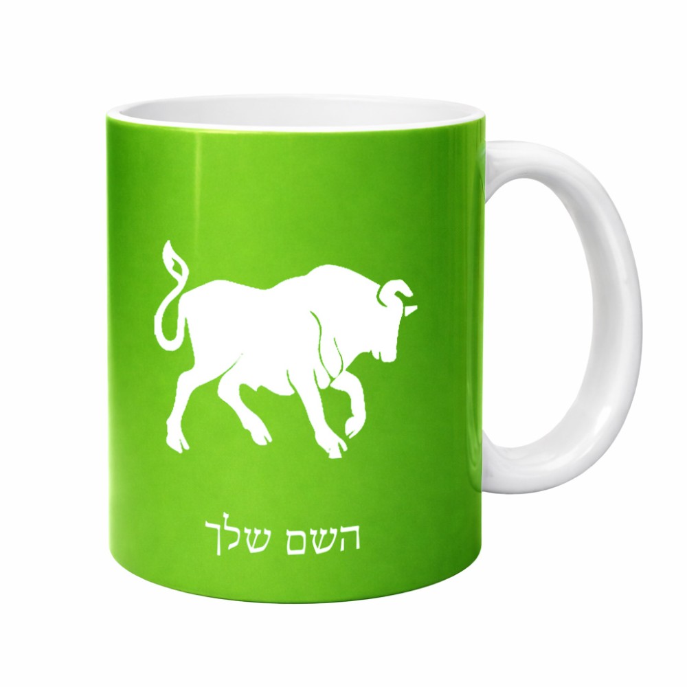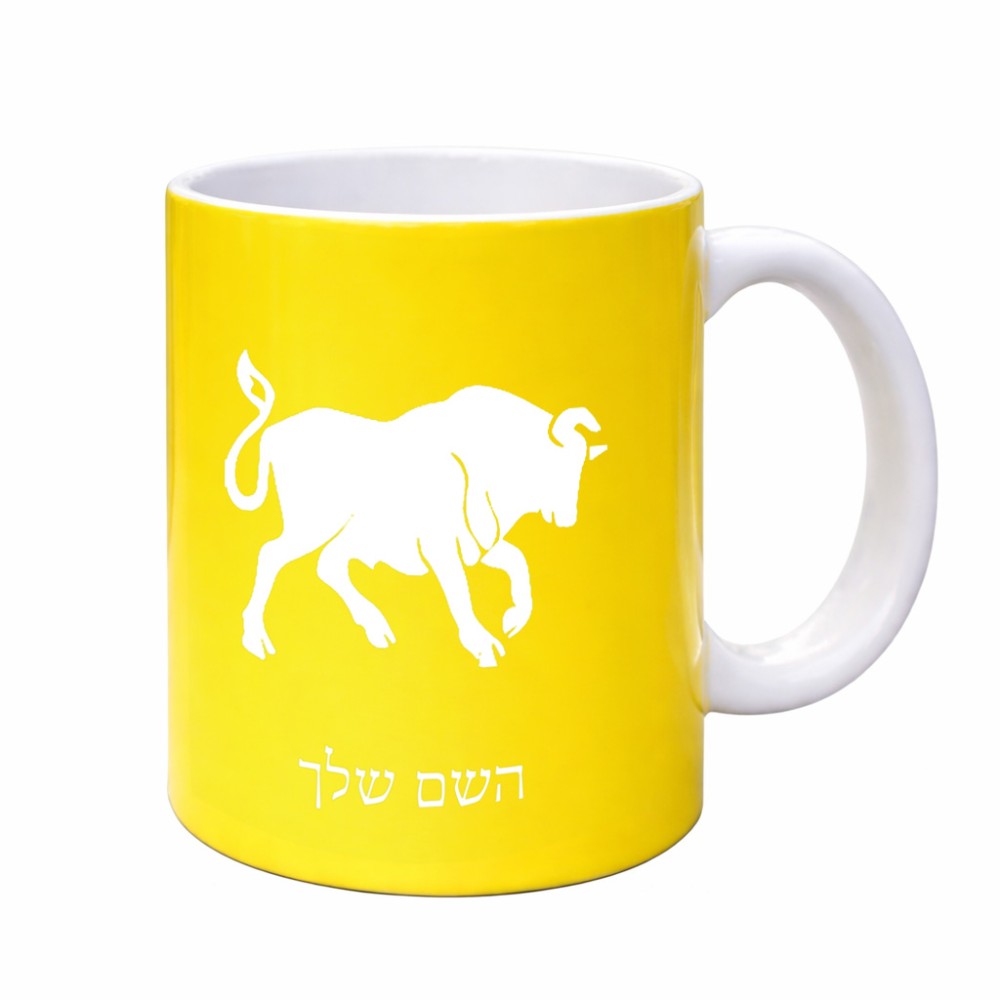 ספל תה \ קפה בעיצוב אישי עם השם שלך בעיצוב מזלות - שור גדול הספל 325 מ"ל, הספל בעלת ידית לאחיזה יציבה. את השם המבוקש ניתן לציין בהזמנה, אם לא צויין אנחנו ניצור קשר לבירור.