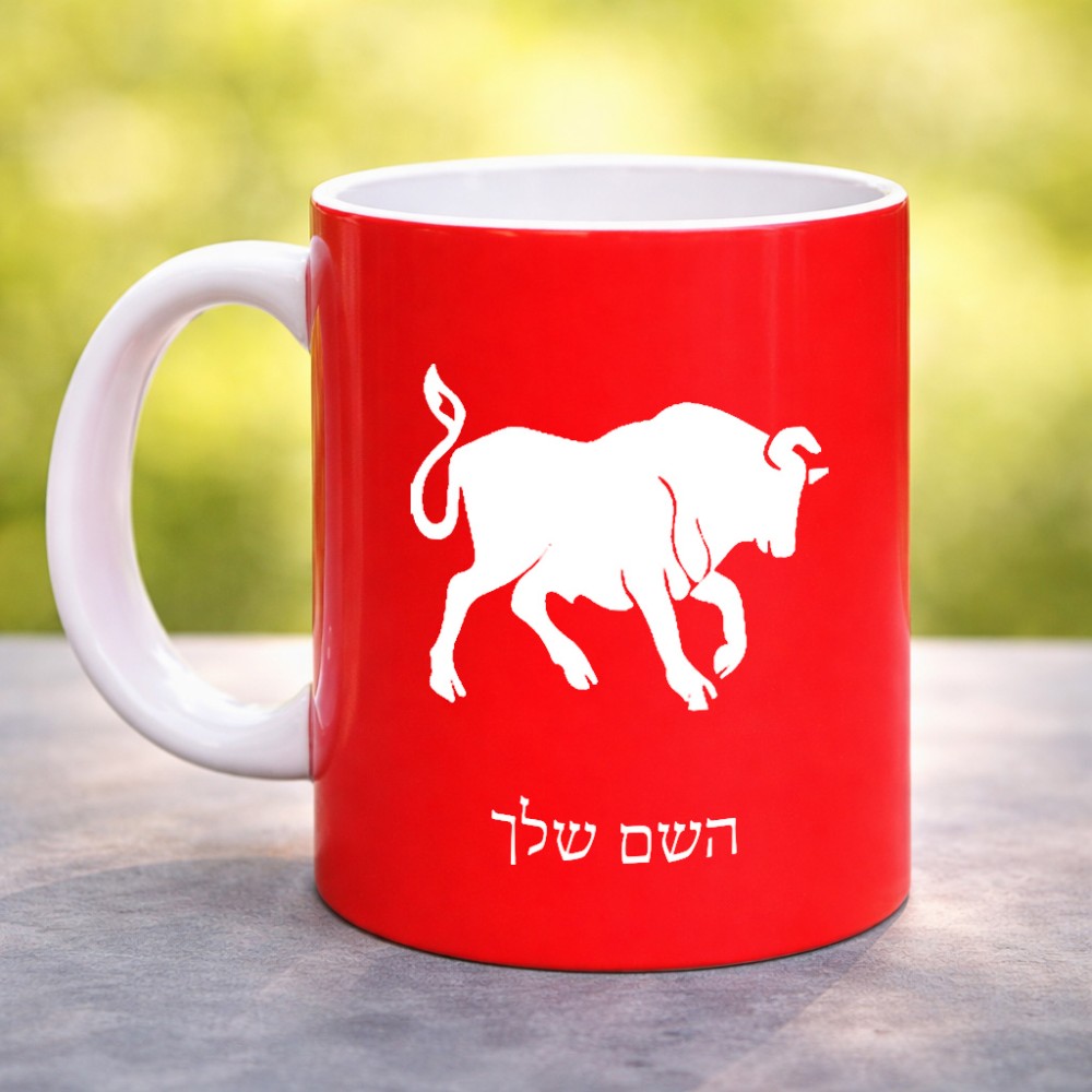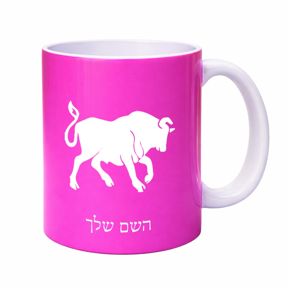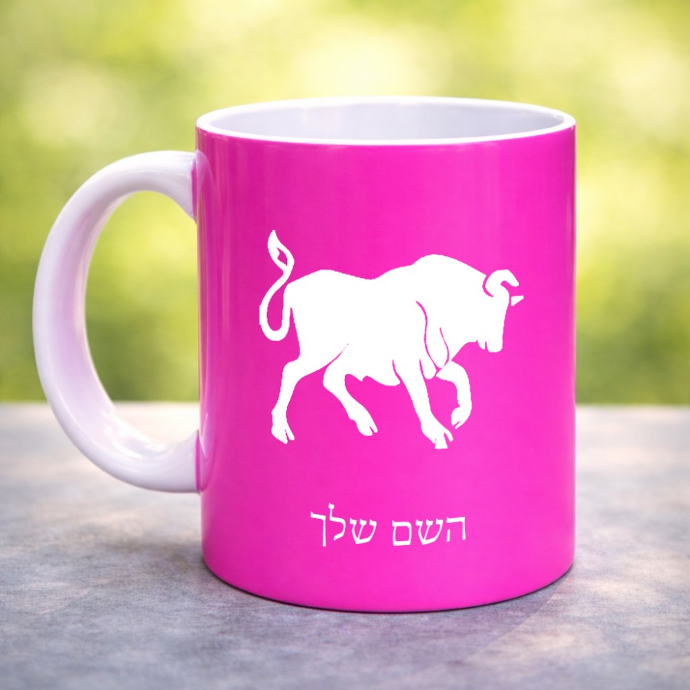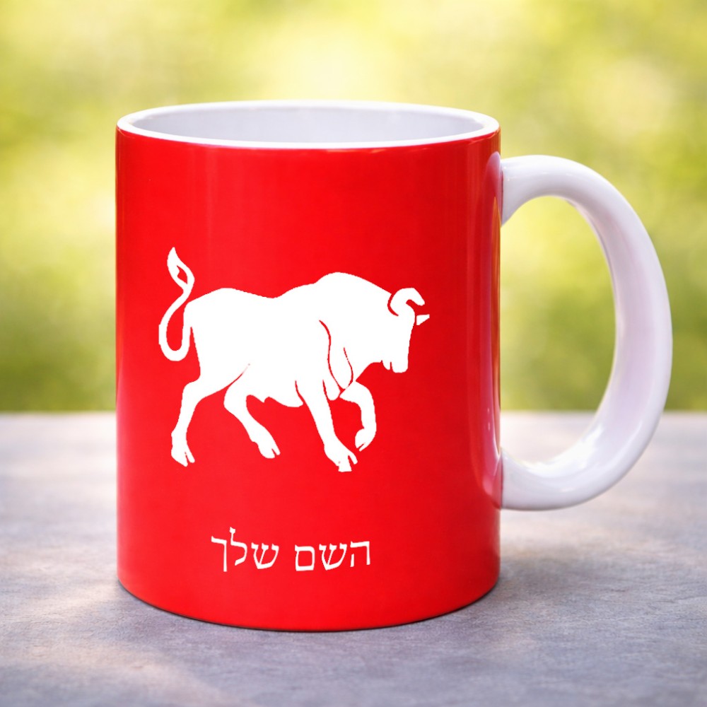 ספל תה \ קפה בעיצוב אישי עם השם שלך בעיצוב מזלות - שור גדול הספל 325 מ"ל, הספל בעלת ידית לאחיזה יציבה. את השם המבוקש ניתן לציין בהזמנה, אם לא צויין אנחנו ניצור קשר לבירור.