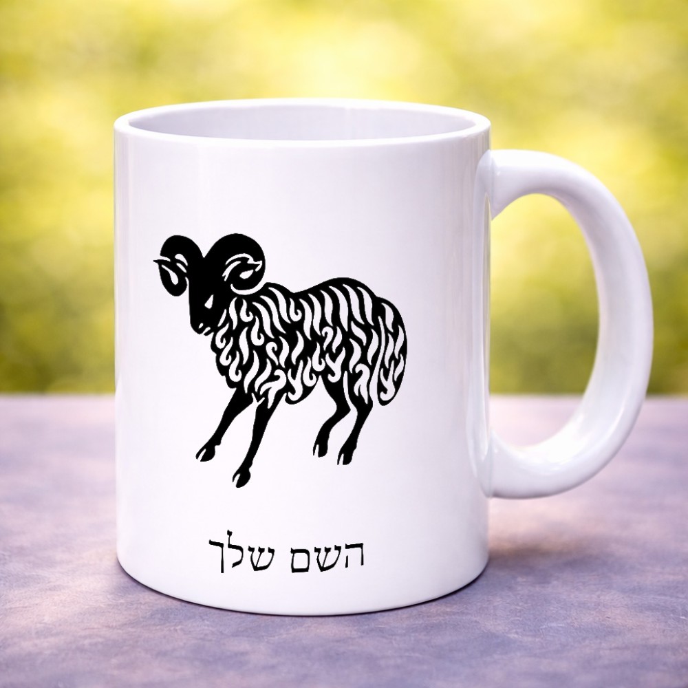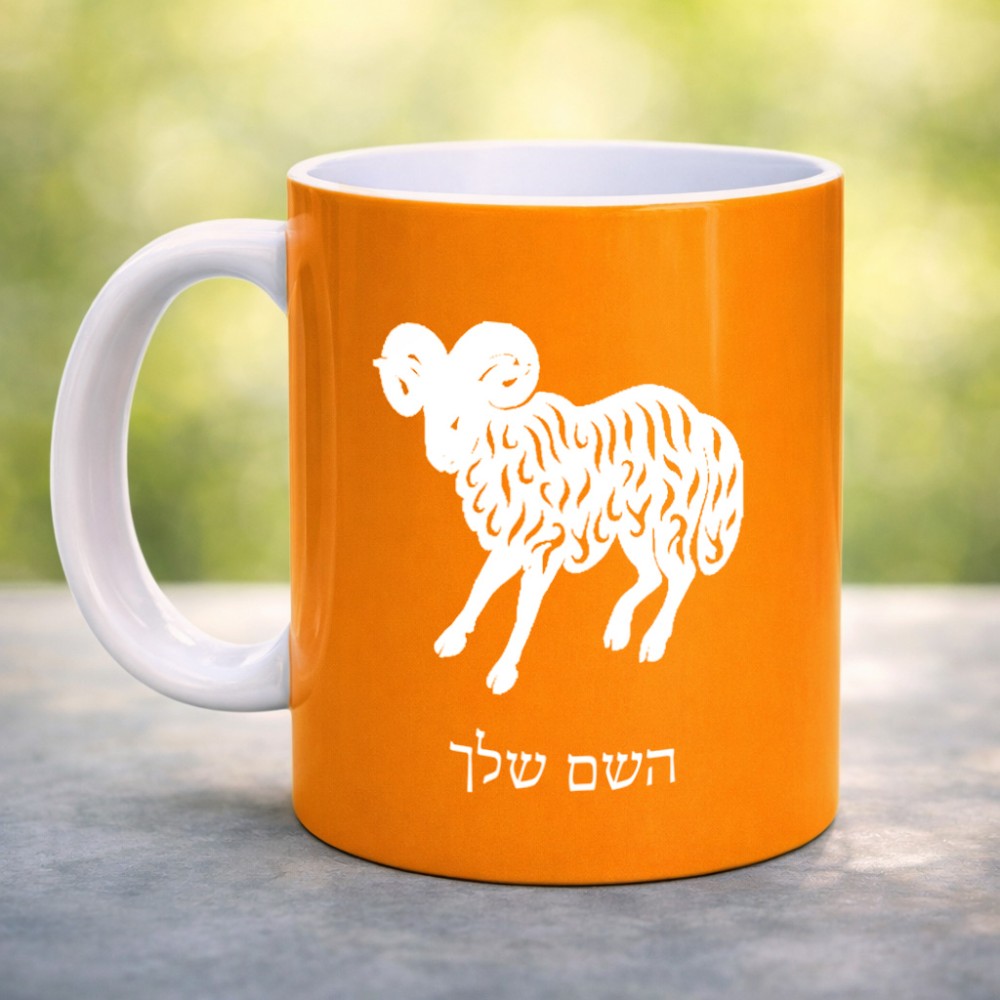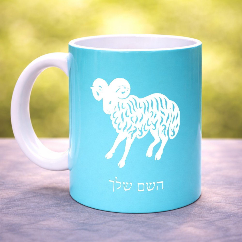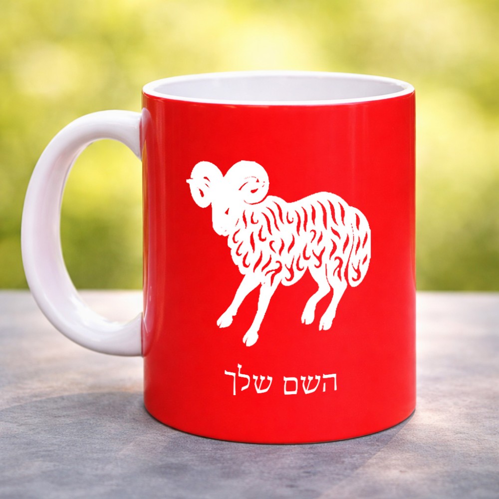 ספל תה \ קפה בעיצוב אישי עם השם שלך בעיצוב מזלות - טלה גדול הספל 325 מ"ל, הספל בעלת ידית לאחיזה יציבה. את השם המבוקש ניתן לציין בהזמנה, אם לא צויין אנחנו ניצור קשר לבירור.