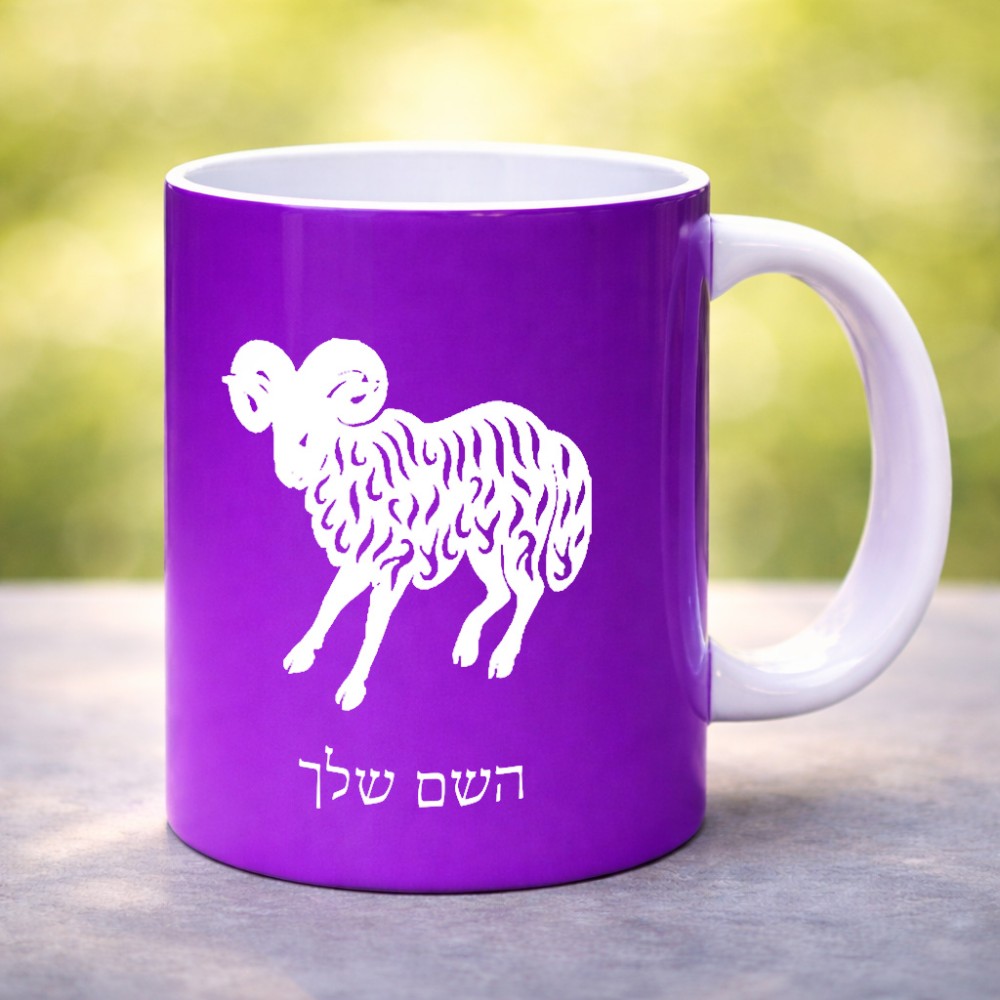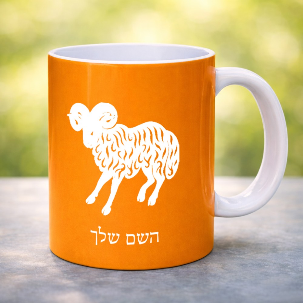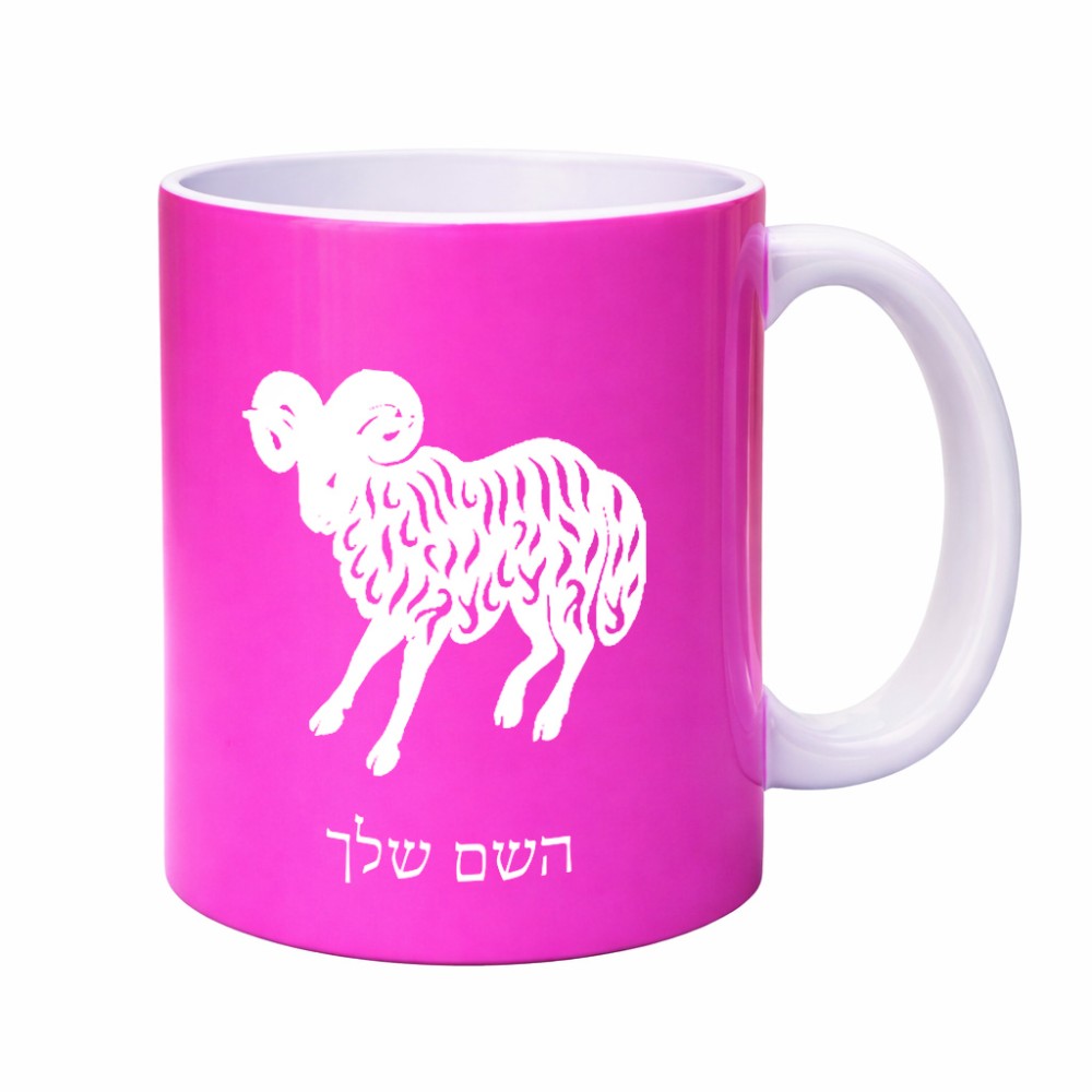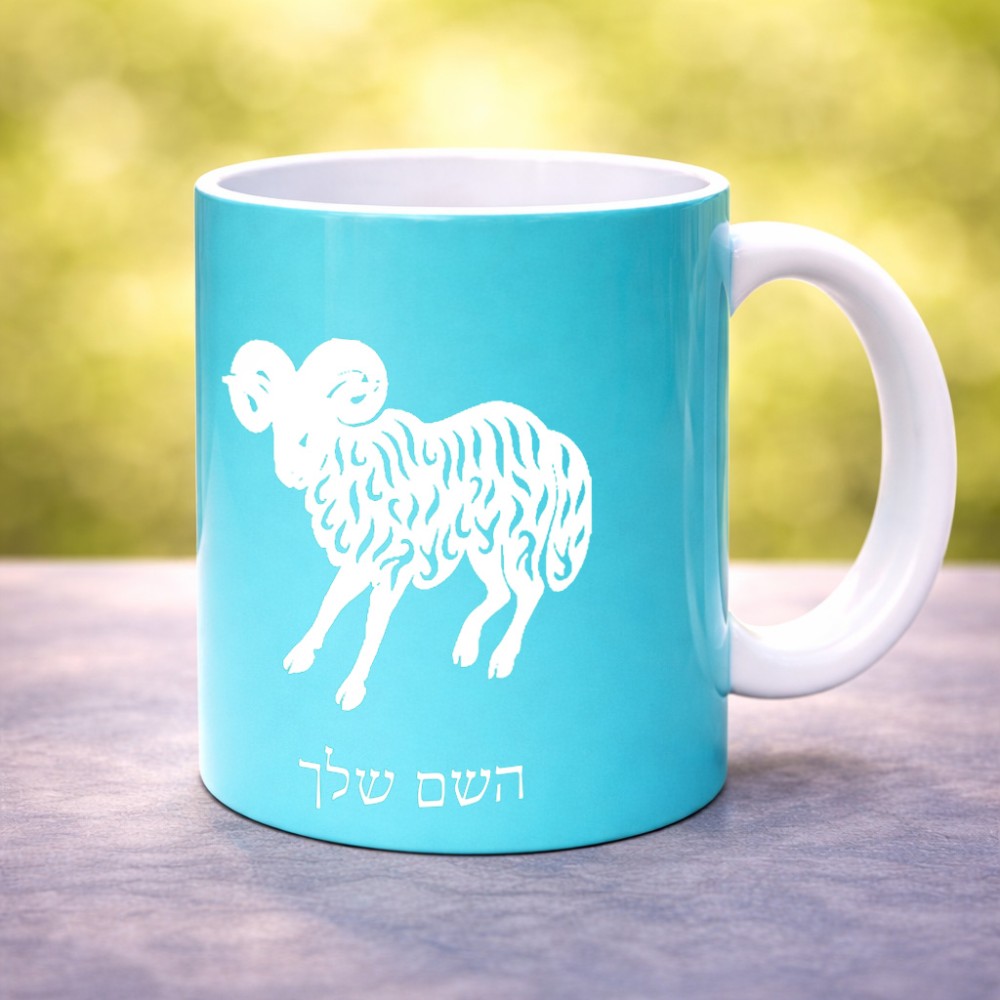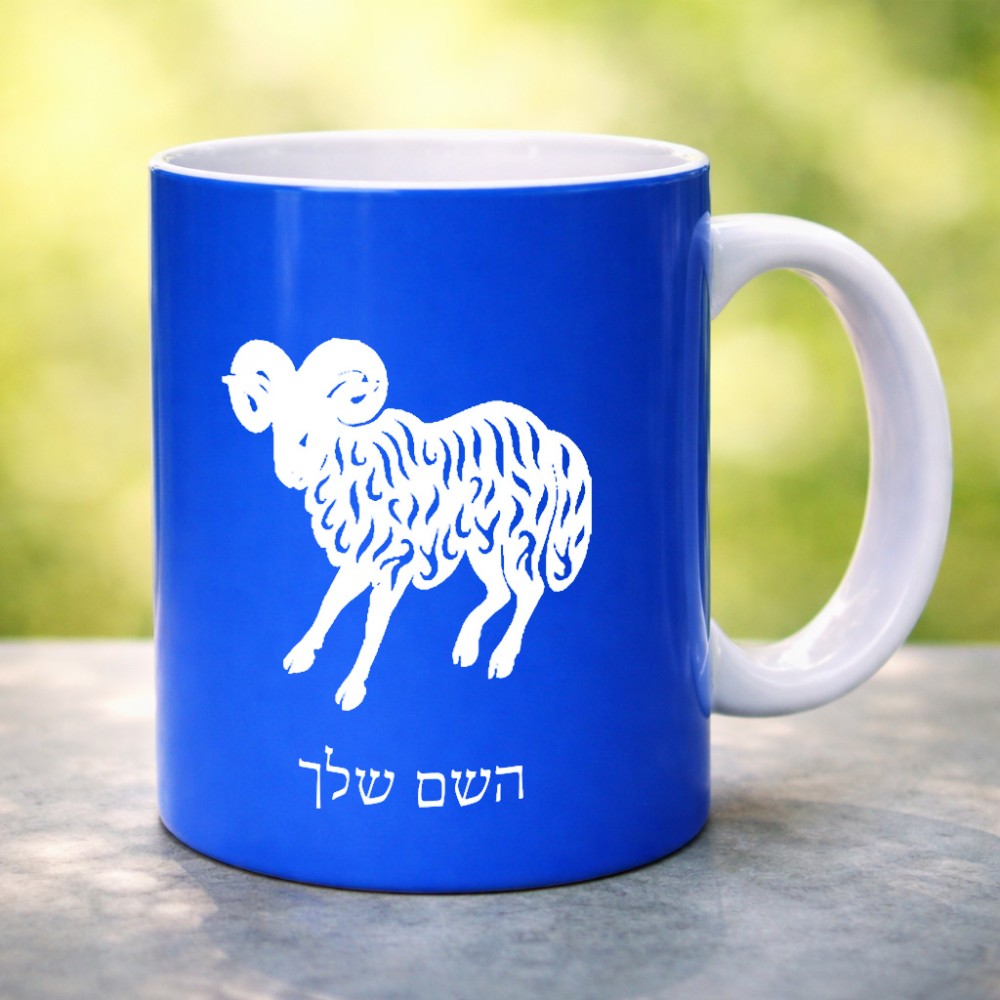 ספל תה \ קפה בעיצוב אישי עם השם שלך בעיצוב מזלות - טלה גדול הספל 325 מ"ל, הספל בעלת ידית לאחיזה יציבה. את השם המבוקש ניתן לציין בהזמנה, אם לא צויין אנחנו ניצור קשר לבירור.