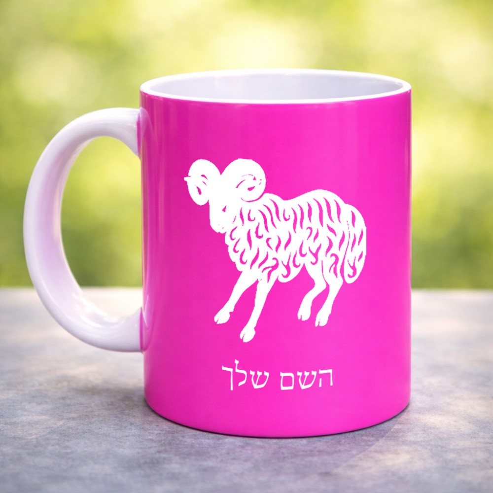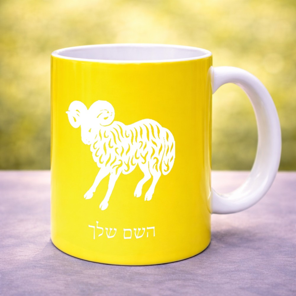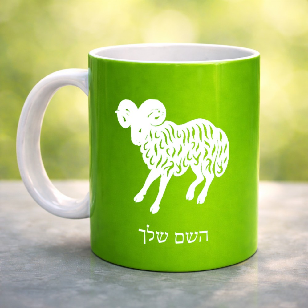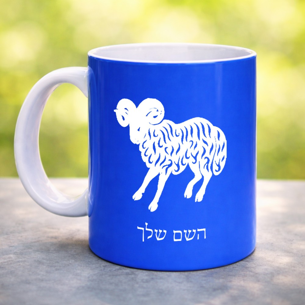 ספל תה \ קפה בעיצוב אישי עם השם שלך בעיצוב מזלות - טלה גדול הספל 325 מ"ל, הספל בעלת ידית לאחיזה יציבה. את השם המבוקש ניתן לציין בהזמנה, אם לא צויין אנחנו ניצור קשר לבירור.