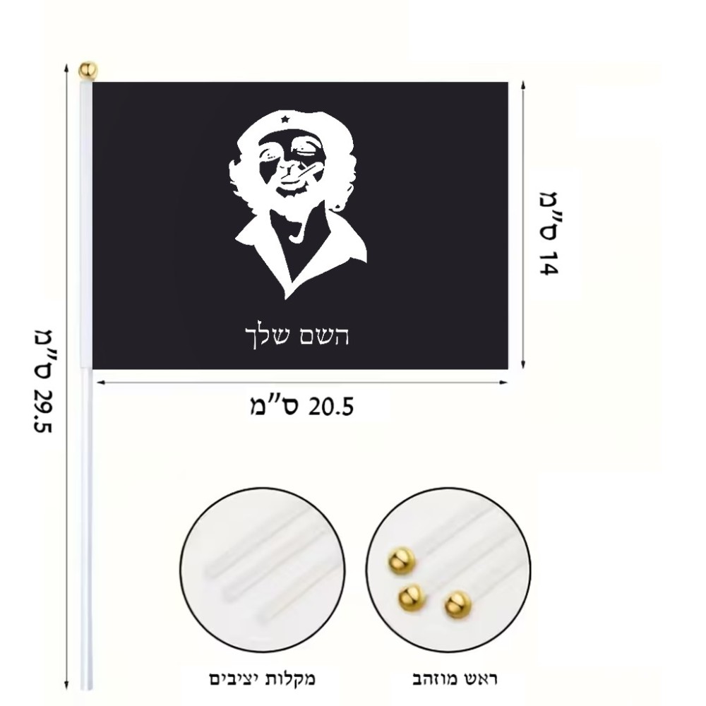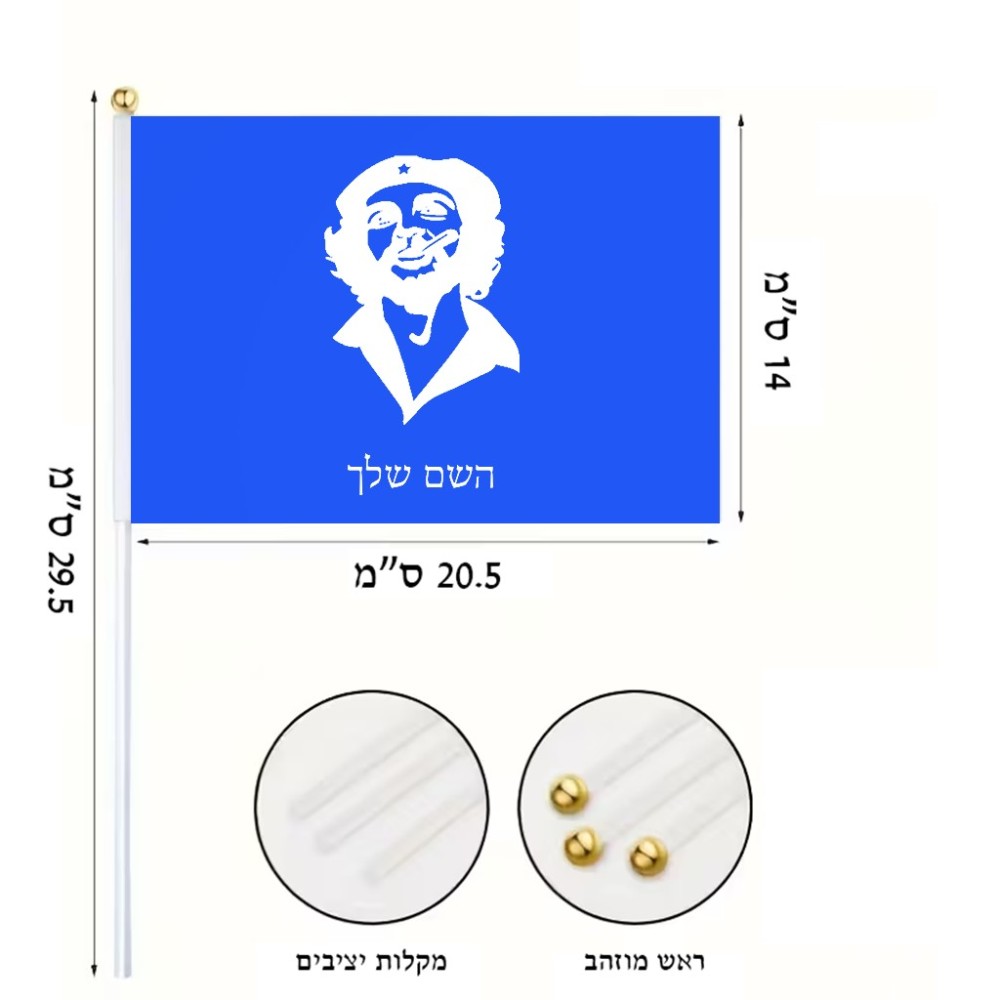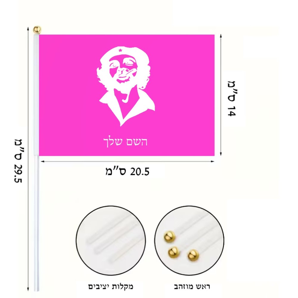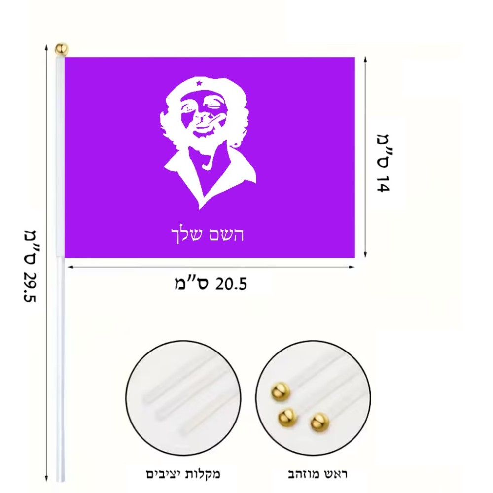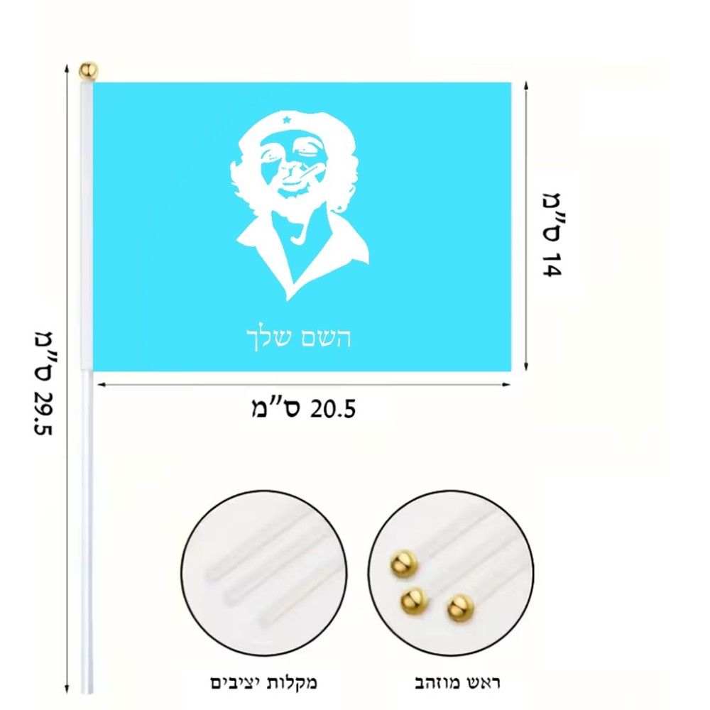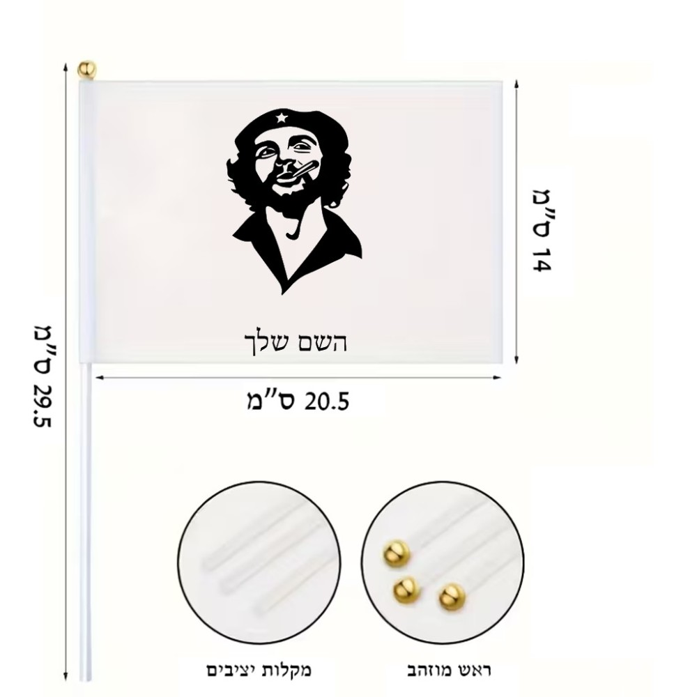 דיגלון בעיצוב אישי עם השם שלך בעיצוב צ'ה גווארה גודל הדיגלון 20.5 × 14 ס"מ, ההדפסה מתבצעת בשני צידי הדגל, את השם המבוקש ניתן לציין בהזמנה, אם לא צויין אנחנו ניצור קשר לבירור.
