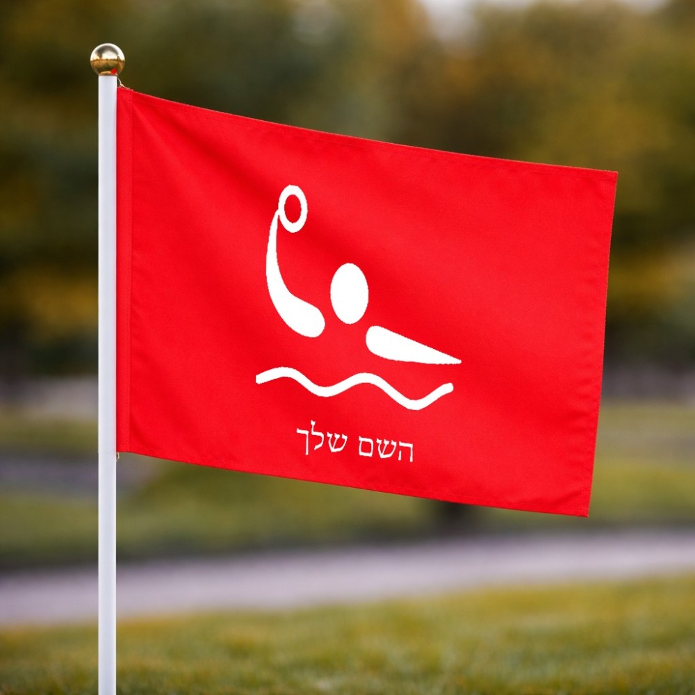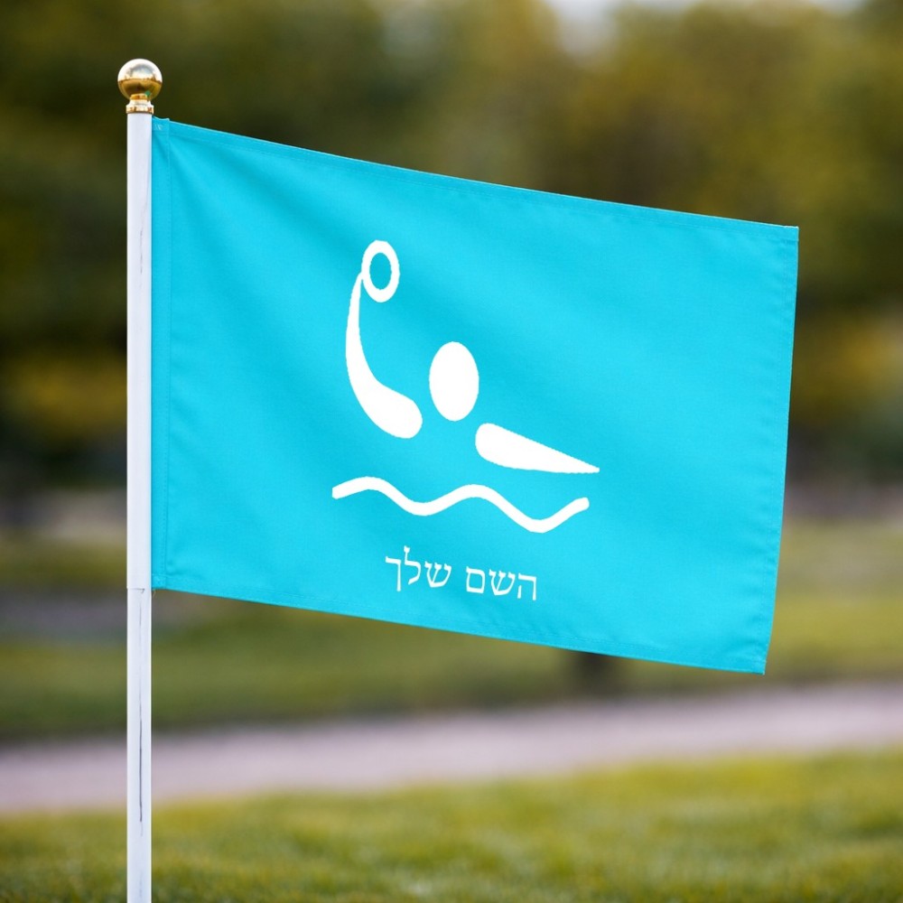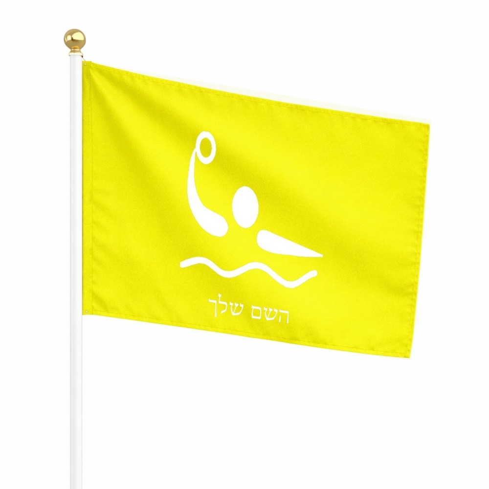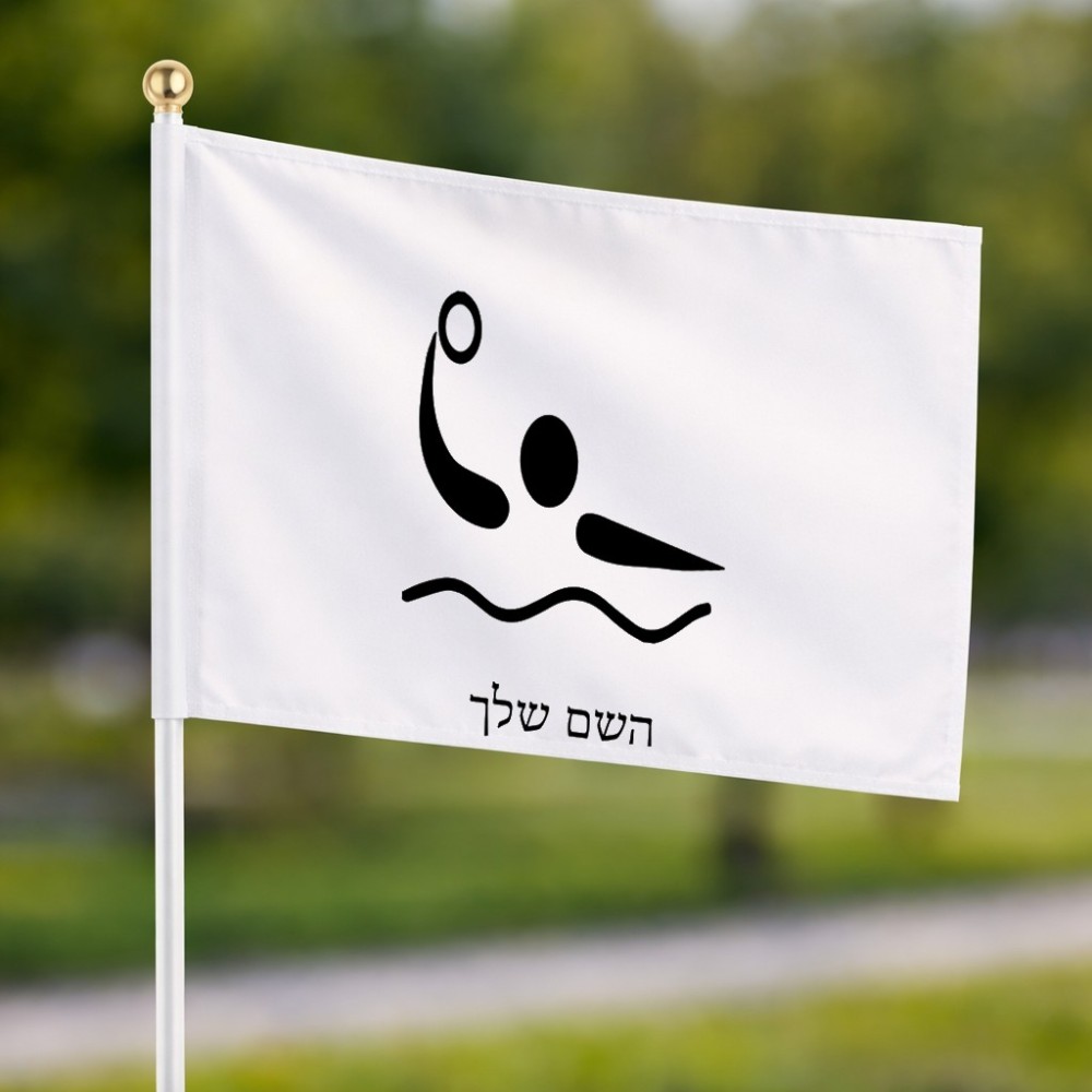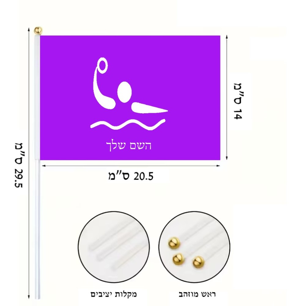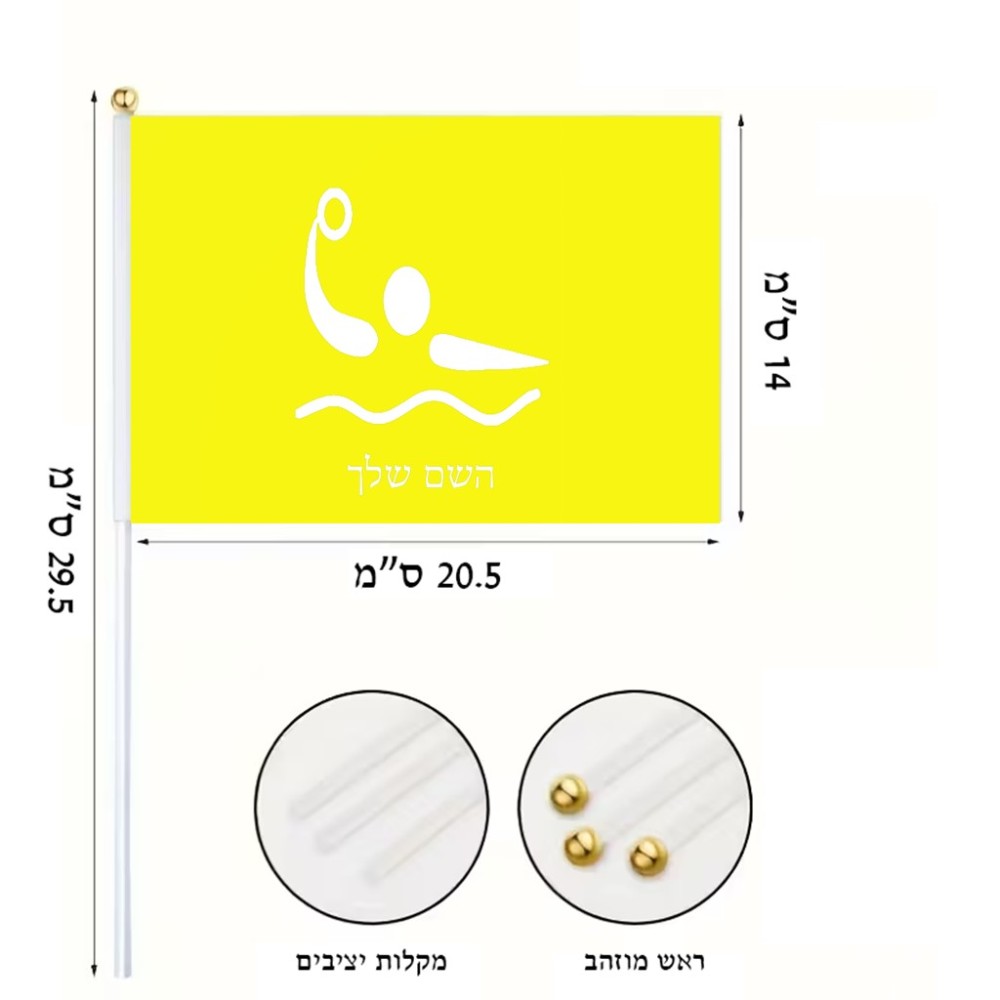 דיגלון בעיצוב אישי עם השם שלך בעיצוב כדור מים אולימפי גודל הדיגלון 20.5 × 14 ס"מ, ההדפסה מתבצעת בשני צידי הדגל, את השם המבוקש ניתן לציין בהזמנה, אם לא צויין אנחנו ניצור קשר לבירור.