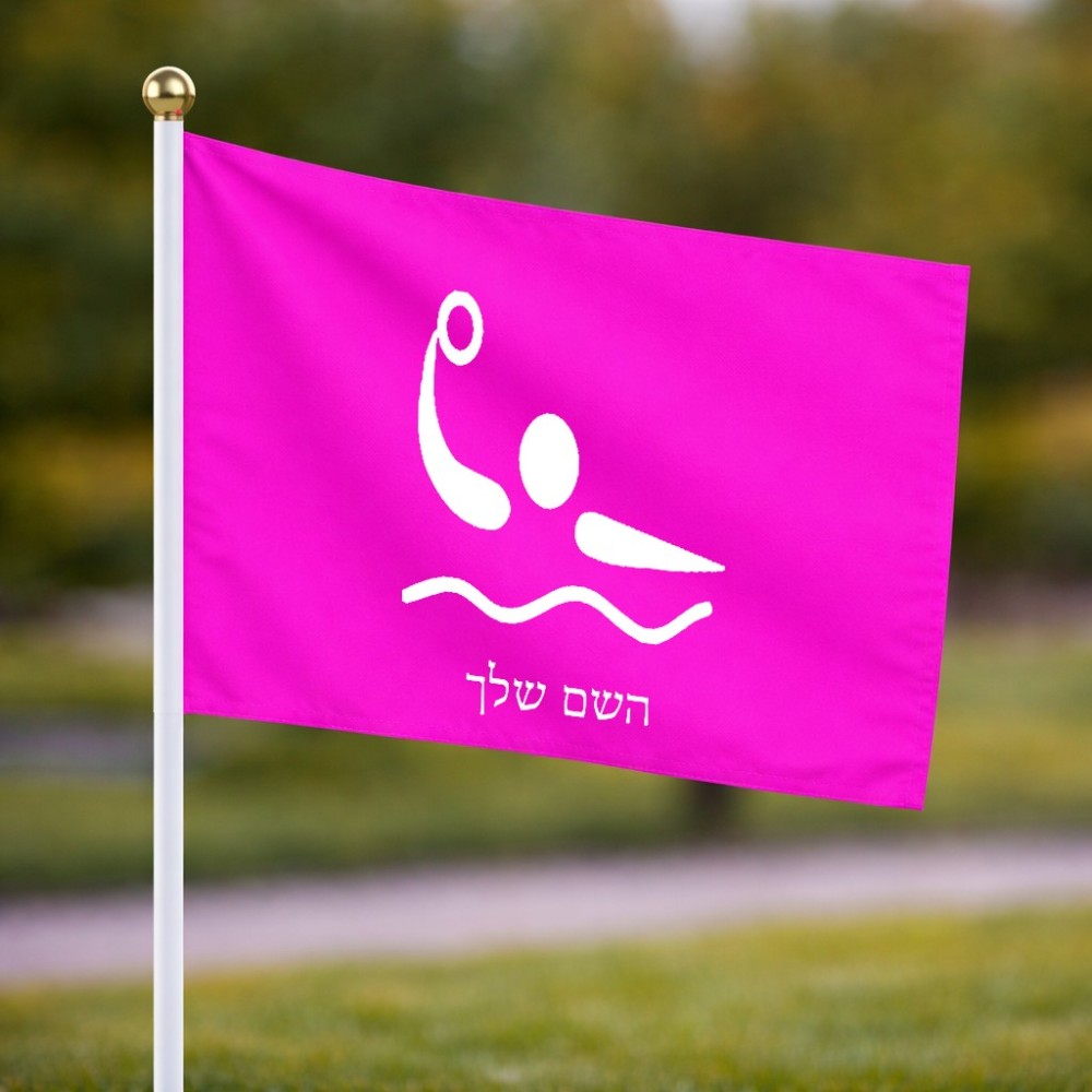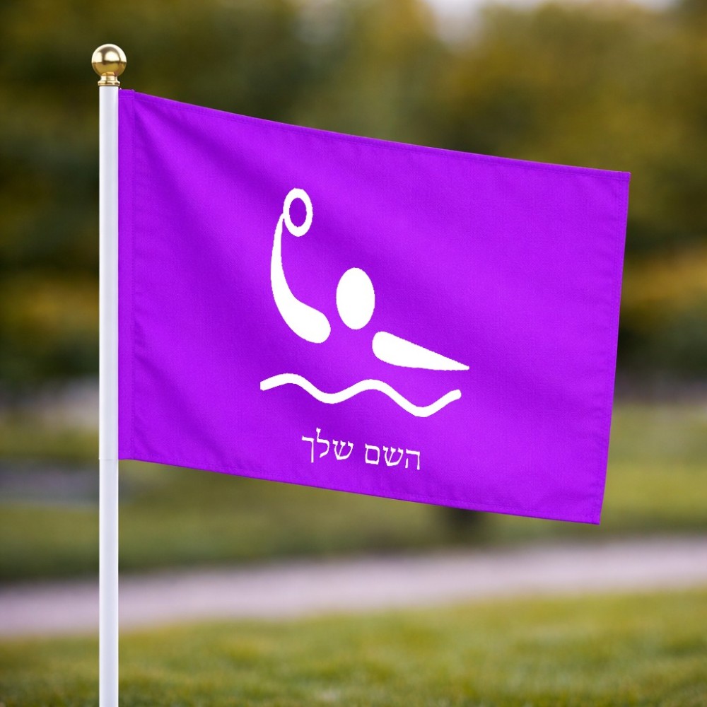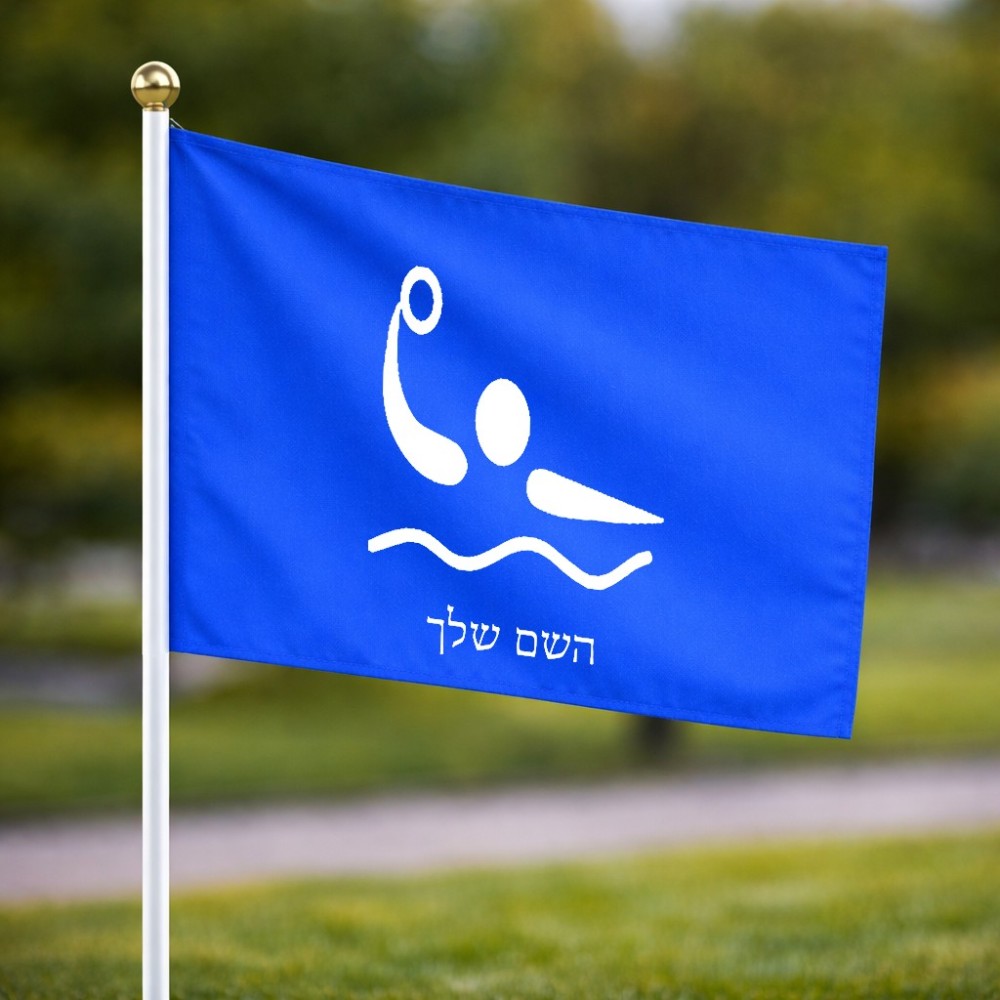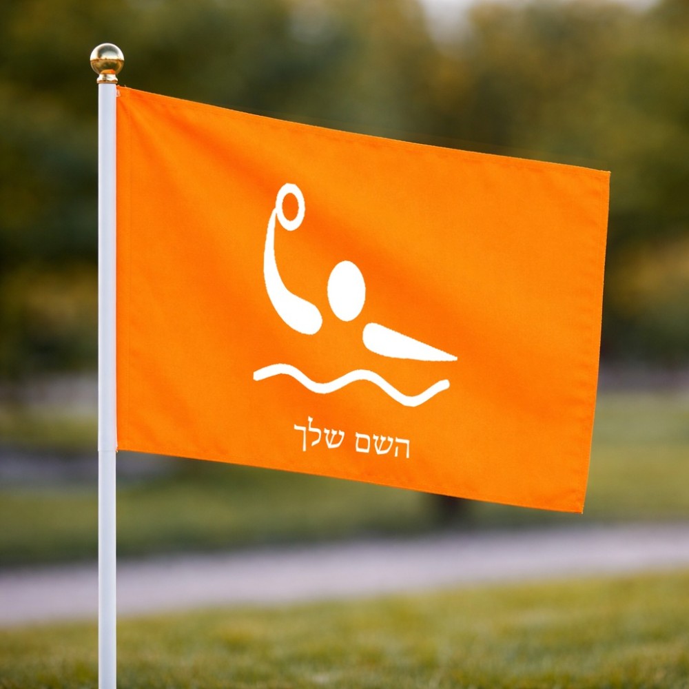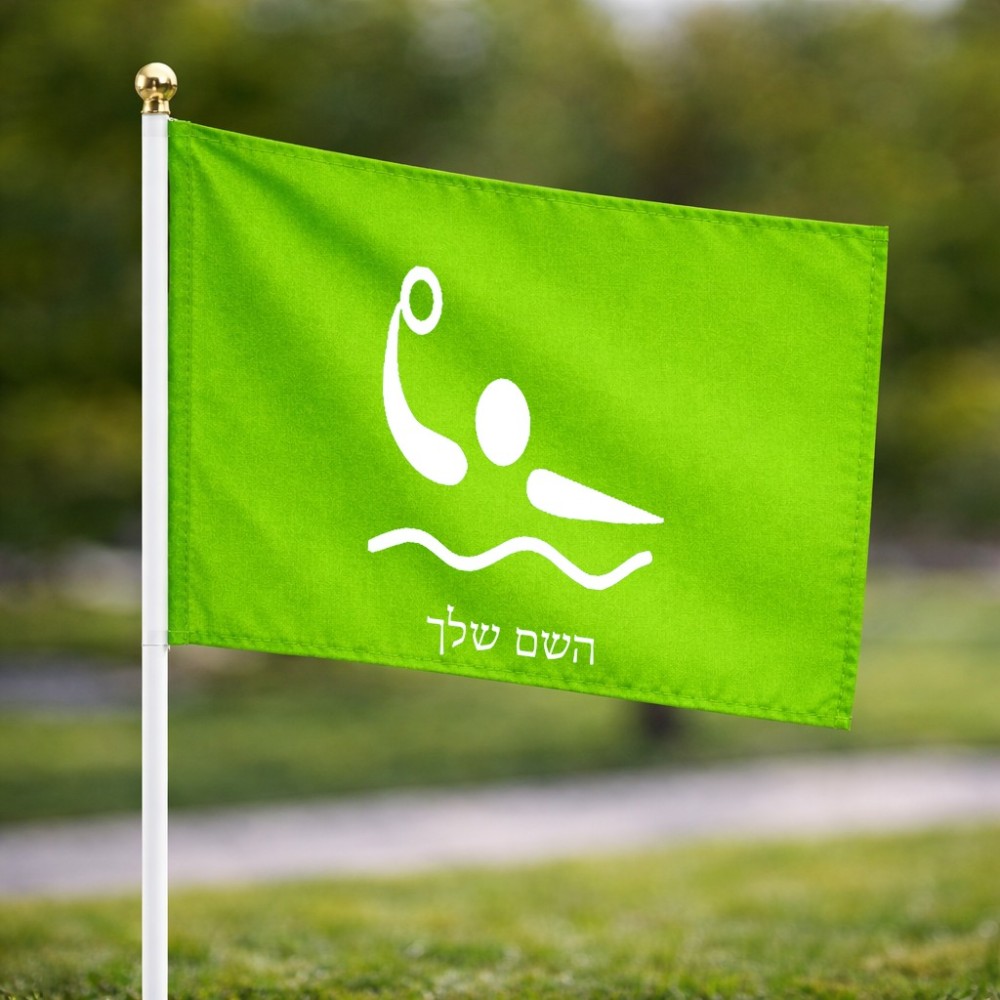 דיגלון בעיצוב אישי עם השם שלך בעיצוב כדור מים אולימפי גודל הדיגלון 20.5 × 14 ס"מ, ההדפסה מתבצעת בשני צידי הדגל, את השם המבוקש ניתן לציין בהזמנה, אם לא צויין אנחנו ניצור קשר לבירור.