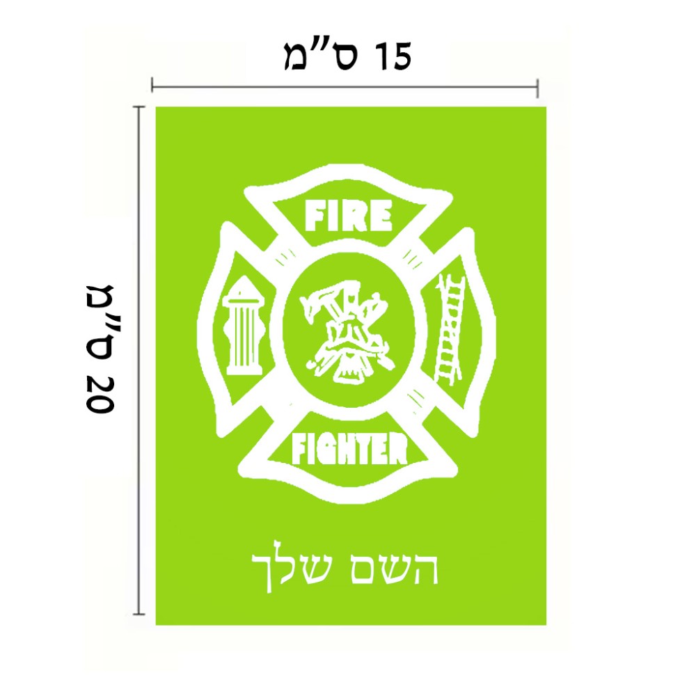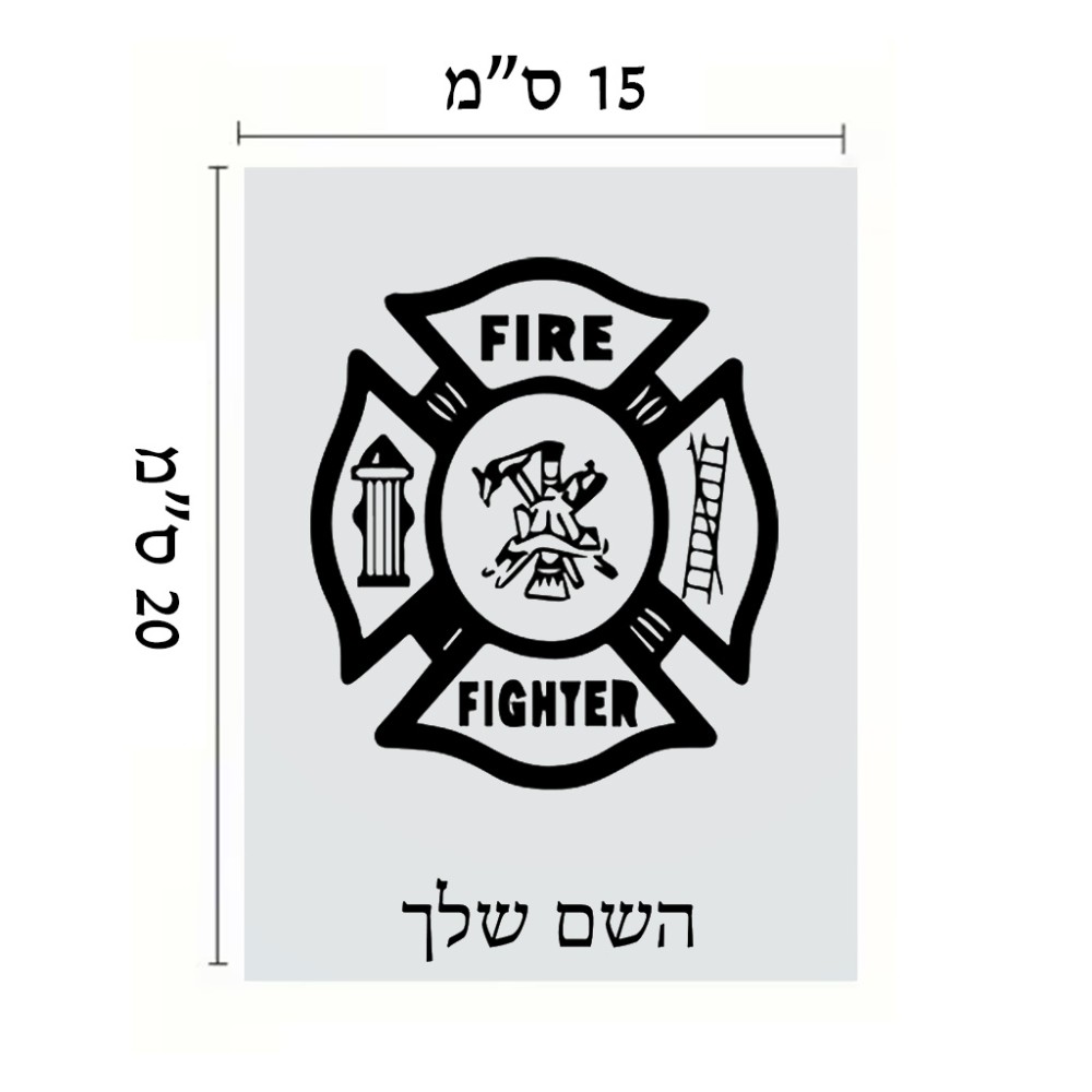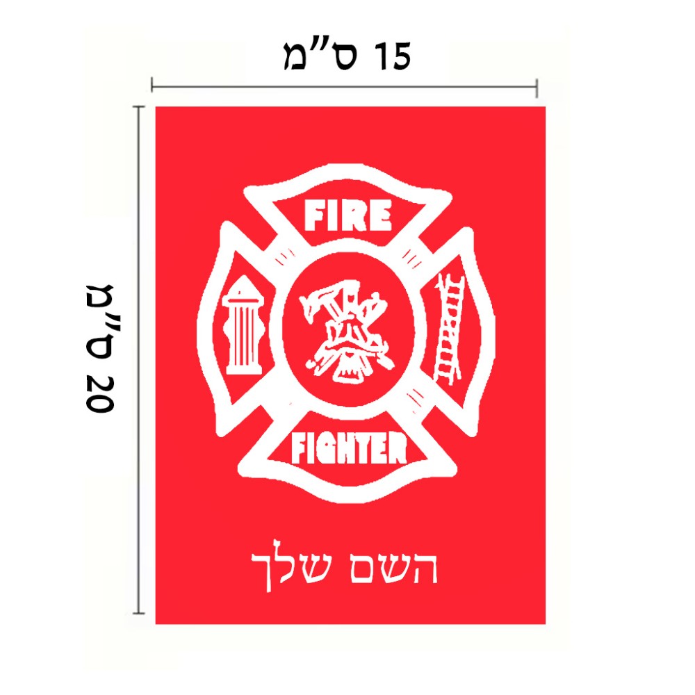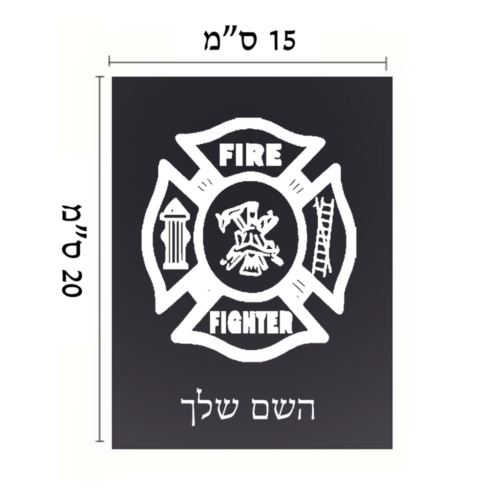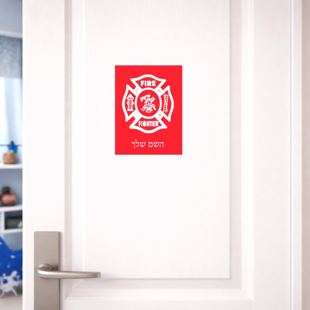 שלט אלומיניום קטן לחדר בעיצוב אישי עם השם שלך בעיצוב כבאי - תגית גודל השלט 15 × 20 ס"מ. את השם המבוקש ניתן לציין בהזמנה, אם לא צויין אנחנו ניצור קשר לבירור.