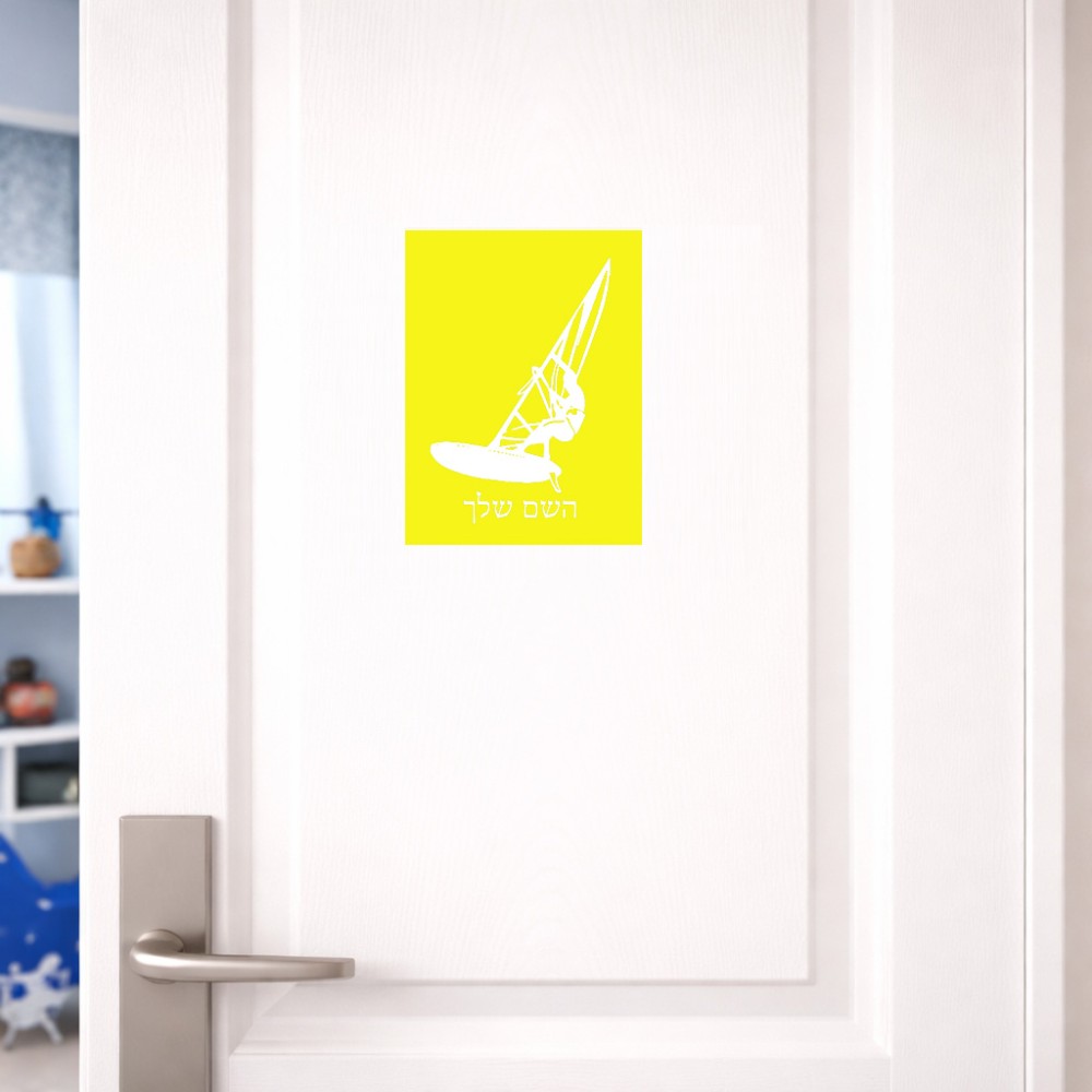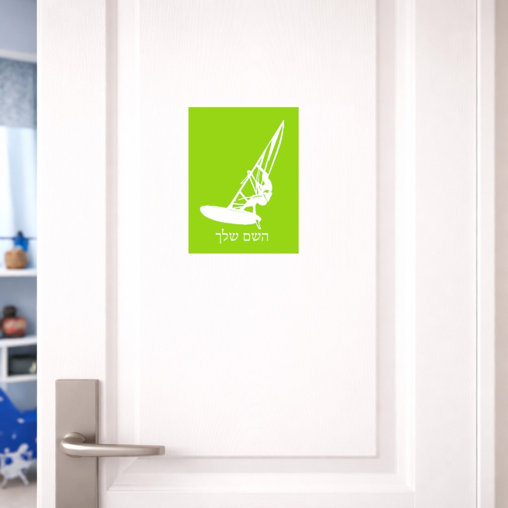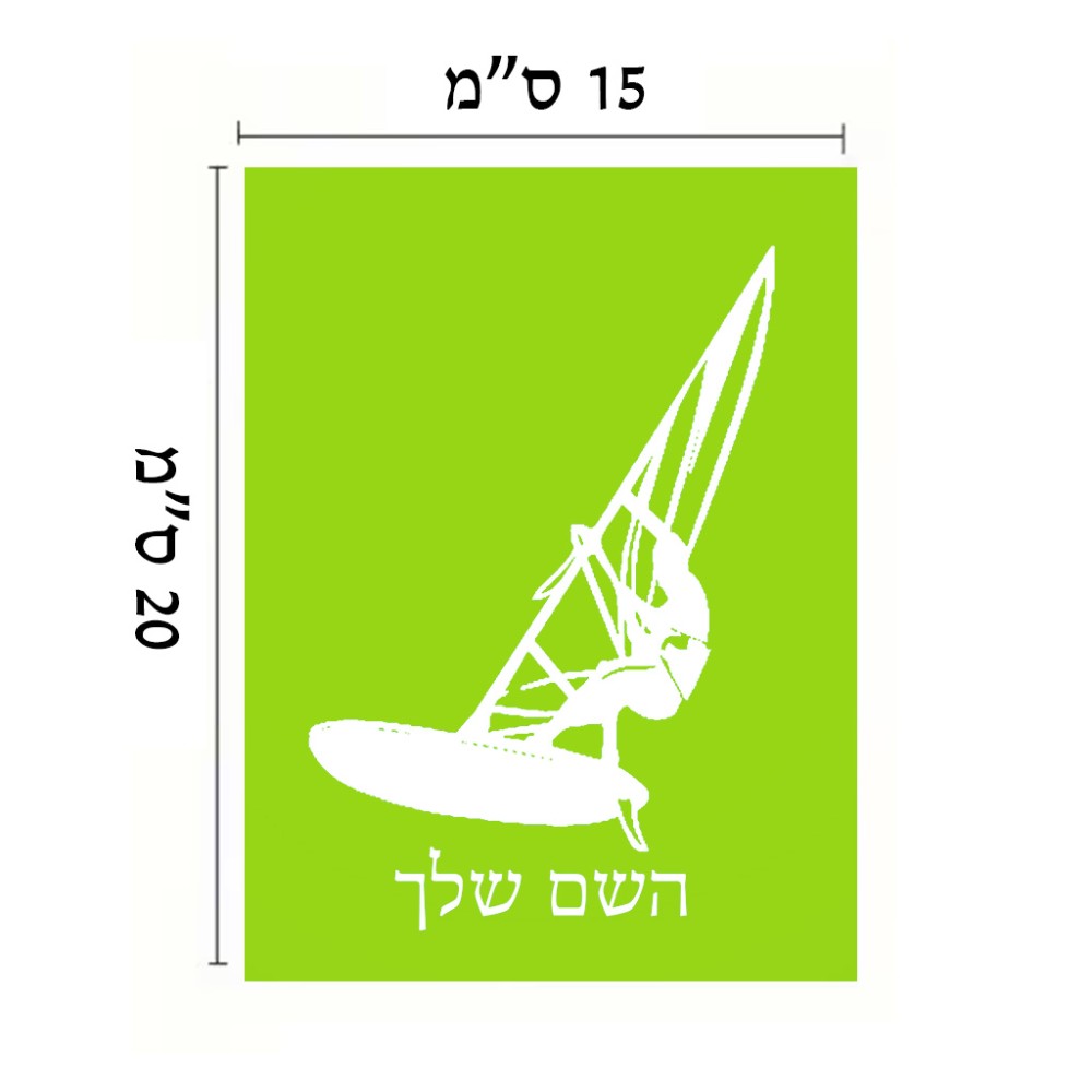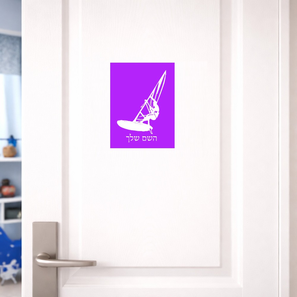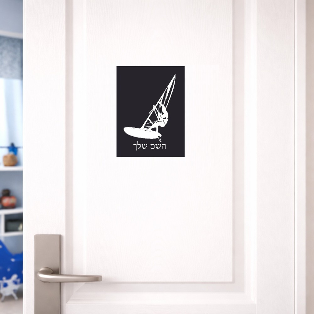 שלט אלומיניום קטן לחדר בעיצוב אישי עם השם שלך בעיצוב לגלוש - גלישה - שייט גודל השלט 15 × 20 ס"מ. את השם המבוקש ניתן לציין בהזמנה, אם לא צויין אנחנו ניצור קשר לבירור.