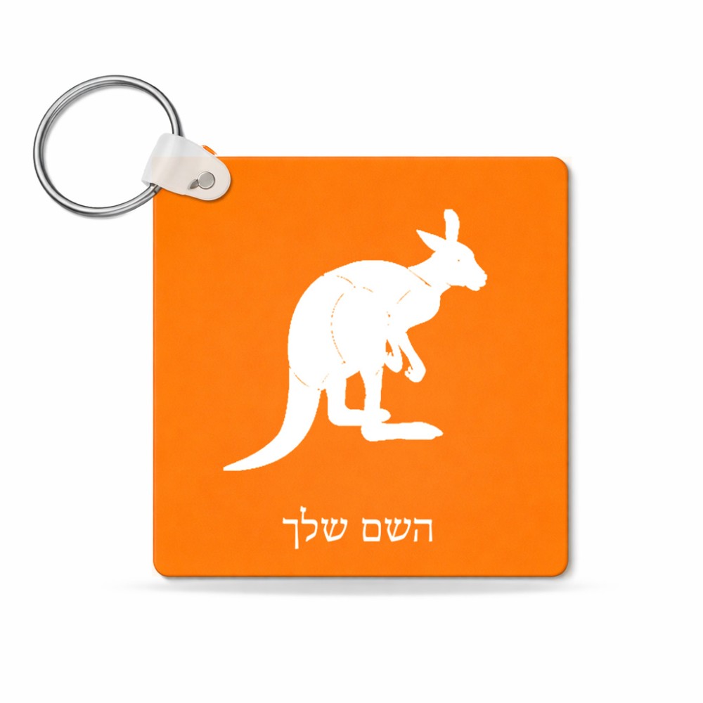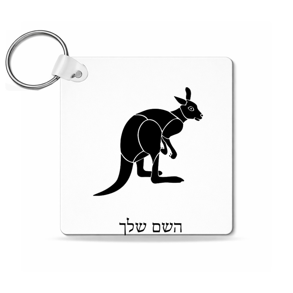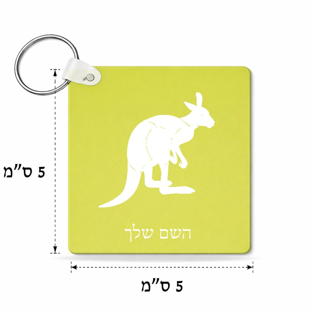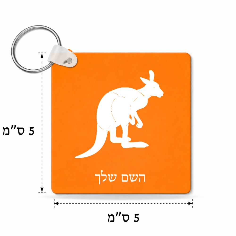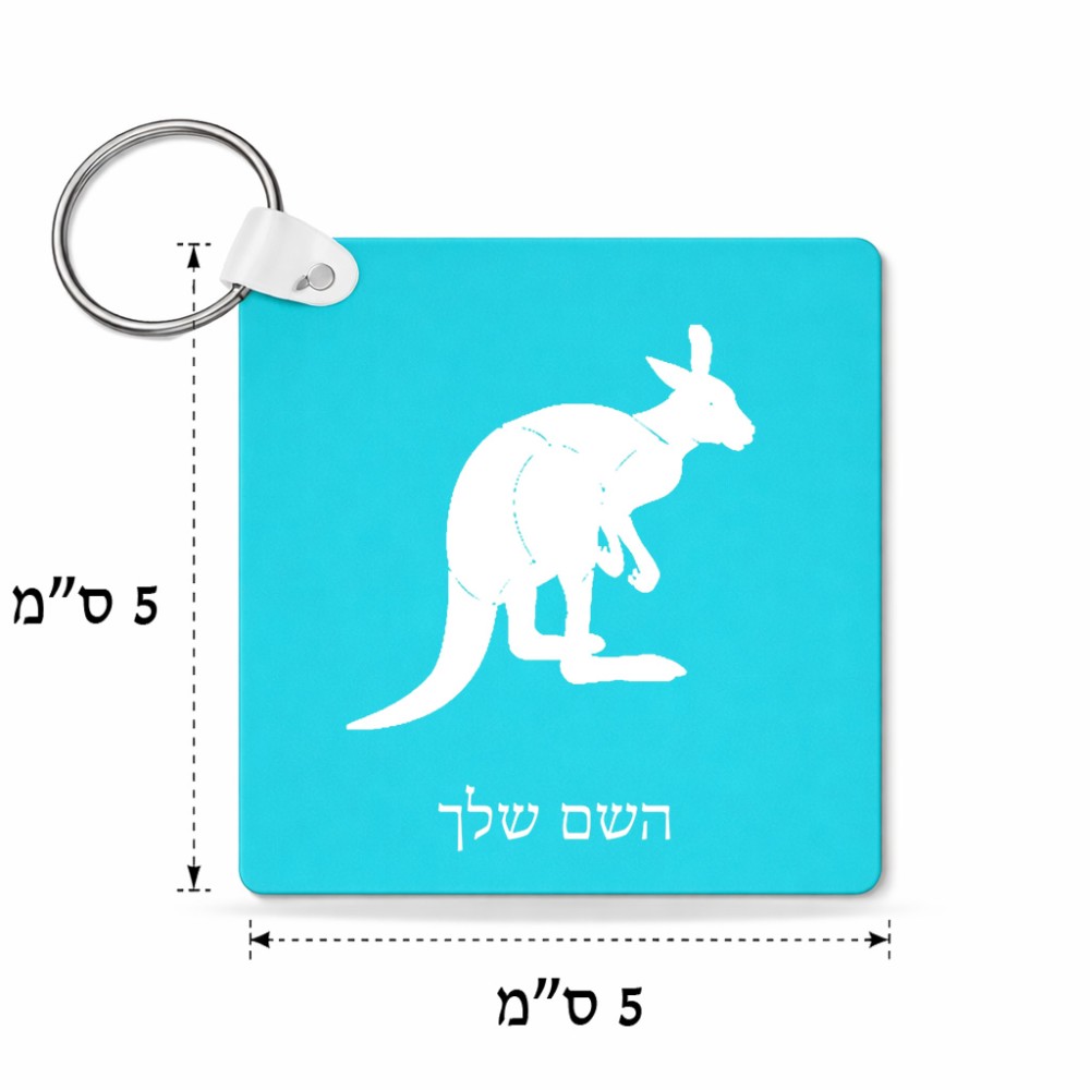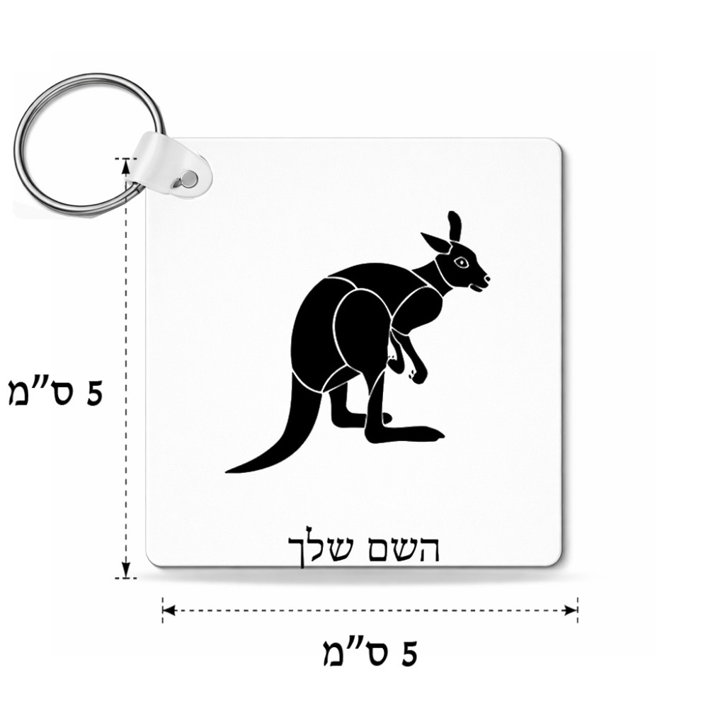 מחזיק מפתחות בצורת ריבוע בעיצוב אישי עם השם שלך בעיצוב קנגורו גודל המחזיק 5 × 5 ס"מ. את השם המבוקש ניתן לציין בהזמנה, אם לא צויין אנחנו ניצור קשר לבירור.