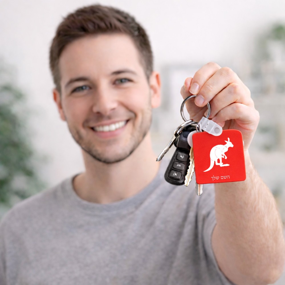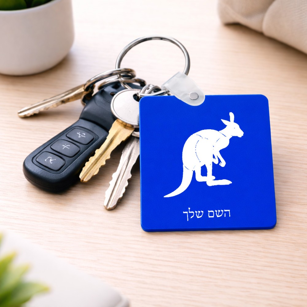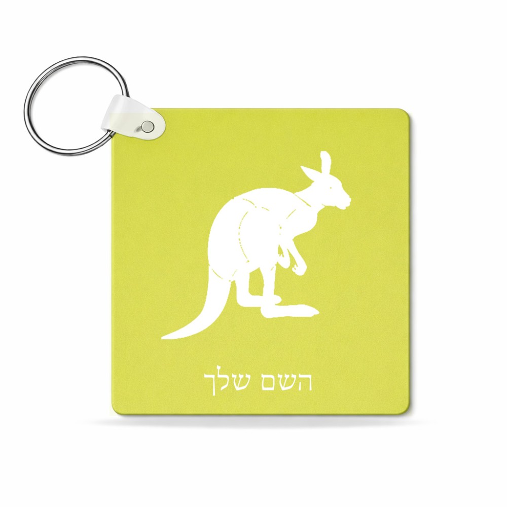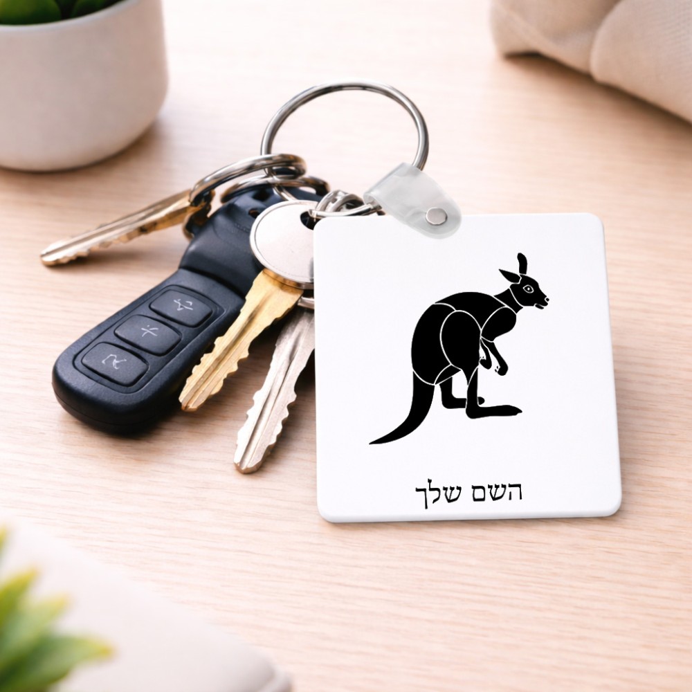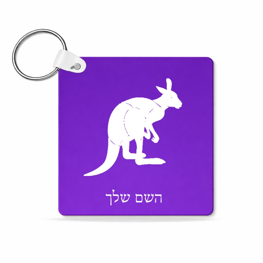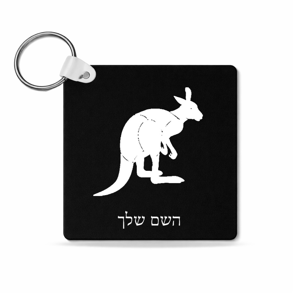 מחזיק מפתחות בצורת ריבוע בעיצוב אישי עם השם שלך בעיצוב קנגורו גודל המחזיק 5 × 5 ס"מ. את השם המבוקש ניתן לציין בהזמנה, אם לא צויין אנחנו ניצור קשר לבירור.